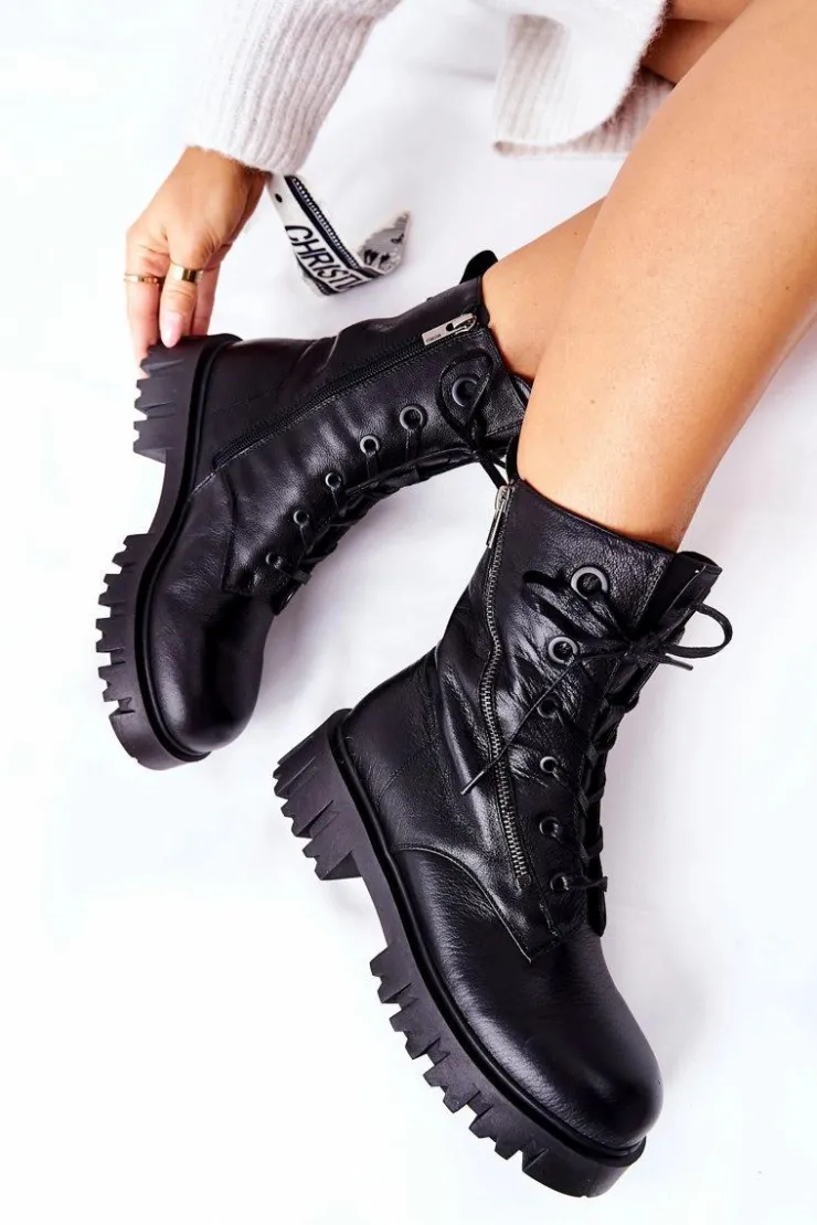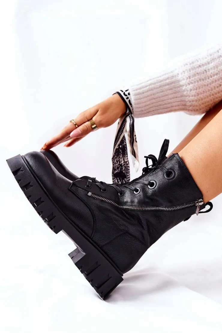 Polska marka BIG STAR to niebanalny styl oraz wysoka jakość wykonania. Botki wykonane są ze skóry, ocieplone kocem obuwniczym. Podeszwa wykonana jest z wysokojakościowego, gumowego tworzywa. Posiadają wiązanie oraz suwak. Przyozdobione z zewnętrznej strony dodatkowym suwakiem.