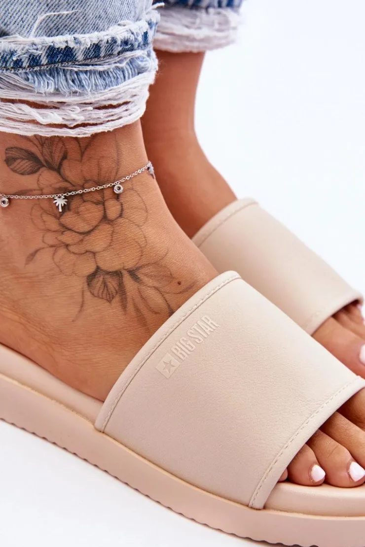 Big Star Shoes Klapki Damskie Big Star|Klapki Na Platformie*Damskie Klapki Na Platformie Big Star LL274933 Beżowe
