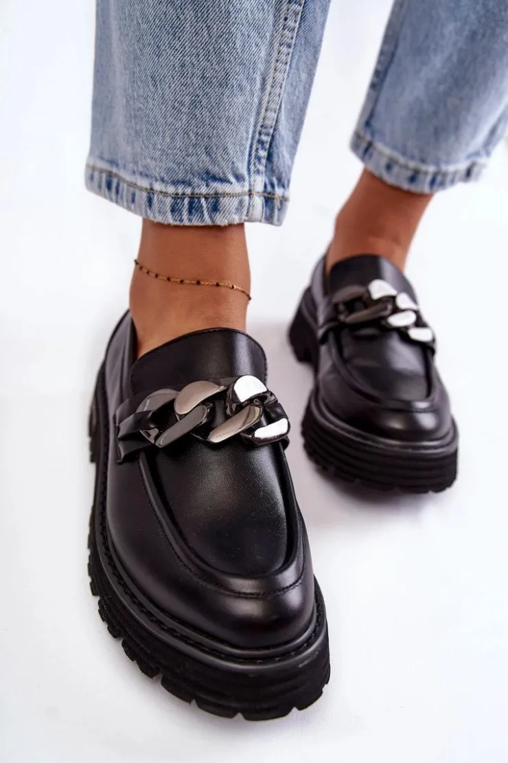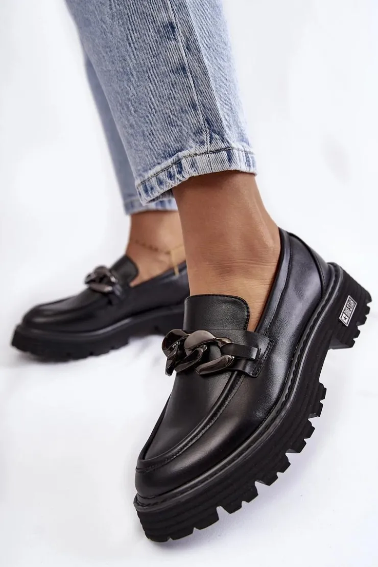 Modne półbuty damskie zostały wykonane z wysokiej jakości skóry ekologicznej. Na przodzie posiadają charakterystyczną ozdobę w postaci łańcucha. Buty te osadzono na platformie oraz płaskim obcasie. Podeszwa ze żłobieniami świetnie odizoluje od nierównego podłoża. Półbuty posiadają usztywniany zapiętek. Model idealny do wielu stylizacji! Wygodne, a zarazem modne. Koniecznie musisz je mieć! Przy wyborze rozmiaru prosimy sugerować się tabelą rozmiarów.