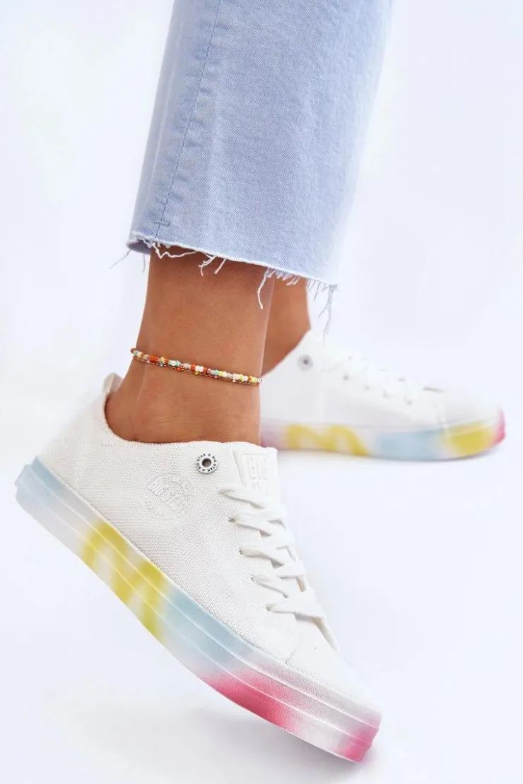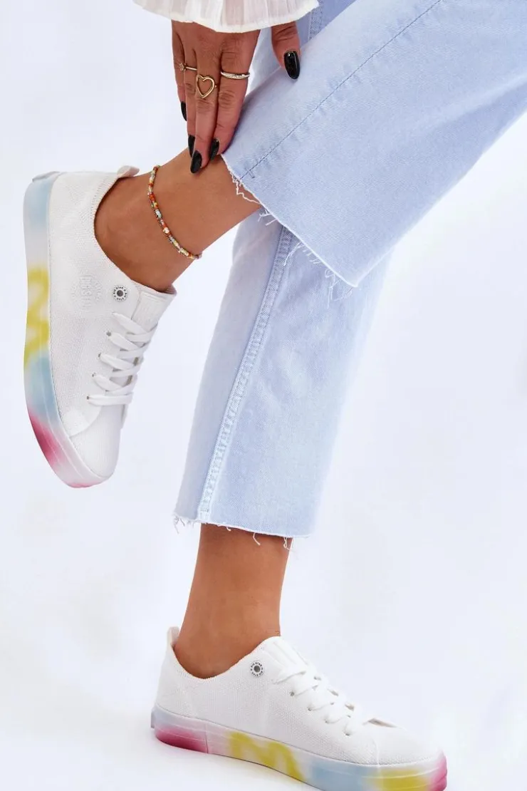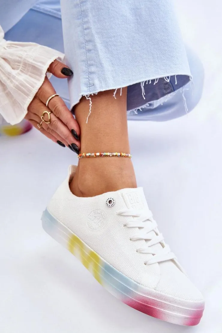 Wyjątkowe, damskie trampki marki Big Star! Z tymi butami na pewno wyróżnisz się z tłumu! Zostały wykonane z materiału tekstylnego. Trampki zostały osadzone na kolorowej platformie oraz antypoślizgowej podeszwie wykonanej z gumowego tworzywa. Zapiętek jest delikatnie wzmocniony dodatkowym materiałem. Miękka wkładka zapewni wygodę podczas użytkowania! Przy wyborze rozmiaru prosimy sugerować się tabelą rozmiarów.
