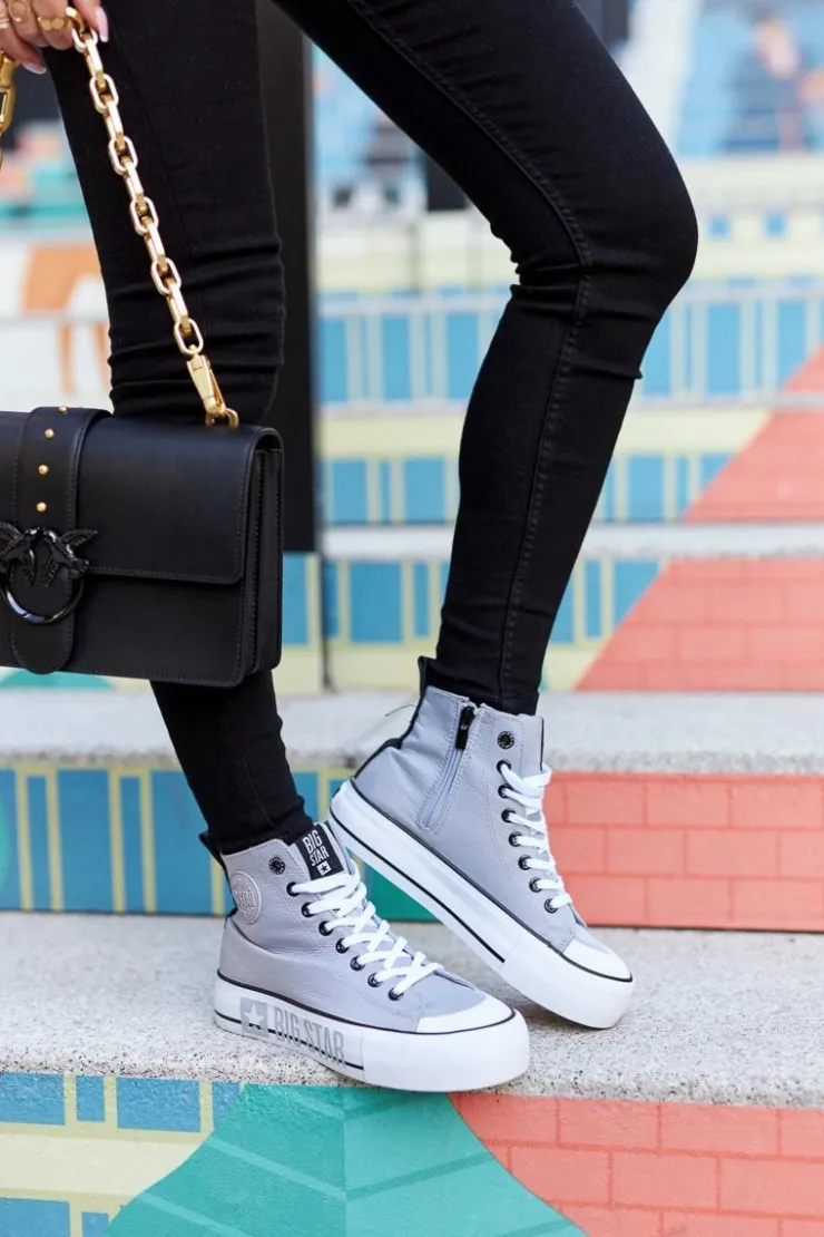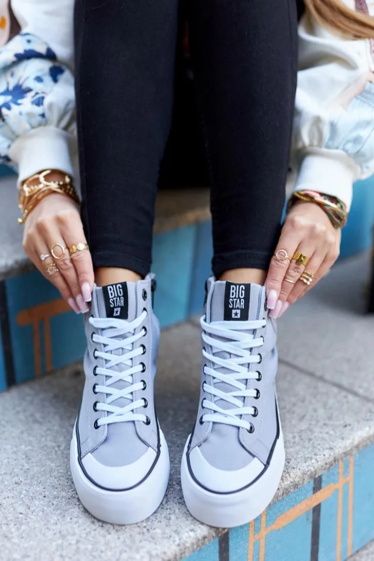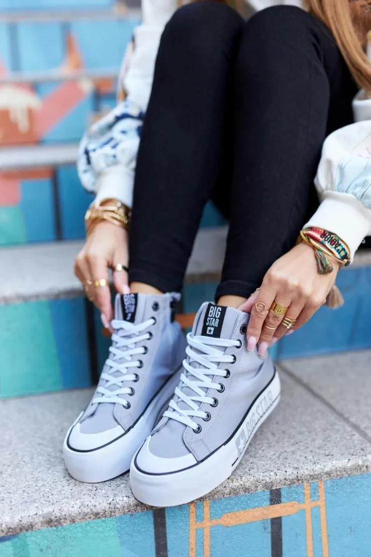 Big Star Shoes Trampki Damskie Big Star|Trampki Damskie Wysokie*Wysokie Trampki Na Platformie Big Star II274016 Szare