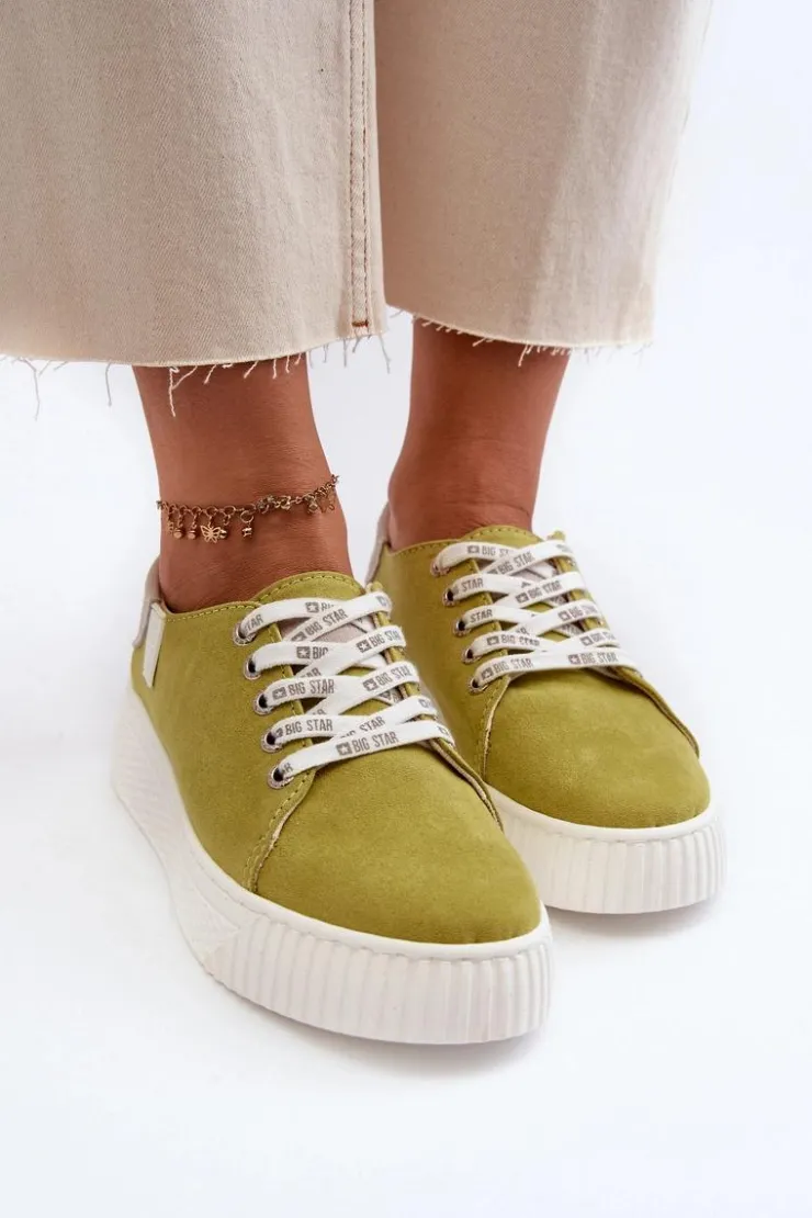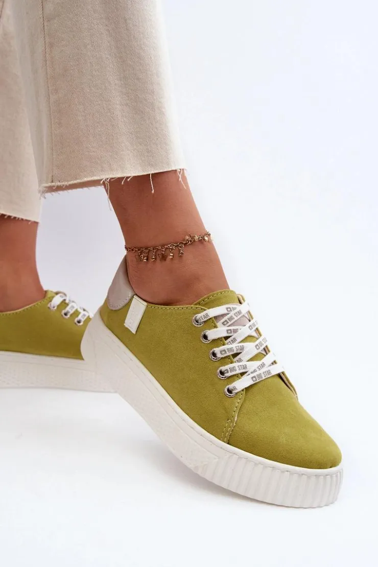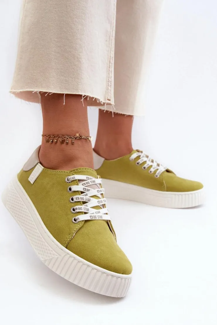 Damskie trampki od marki Big Star wykonane z eko skóry. Osadzone na grubej platformie z gumowego tworzywa. Noski zaokrąglone. Model ten posiada wyjątkową wkładkę MEMORY FOAM SYSTEM, która zapamiętuje kształt stopy, zapewnia doskonałe dopasowanie, absorbuje wstrząsy oraz jest odporna na odkształcenia. Dodatkowo struktura pianki pozwala na odparowywanie wilgoci i regulację temperatury. Ten niezwykle stylowy fason koniecznie musi się znaleźć w Twojej wiosenno-letniej garderobie! Przy wyborze rozmiaru prosimy sugerować się tabelą rozmiarów.