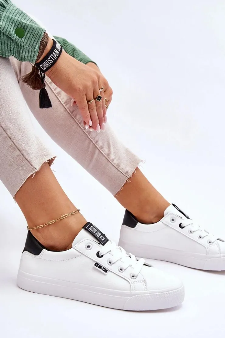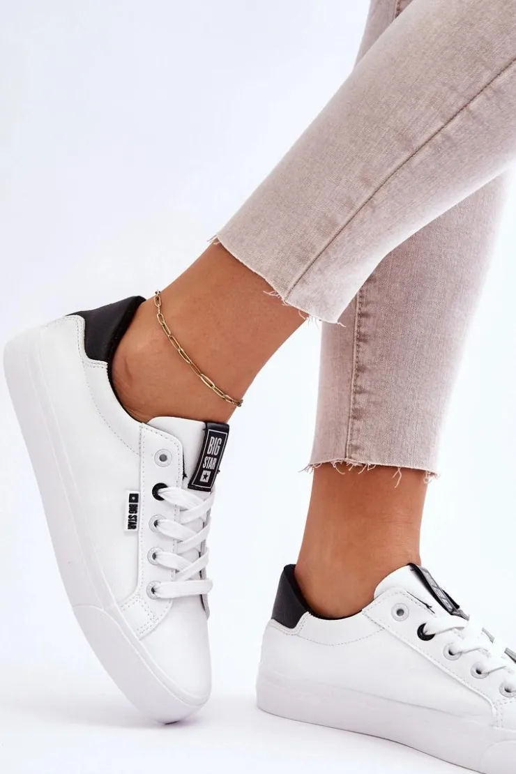 Tenisówki damskie od polskiej marki BIG STAR. Buty wykonane są z wysokiej jakości skóry ekologiczne, dobrze dopasowują się do kształtu stopy. Przy wyborze rozmiaru prosimy sugerować się tabelą rozmiarów.