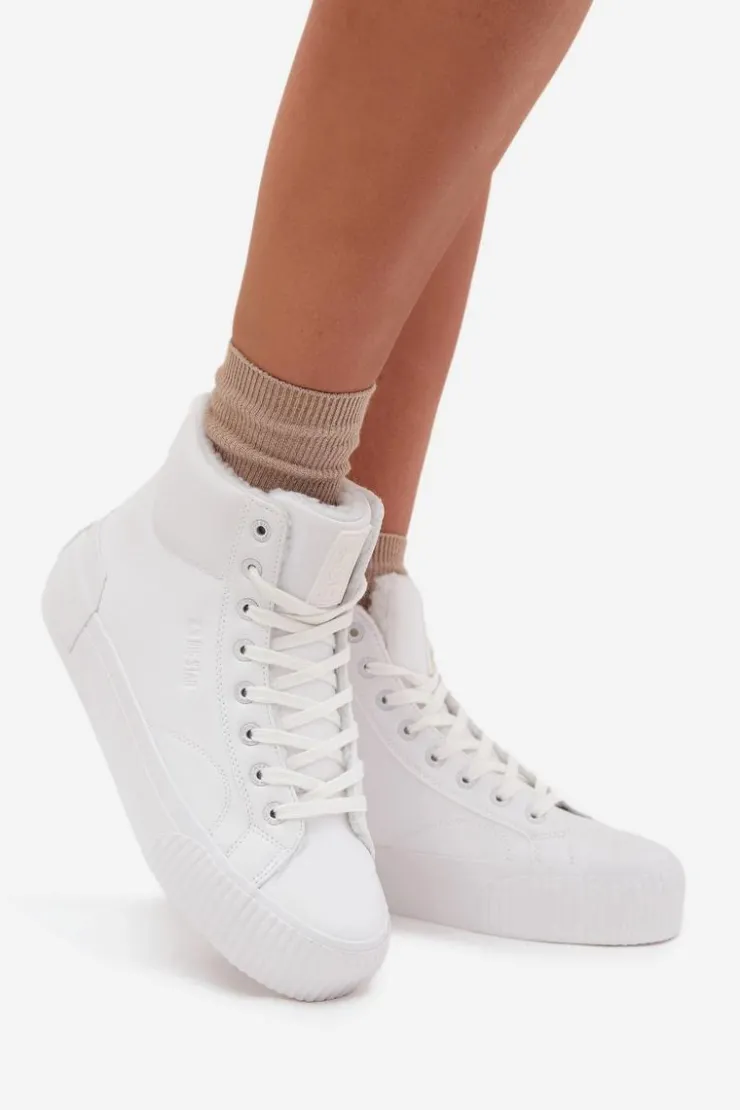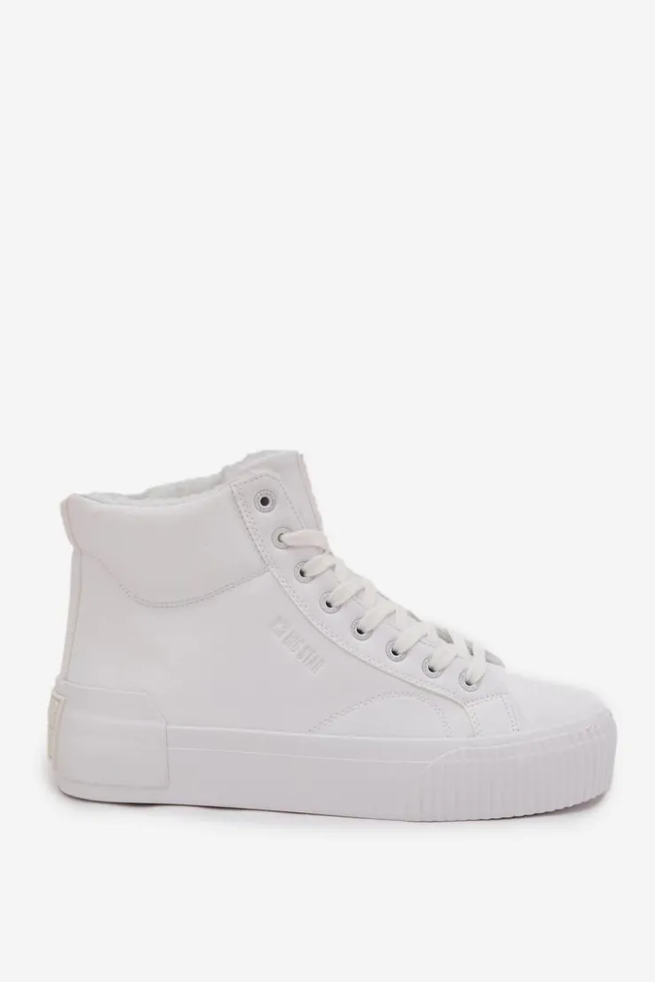 Trampki damskie od marki Big Star. Wykonane z eko skóry, osadzone na platformie z gumowego tworzywa, zapewniają wygodę i stabilność na każdym kroku. Model sznurowany pozwala na idealne dopasowanie do stopy, a ocieplenie kożuszkiem wewnątrz butów gwarantuje ciepło w chłodniejsze dni. Doskonałe na co dzień, te trampki łączą styl z funkcjonalnością, stanowiąc świetny wybór do jesiennych i zimowych stylizacji. Przy wyborze rozmiaru prosimy sugerować się tabelą rozmiarów.