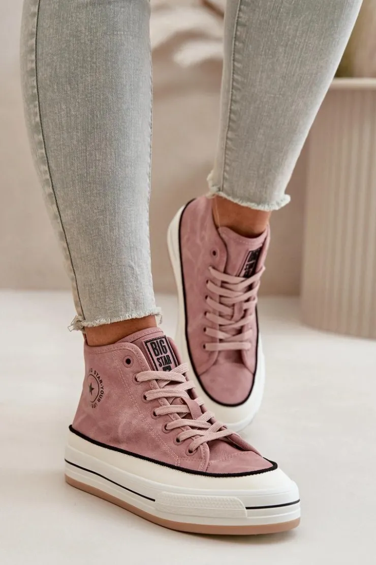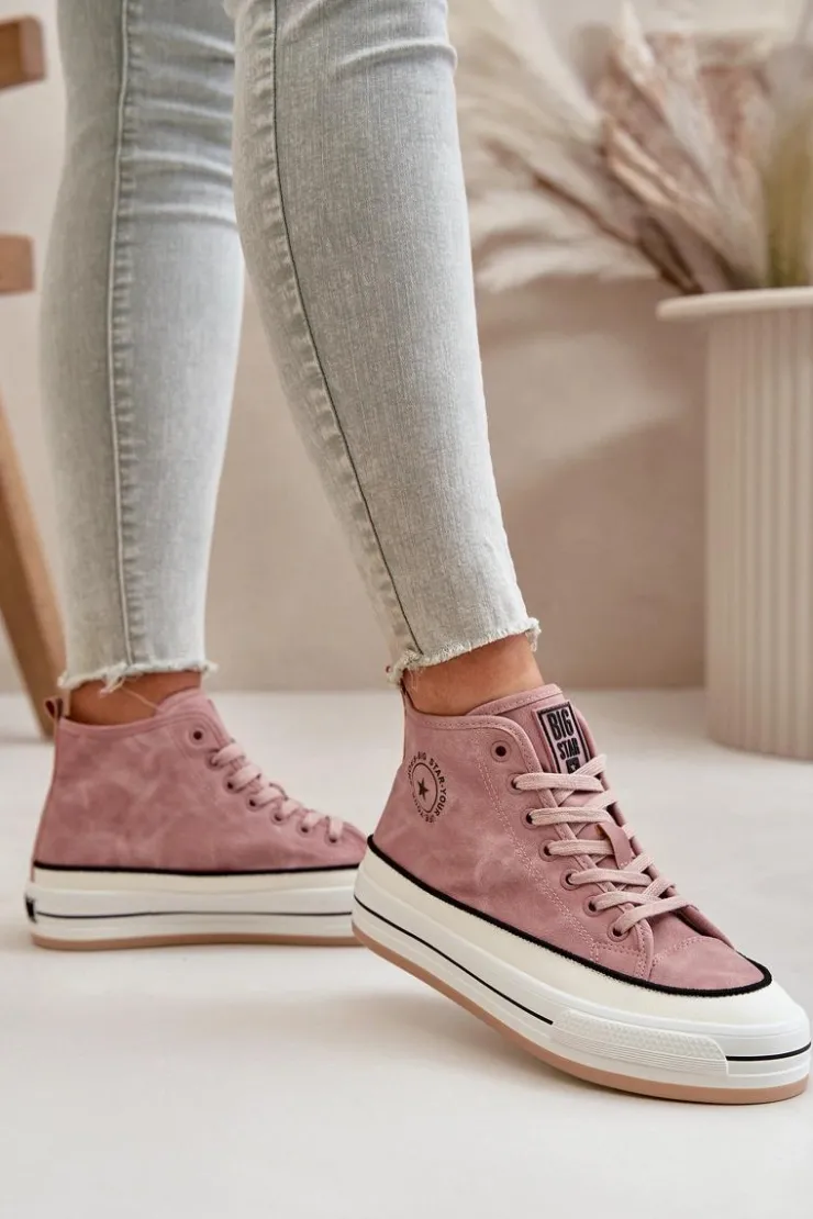 Damskie trampki od marki Big Star. Wykonane z wysokiej jakości materiałów, gwarantują wygodę i komfort noszenia przez cały dzień. Ich kolor sprawia, że łatwo dopasują się do różnych stylizacji i będą odpowiednie zarówno na co dzień, jak i na bardziej formalne okazje. Trampki posiadają wygodną wkładkę, która zapewnia dodatkowy komfort podczas chodzenia. Solidna podeszwa z gumy gwarantuje dobrą przyczepność na różnego rodzaju powierzchniach. Model ocieplany miłym w dotyku kocem obuwniczym. Doskonałe na sezon jesienno-zimowy! Przy wyborze rozmiaru prosimy sugerować się tabelą rozmiarów.