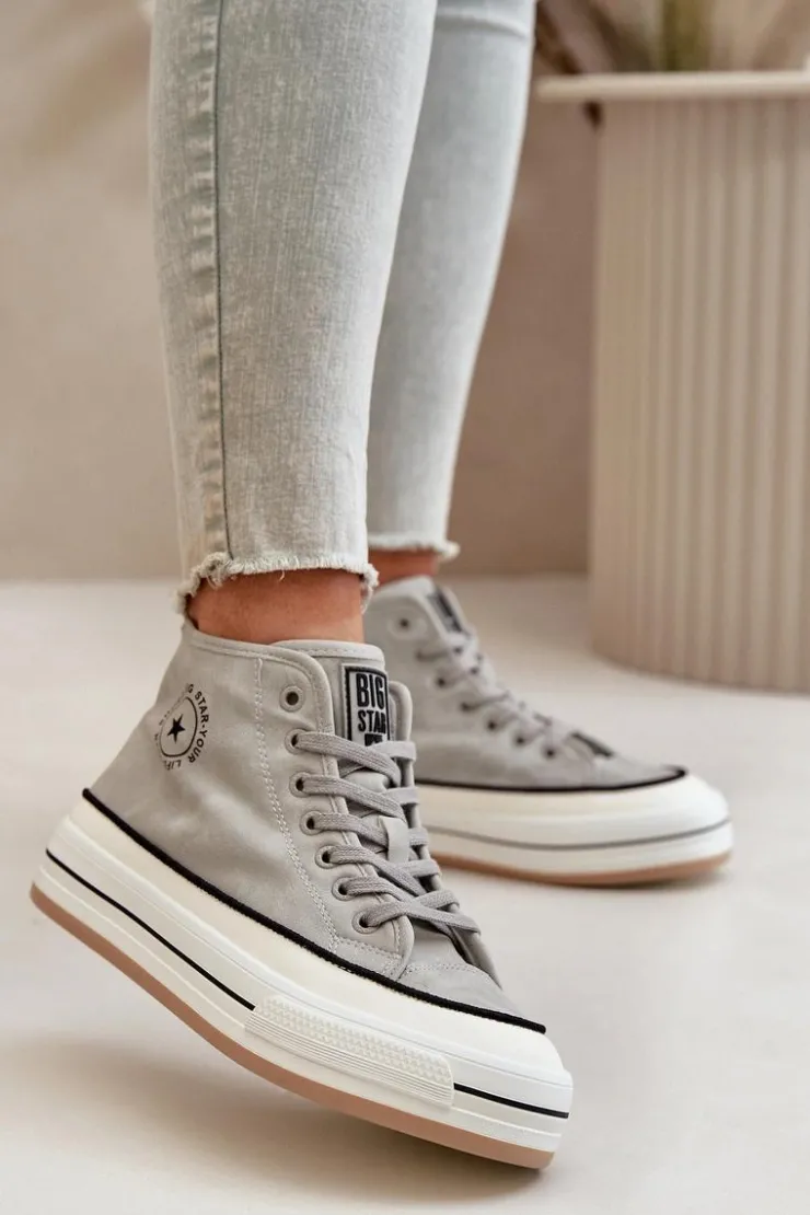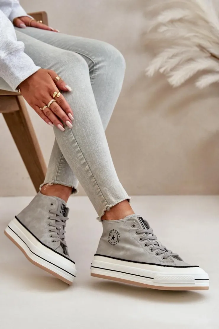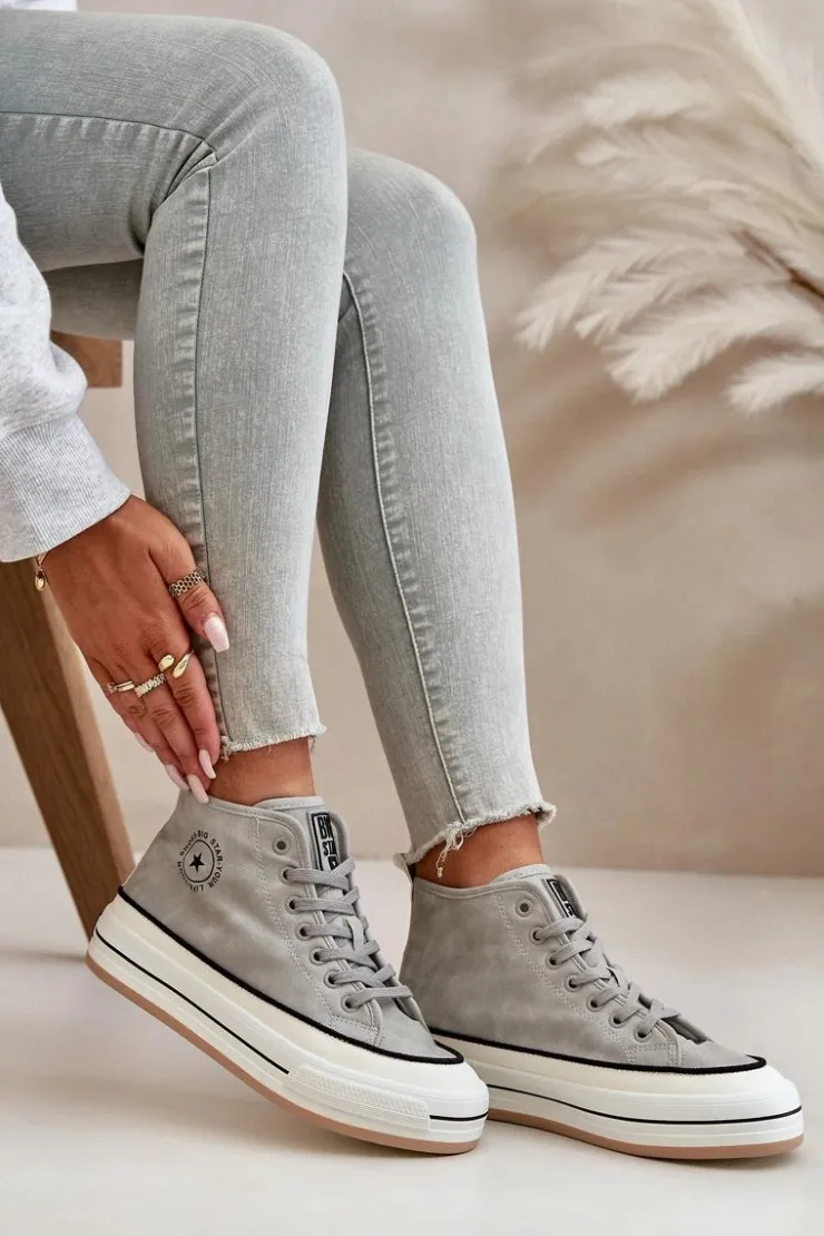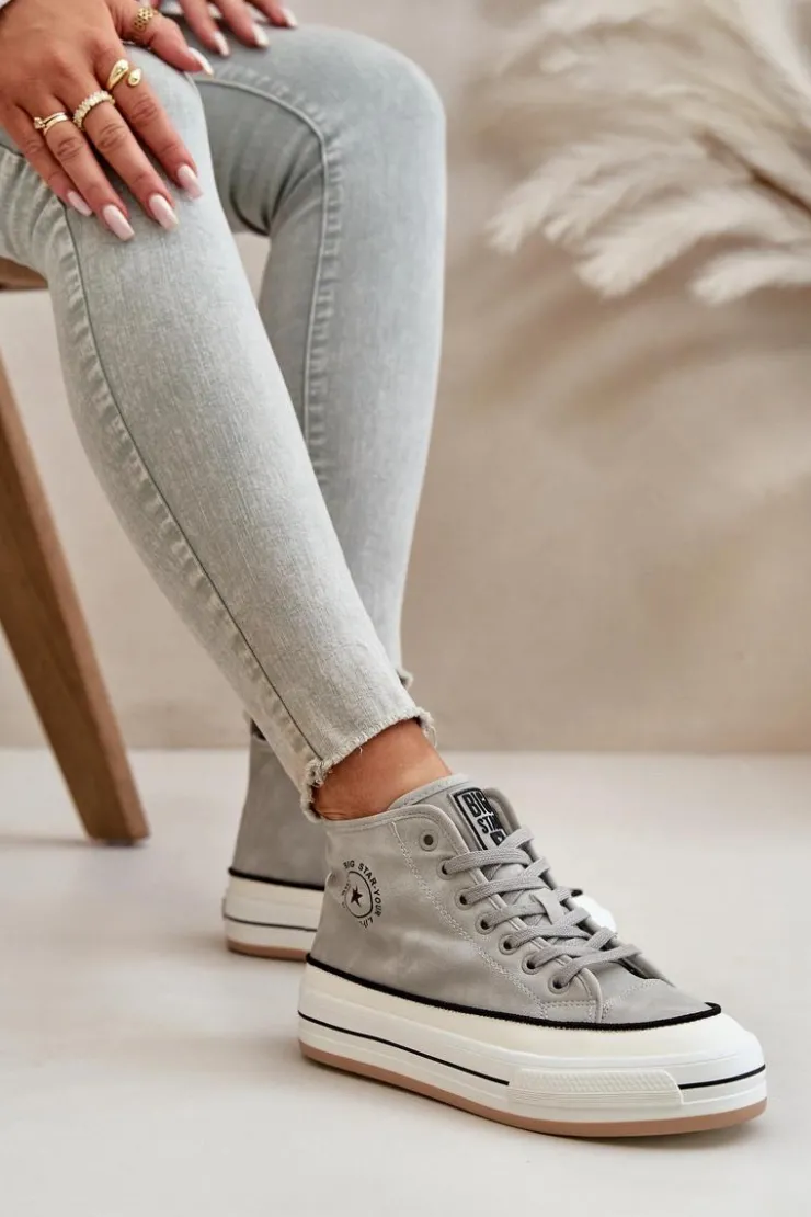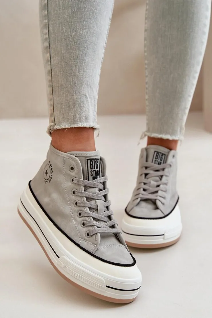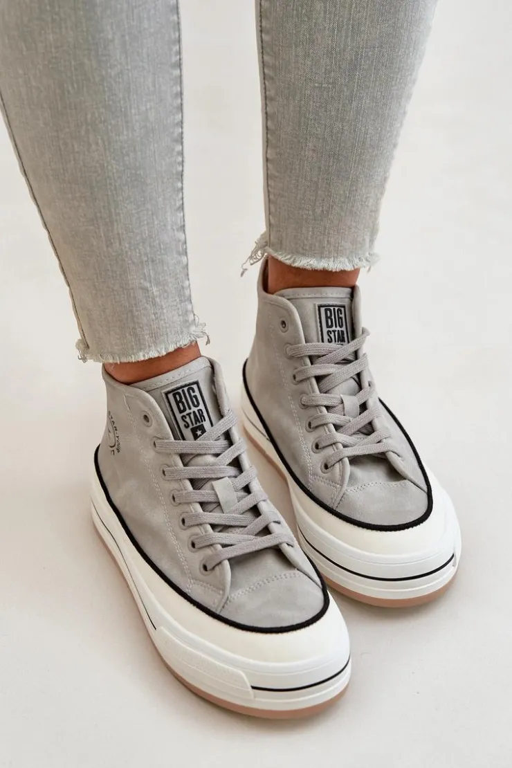 Big Star Shoes Trampki Ocieplane|Trampki Damskie Big Star*Ocieplane Trampki Damskie Na Platformie Eko Skórzane Big Star OO274070 Szare
