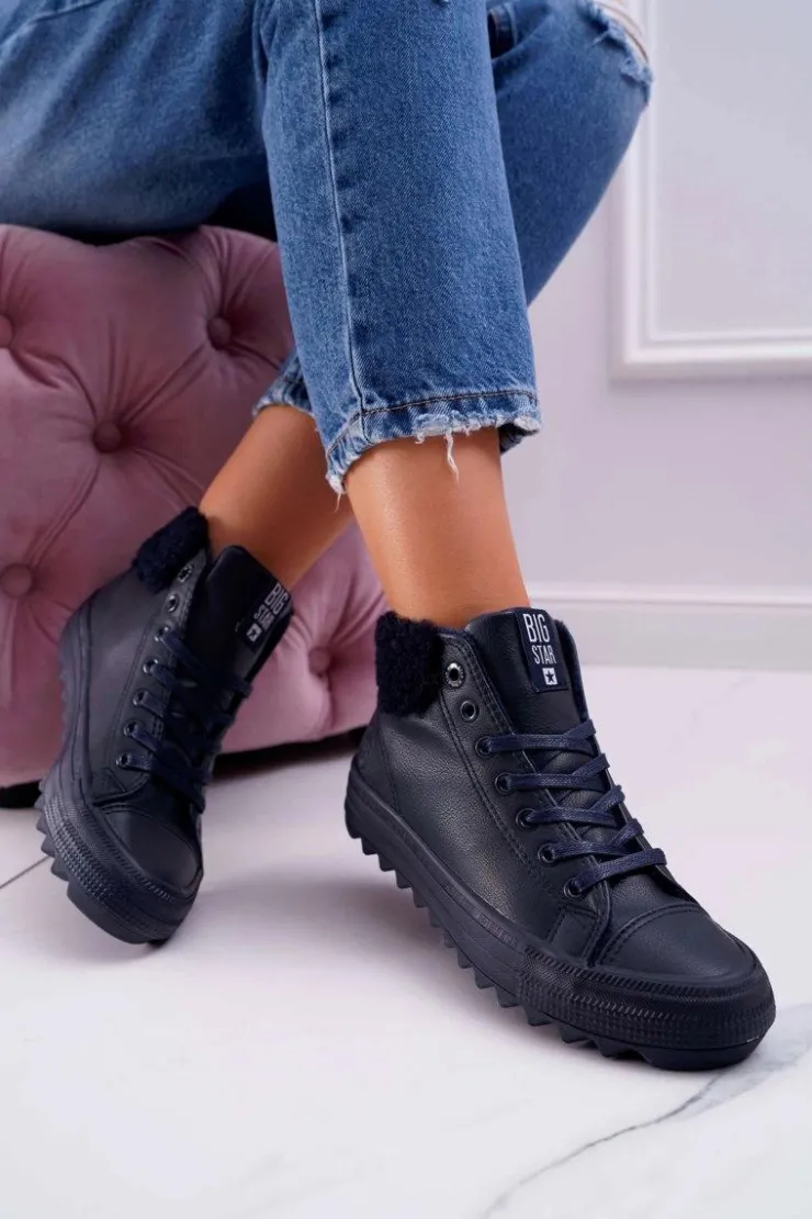 Big Star Shoes Trampki Ocieplane|Trampki Damskie Big Star*Trampki Damskie Big Star Wysokie Ocieplane Granatowe EE274147