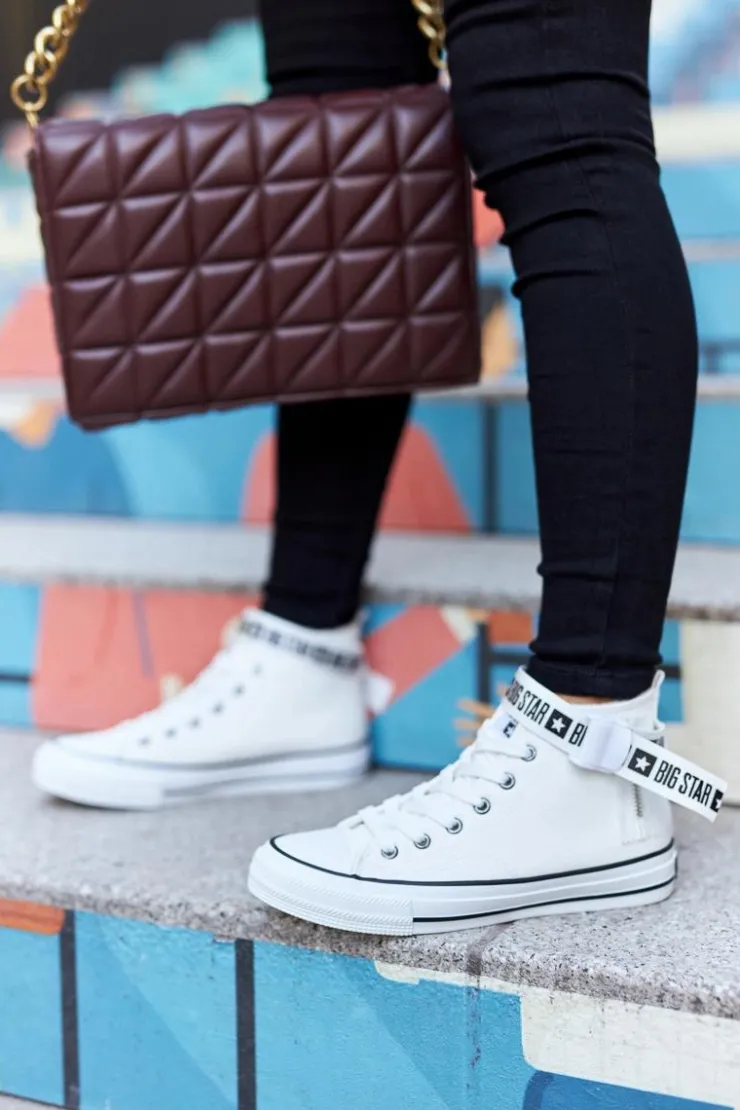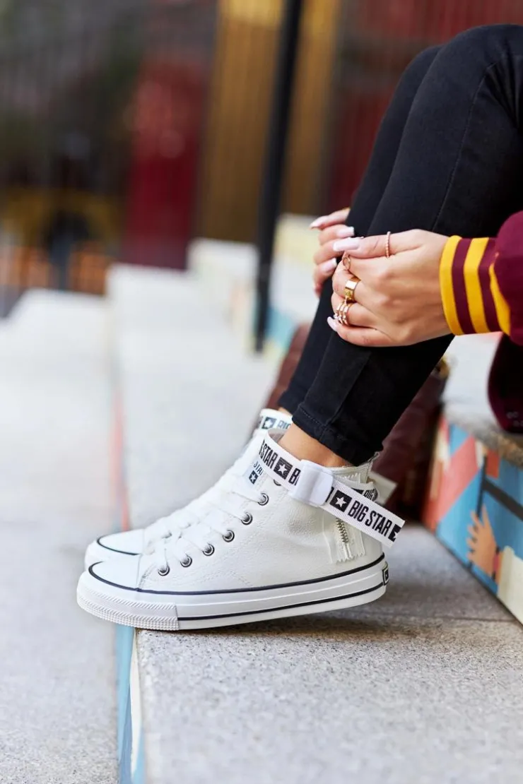 Damskie trampki polskiej marki BIG STAR. Kultowe już trampki zostały ozdobione paskiem. Wykonane z eko skóry. Posiadają ocieplenie w postaci miłego w dotyku futerka, dzięki któremu chłodne dni nie będą już takie straszne! Z boku cholewki znajduje się element ozdobny w postaci suwaka. Koniecznie sprawdź całą naszą kolekcję butów BIG STAR. Przy wyborze rozmiaru prosimy sugerować się tabelą rozmiarów.