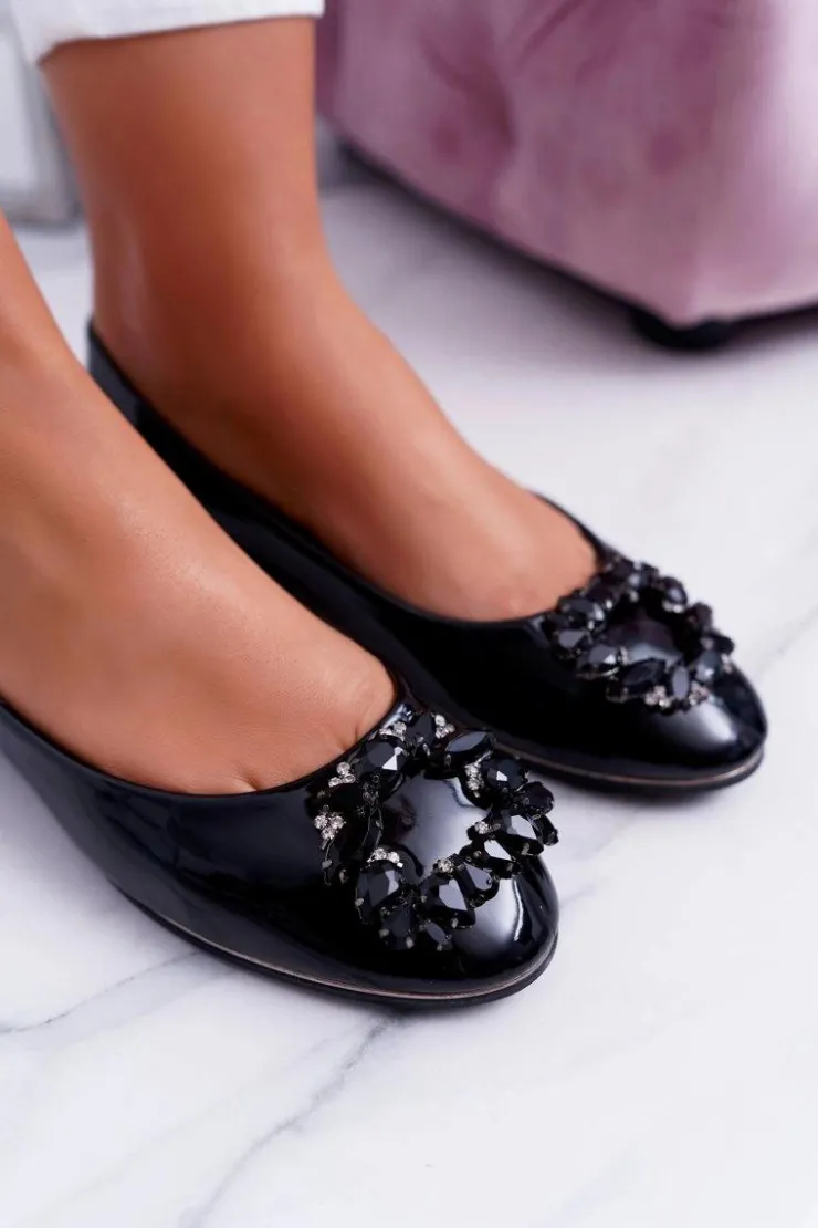 Boto Baleriny Klasyczne*Baleriny Damskie Czarne z Kryształami Decor