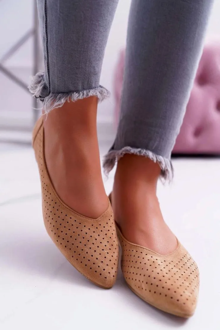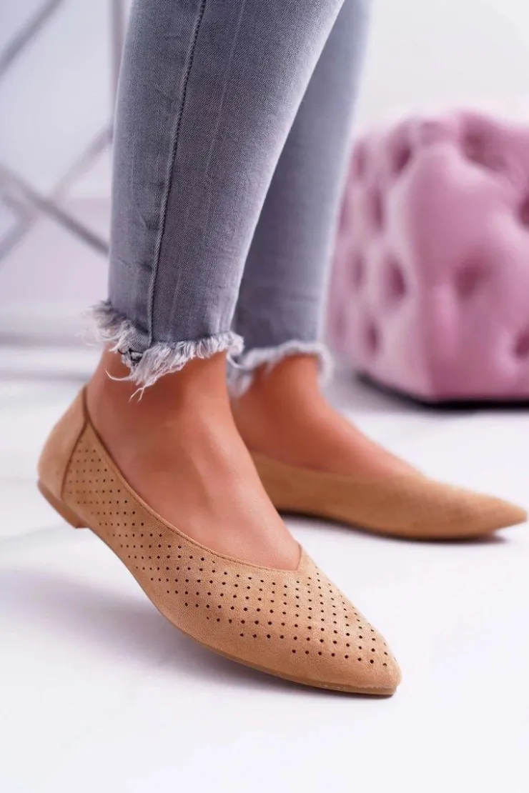 Boto Baleriny Klasyczne*Baleriny Damskie Lu Boo Ażurowe Camel Dessert