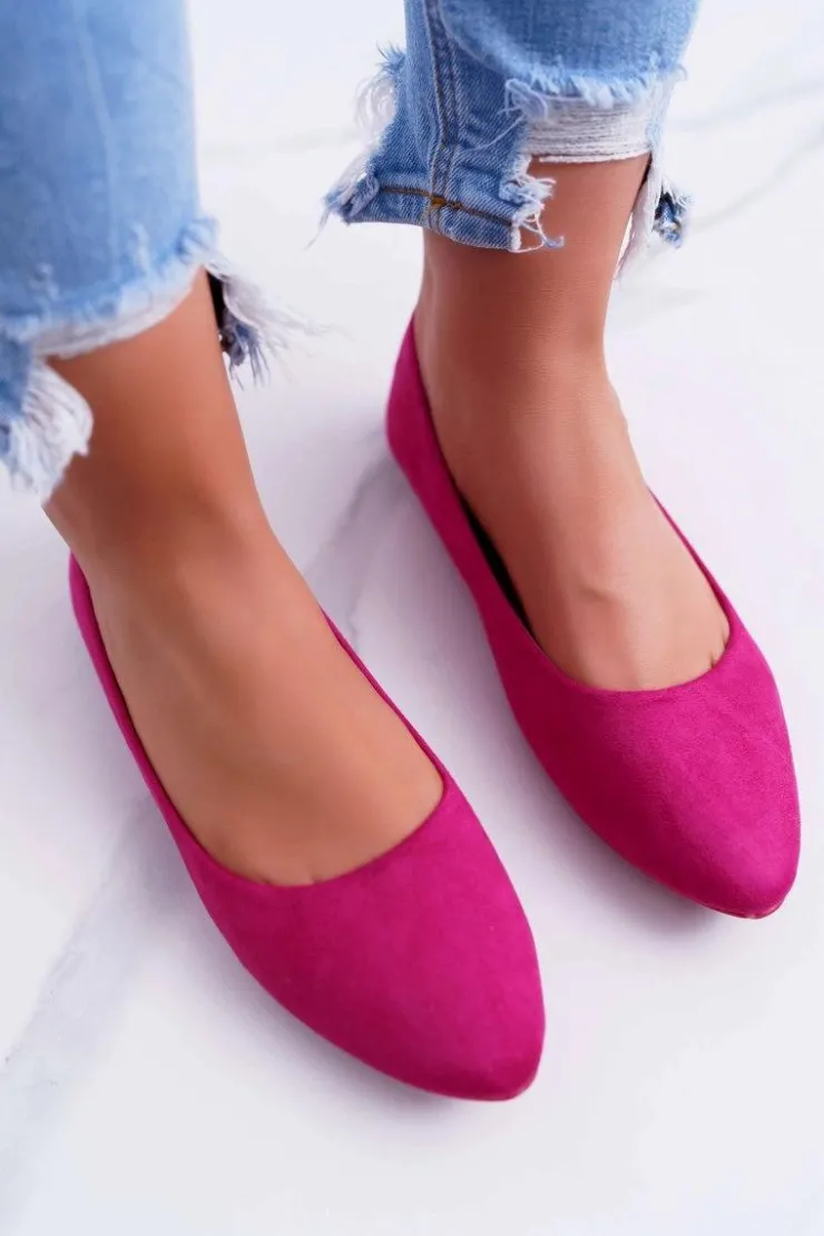 Boto Baleriny Klasyczne*Damskie Balerinki Zamsz Fuksja Bueno
