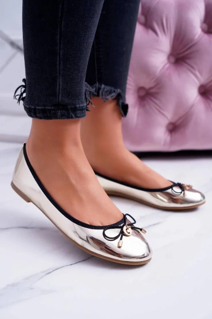 Boto Baleriny Klasyczne*Damskie Złote Wsuwane Balerinki Cleoss