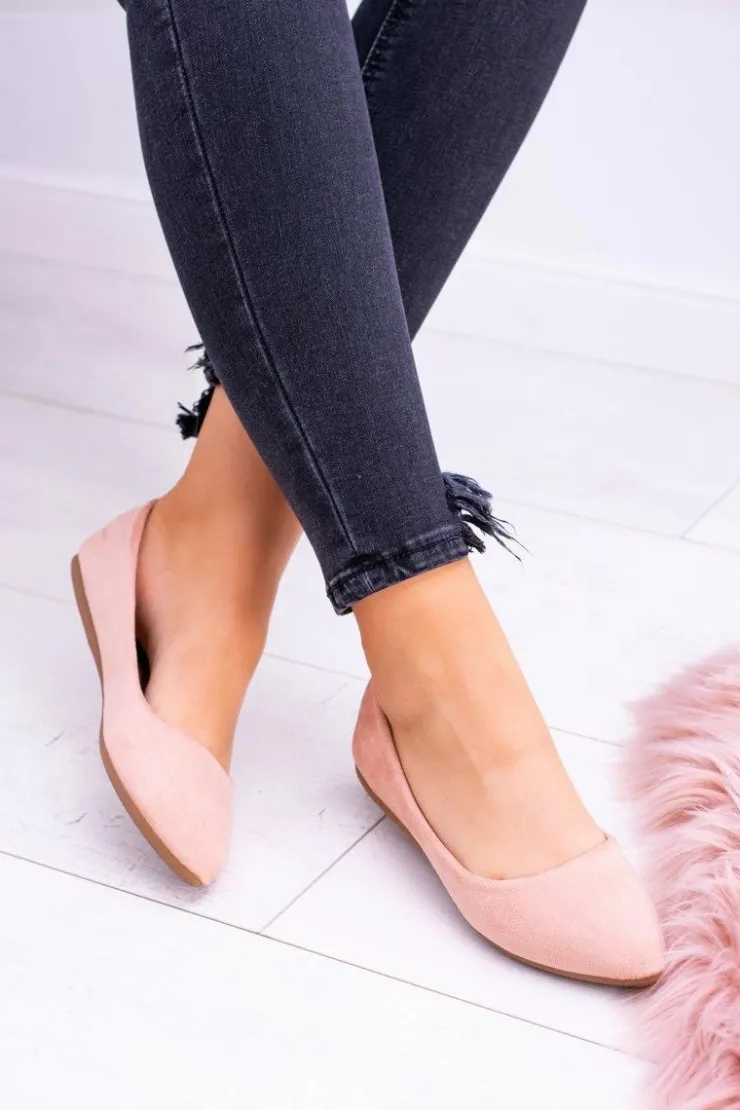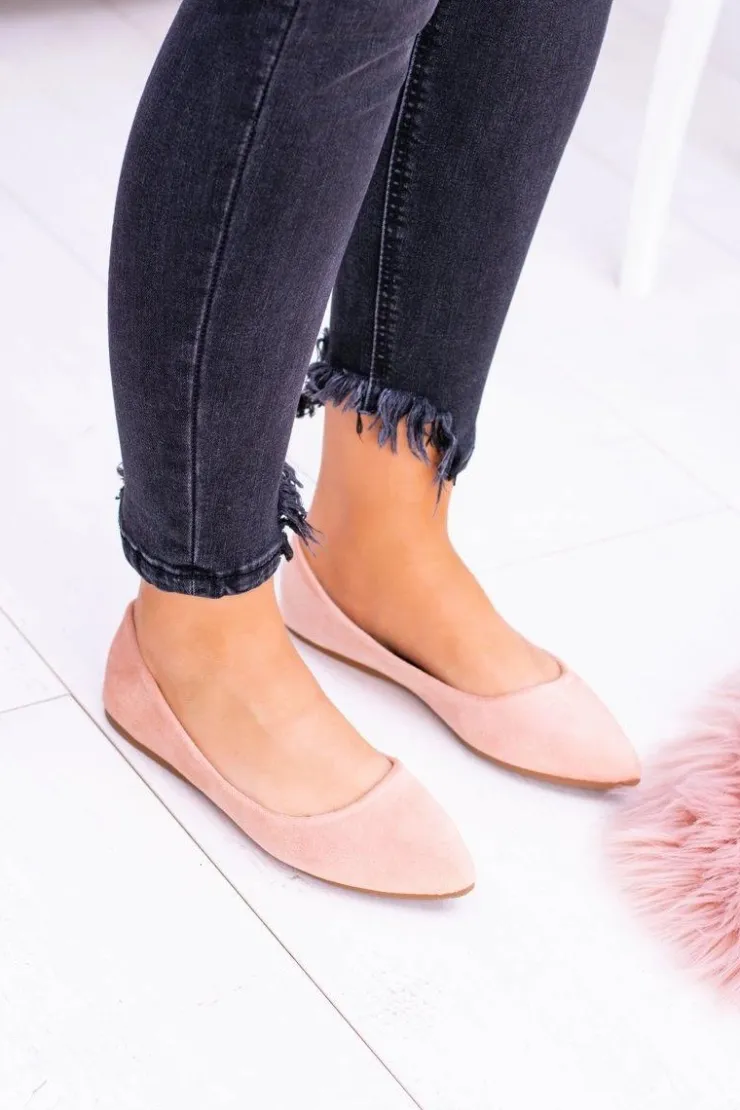Delikatne baleriny z noskiem w szpic. Buty wykonane są z eko zamszu. Baleriny posiadają miękką wkładkę, która zapewni Ci komfort. Dostępne w wielu pięknych kolorach. Koniecznie sprawdź całą naszą kolekcję balerinek! Przy wyborze rozmiaru prosimy sugerować się tabelą rozmiarów.