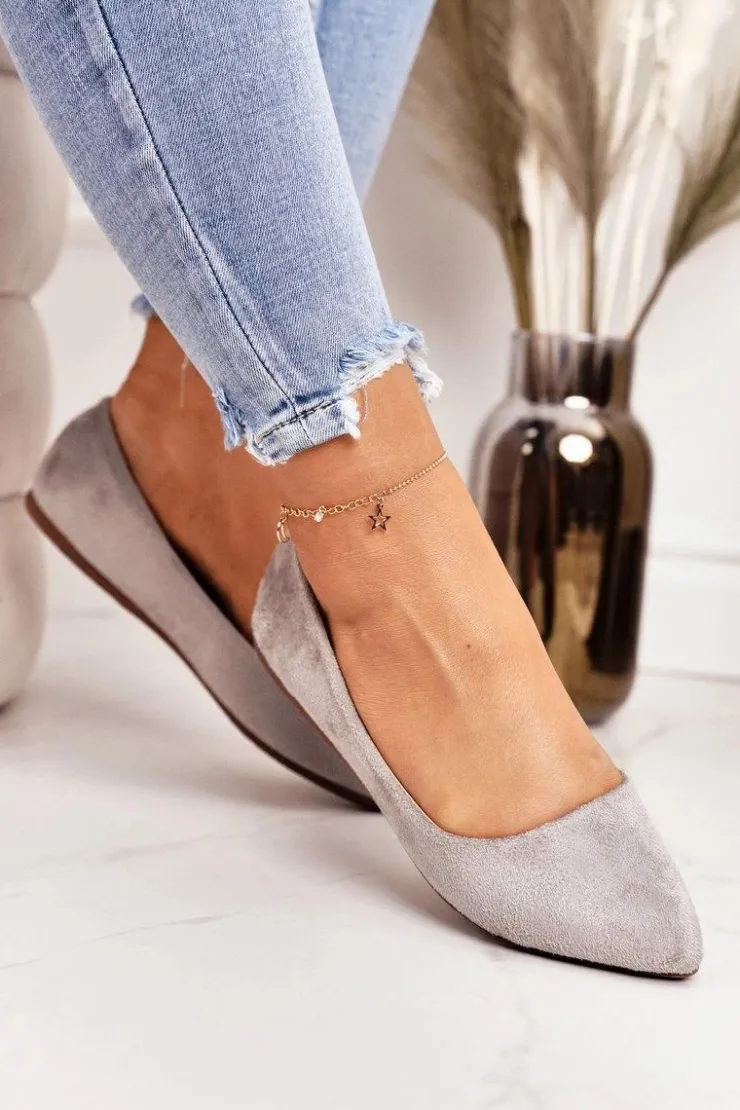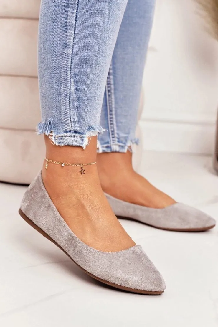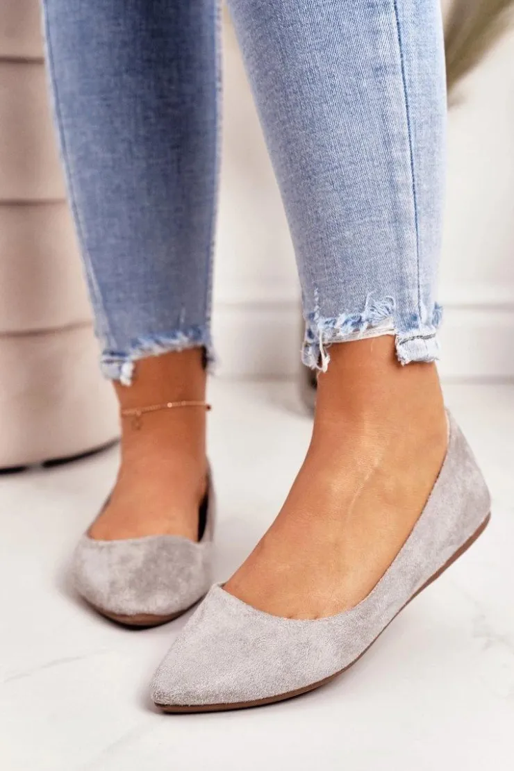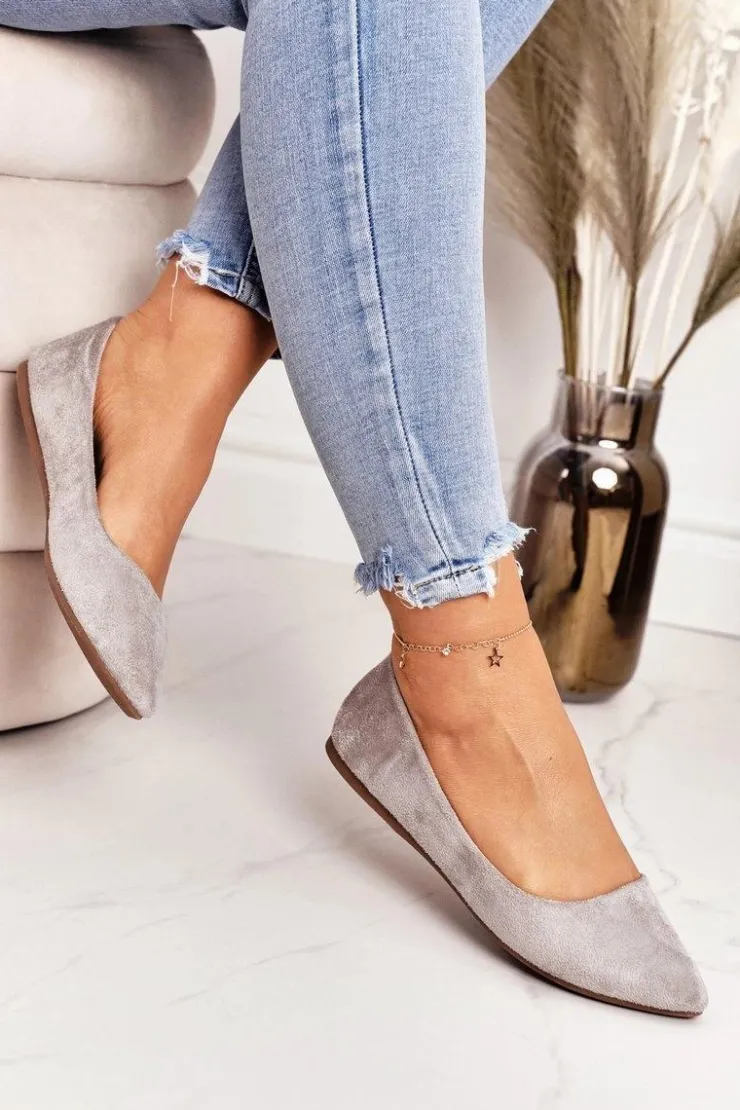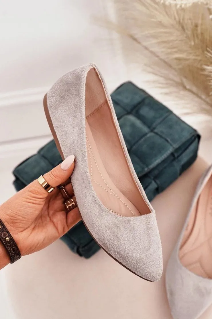 Boto Baleriny Klasyczne*Delikatne Baleriny W Szpic Zamszowe Szare Dermeno