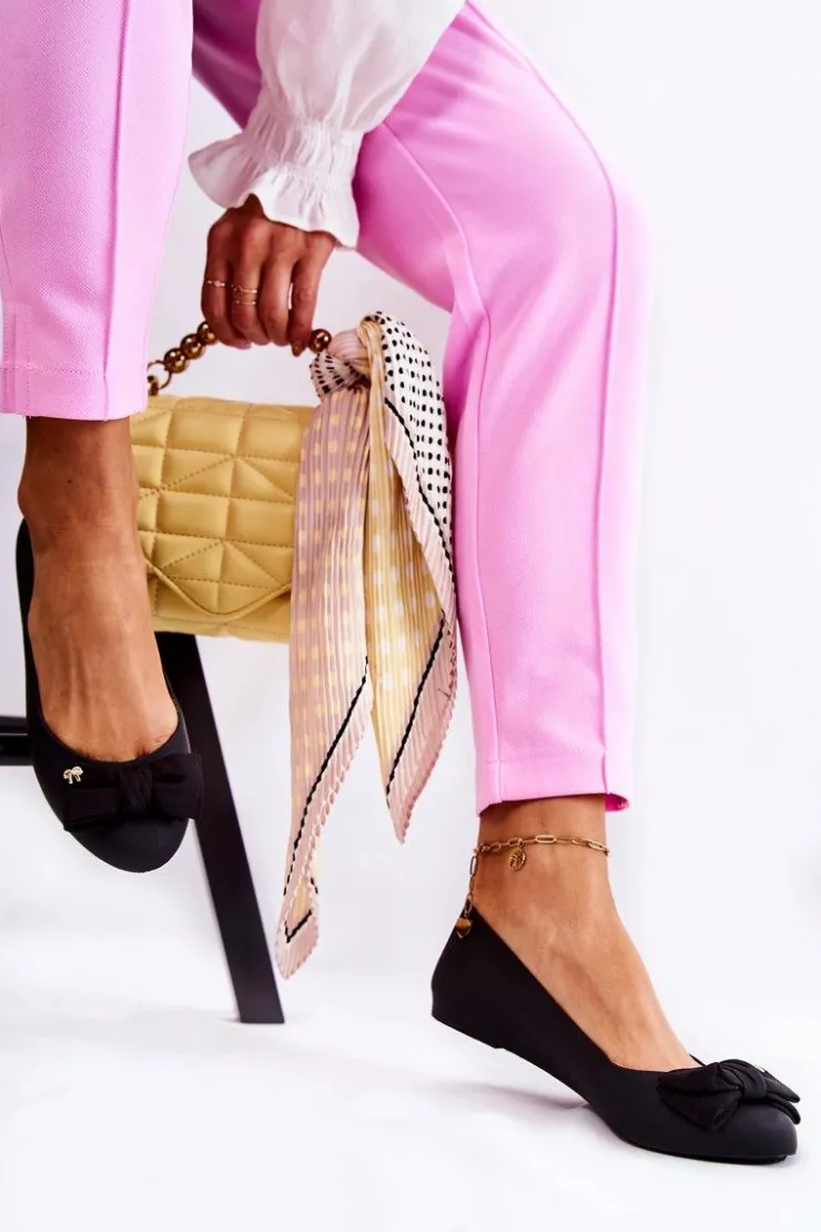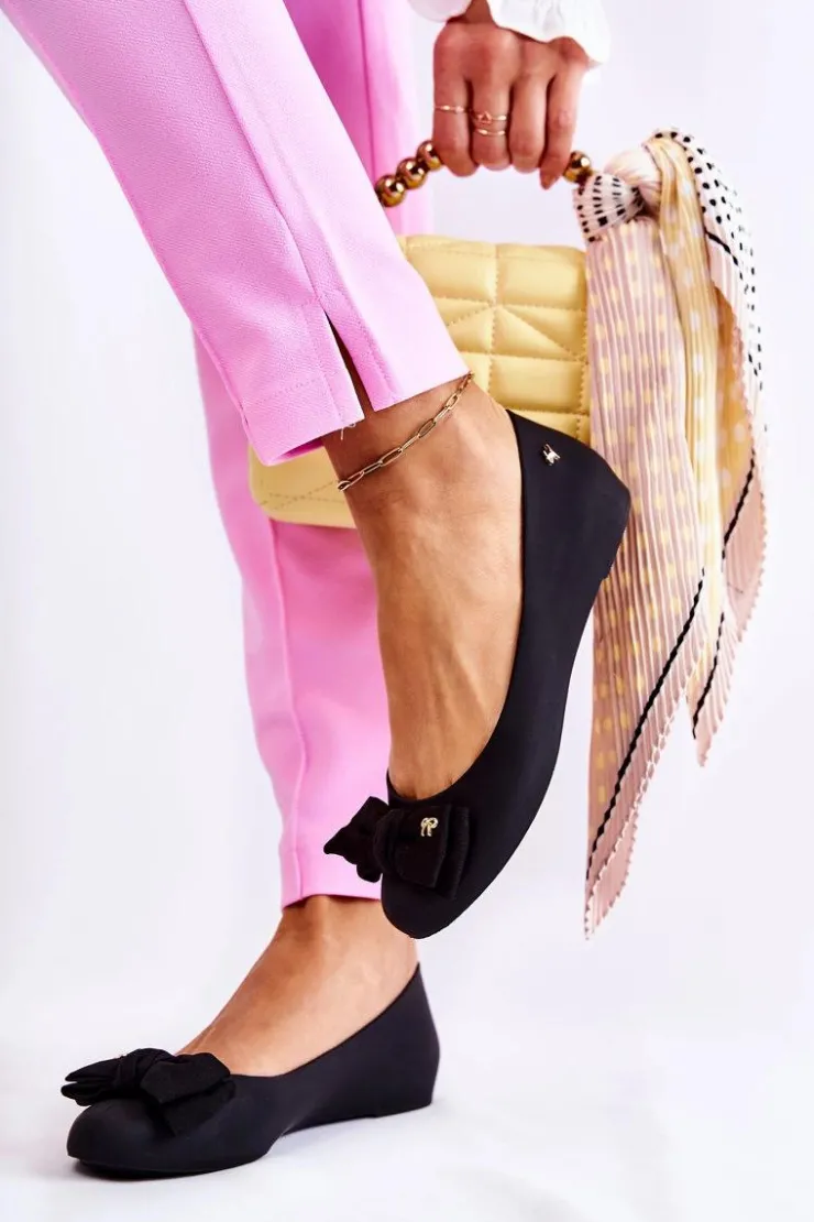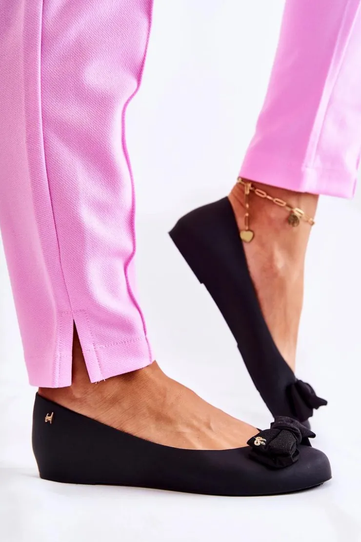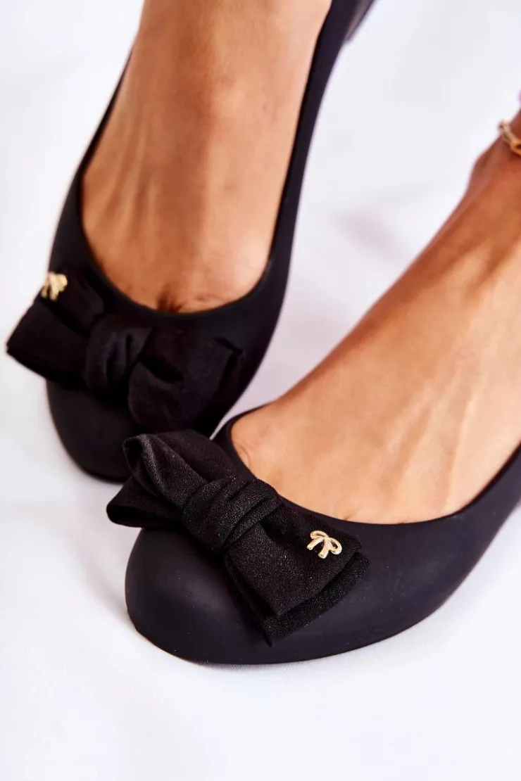 Boto Baleriny Klasyczne*Gumowe Damskie Baleriny Kokardka Czarne Fergie