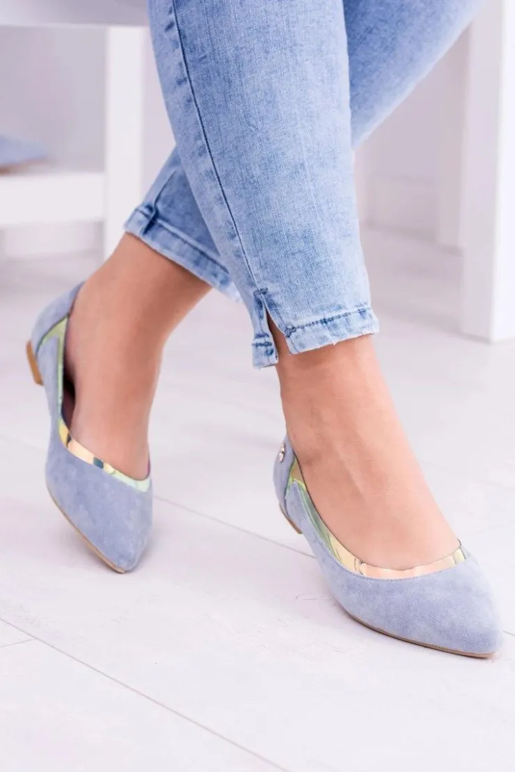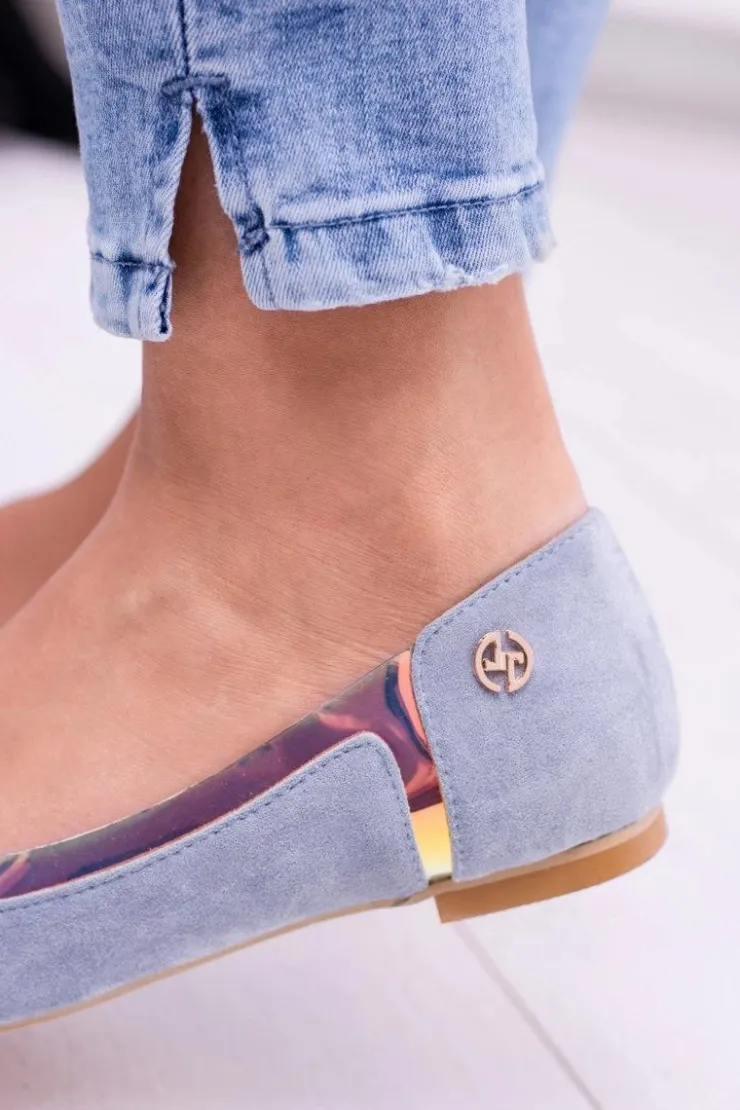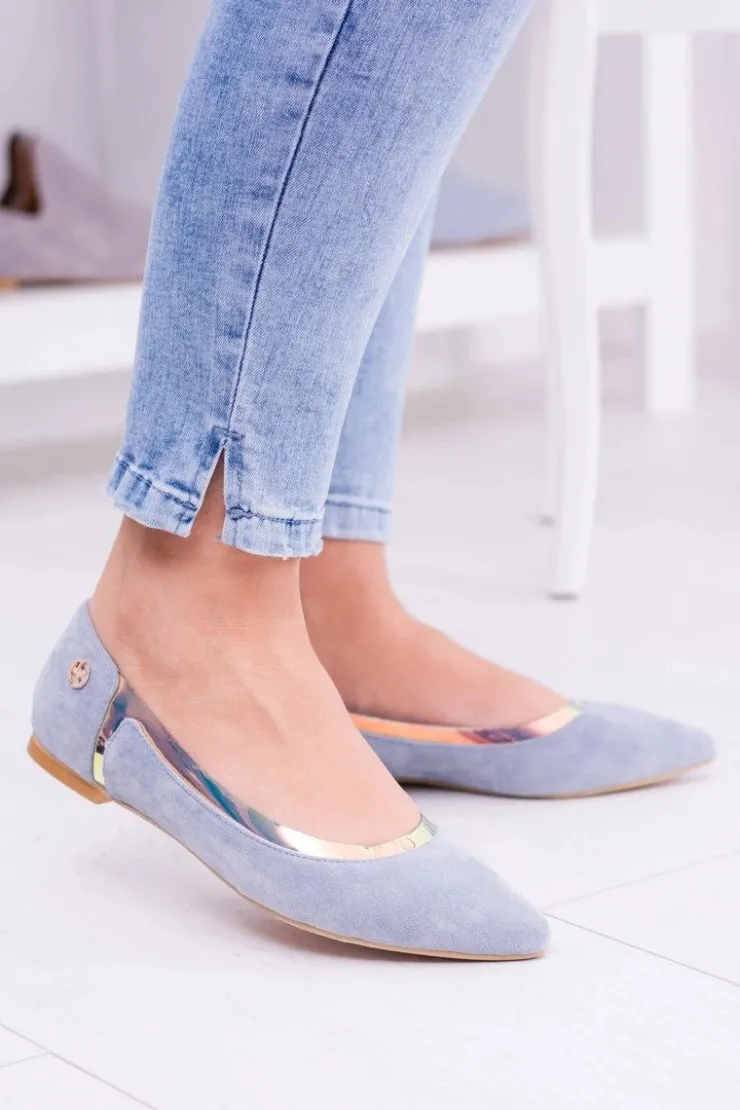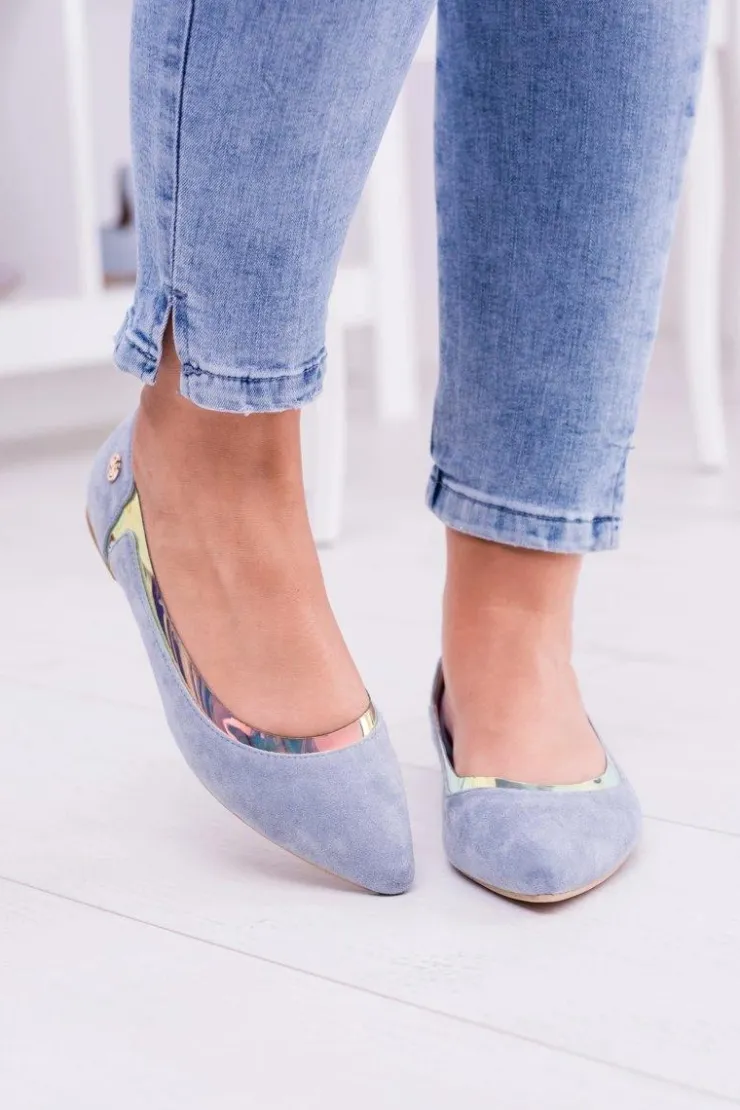 Boto Baleriny Klasyczne*Lu Boo Niebieskie Transparentne Holograficzne Balerinki w Szpic Lison
