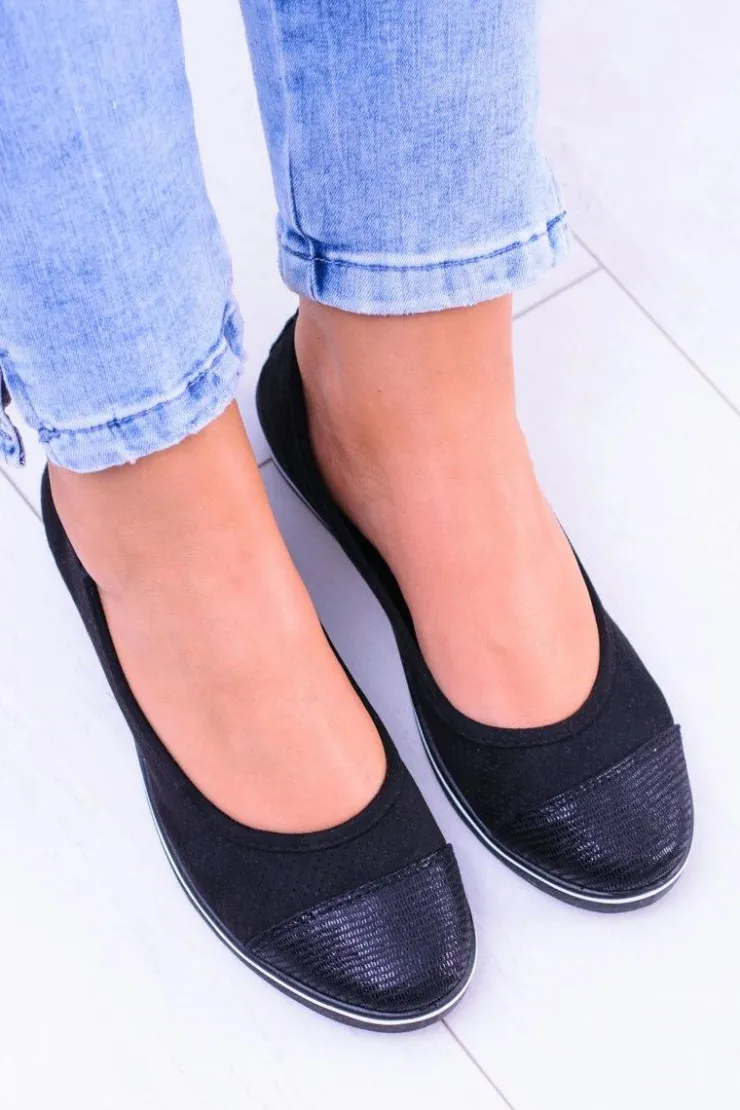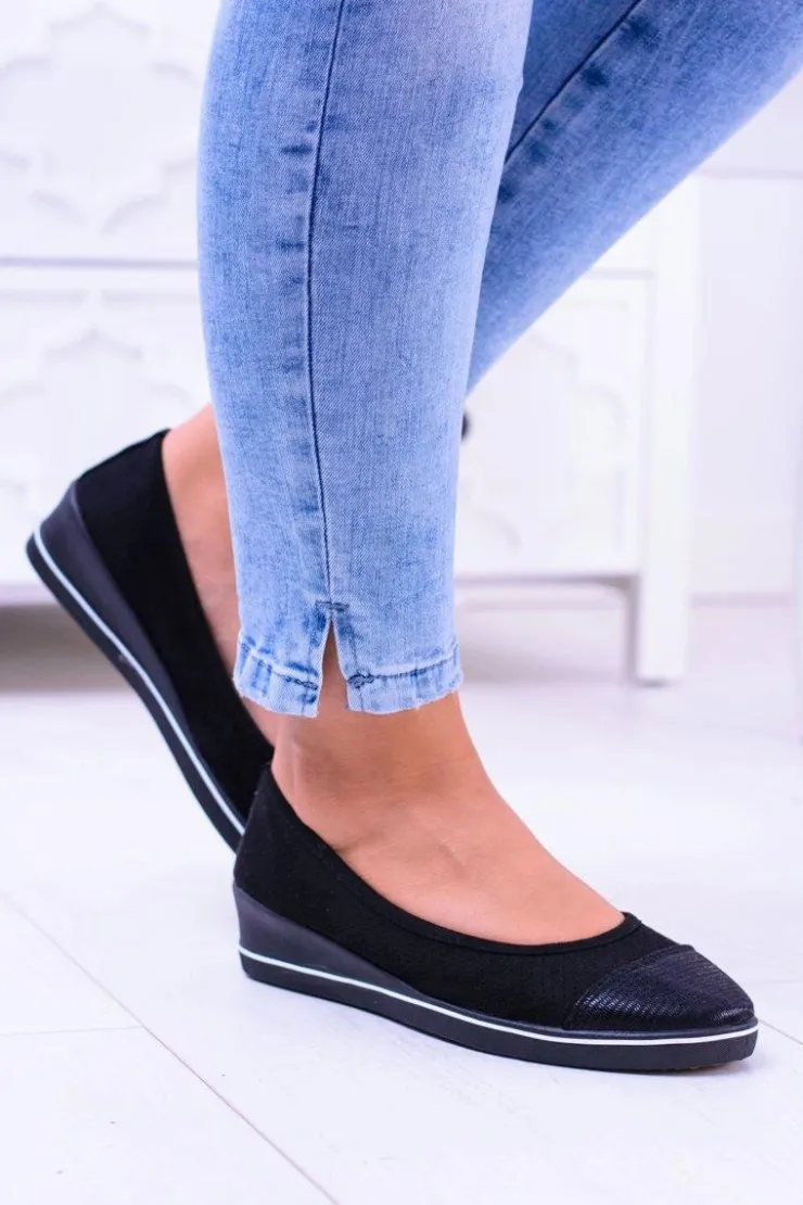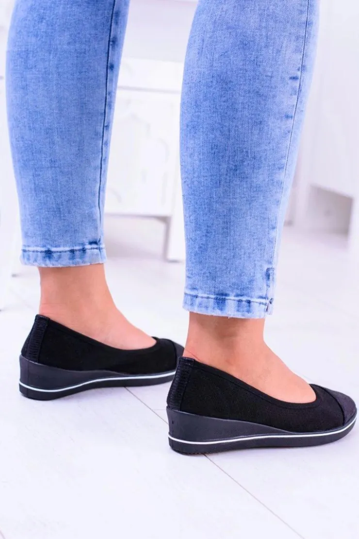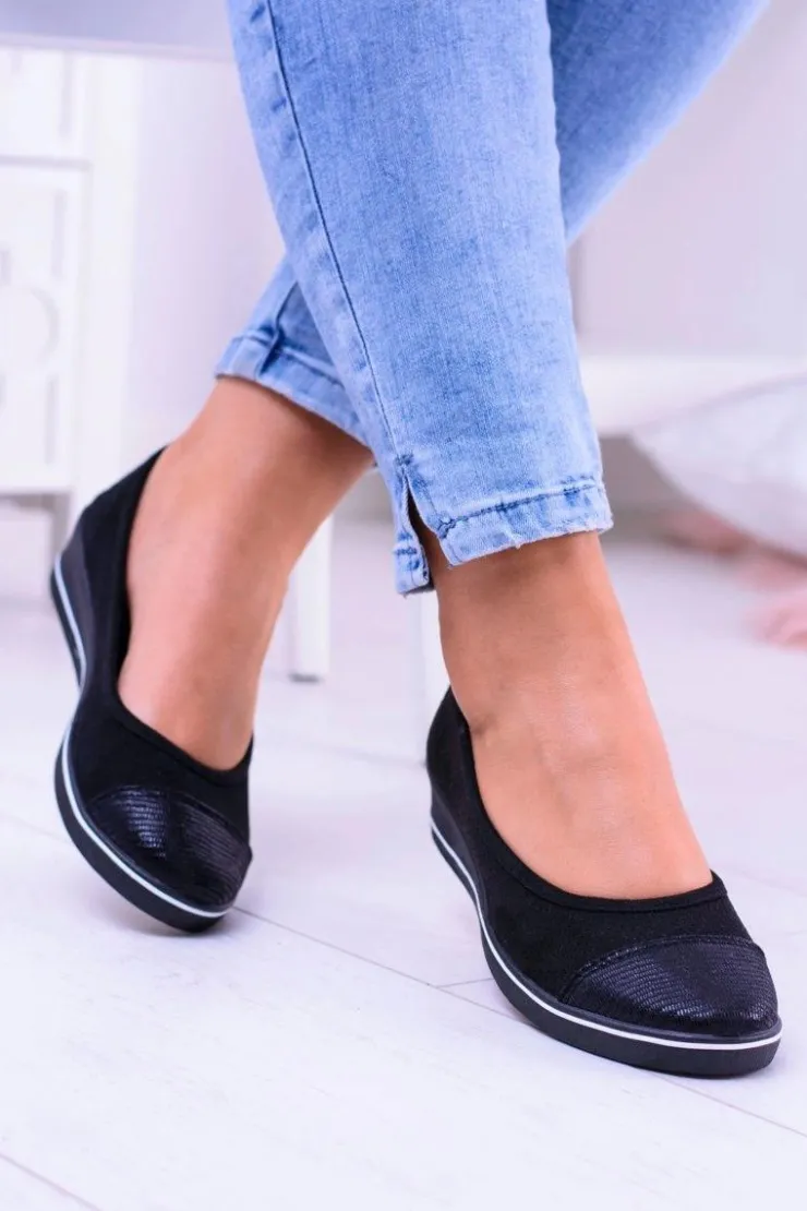 Boto Baleriny Klasyczne*Materiałowe Czarne Baleriny Na Koturnie Elleni