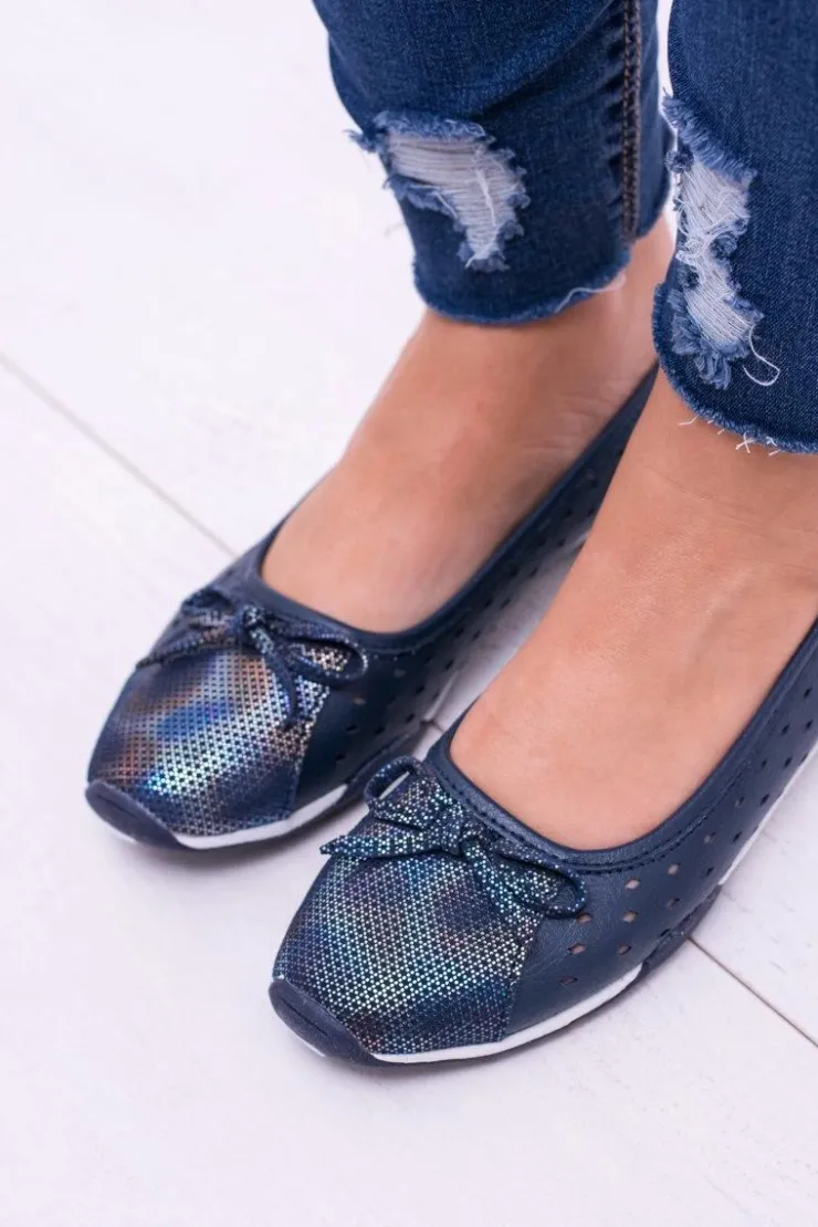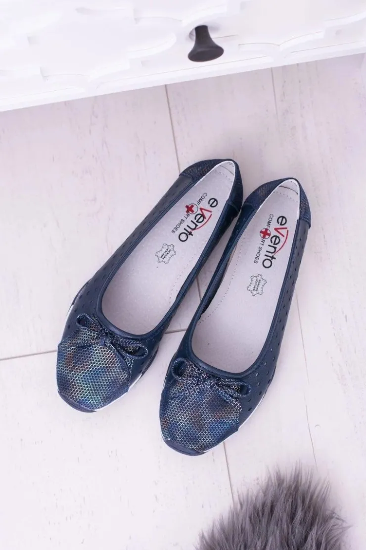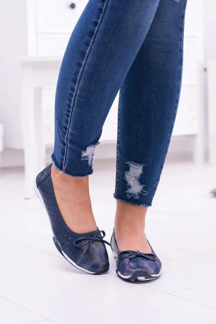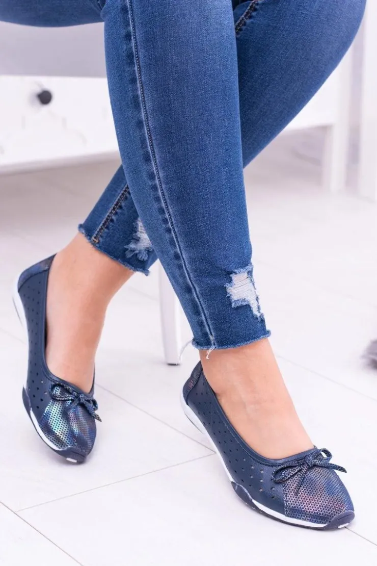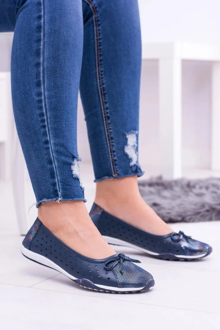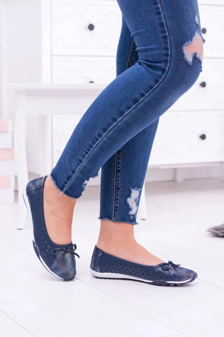 Boto Baleriny Skórzane|Baleriny Klasyczne*Damskie Skórzane Granatowe Ażurowe Balerinki Erdola