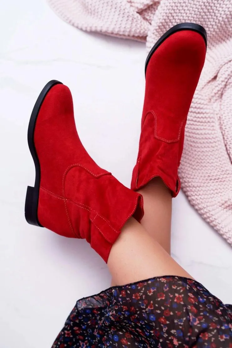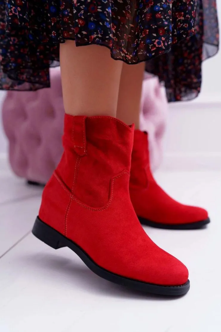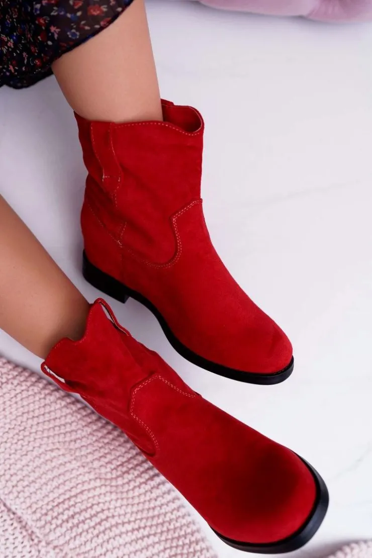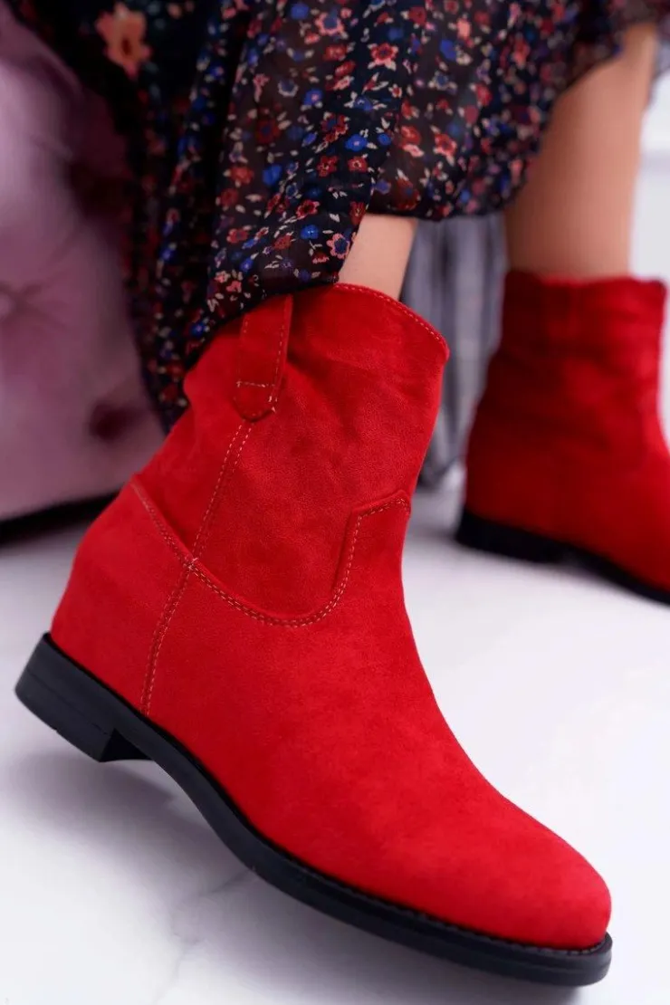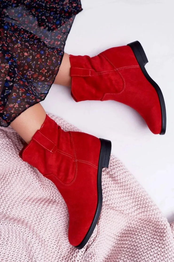 Boto Botki Na Koturnie|Botki Zimowe Damskie*Botki Damskie Na Koturnie Płaski Obcas Ocieplane Za Kostkę Czerwone Demini