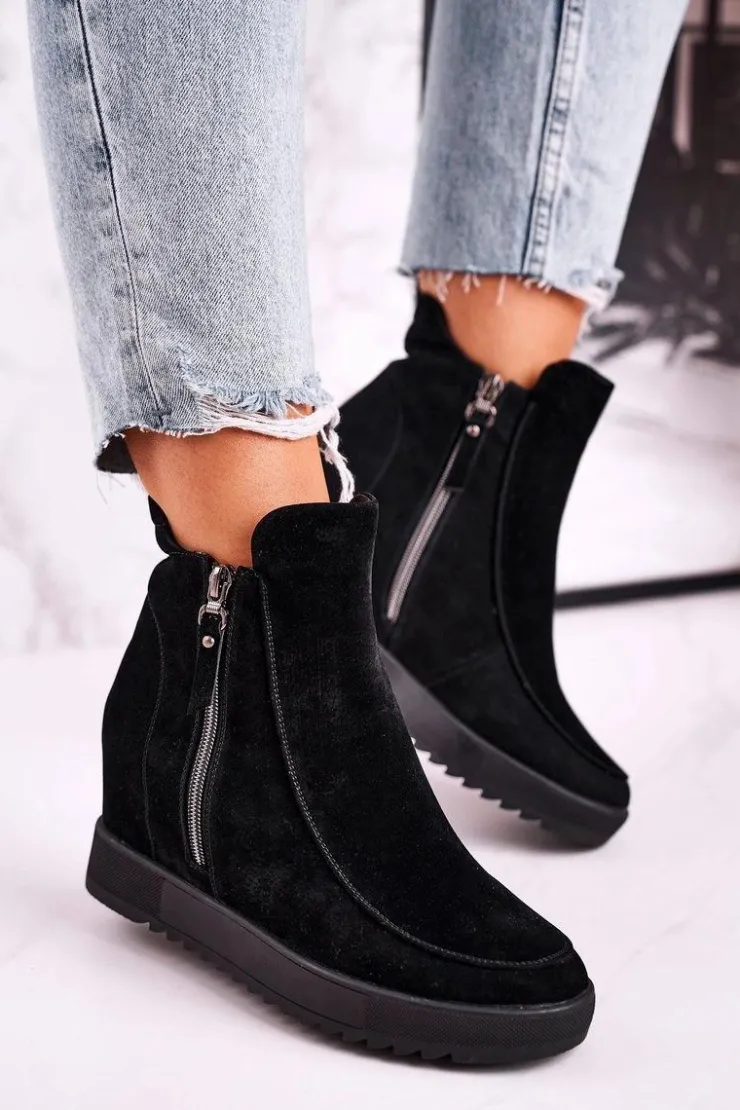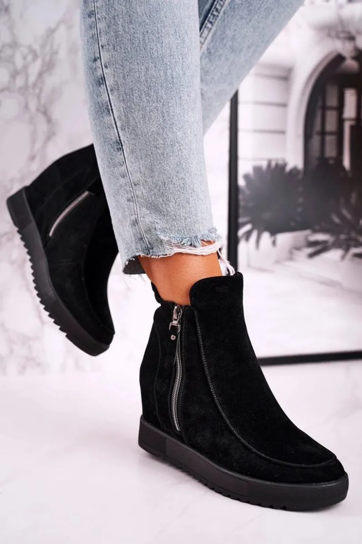 Boto Botki Na Koturnie|Czarne Botki*Damskie Botki Na Koturnie Zamszowe Czarne Silvia