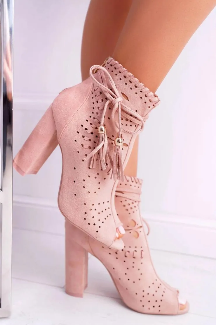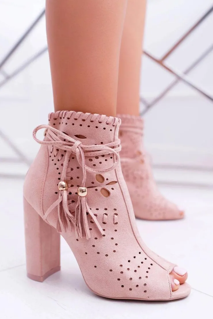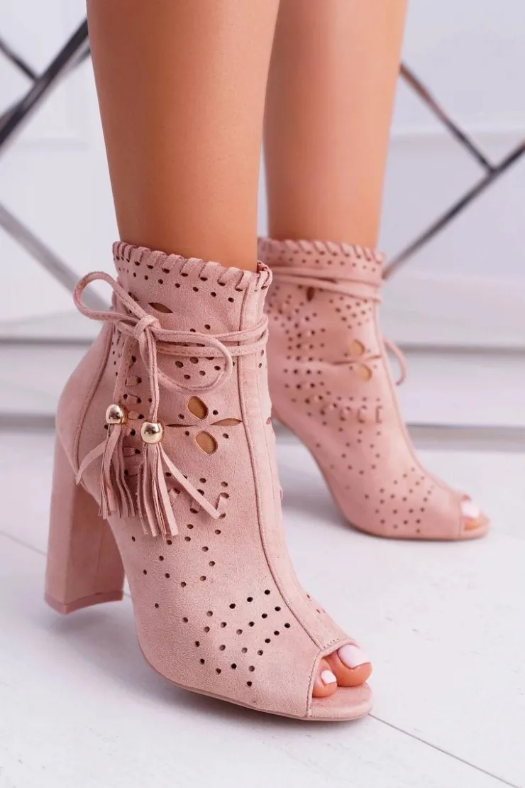 Boto Botki Na Słupku|Botki Zamszowe*Botki Damskie Na Słupku Zamszowe Różowe Corinne