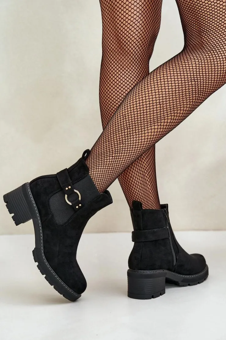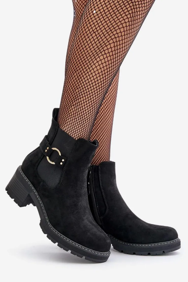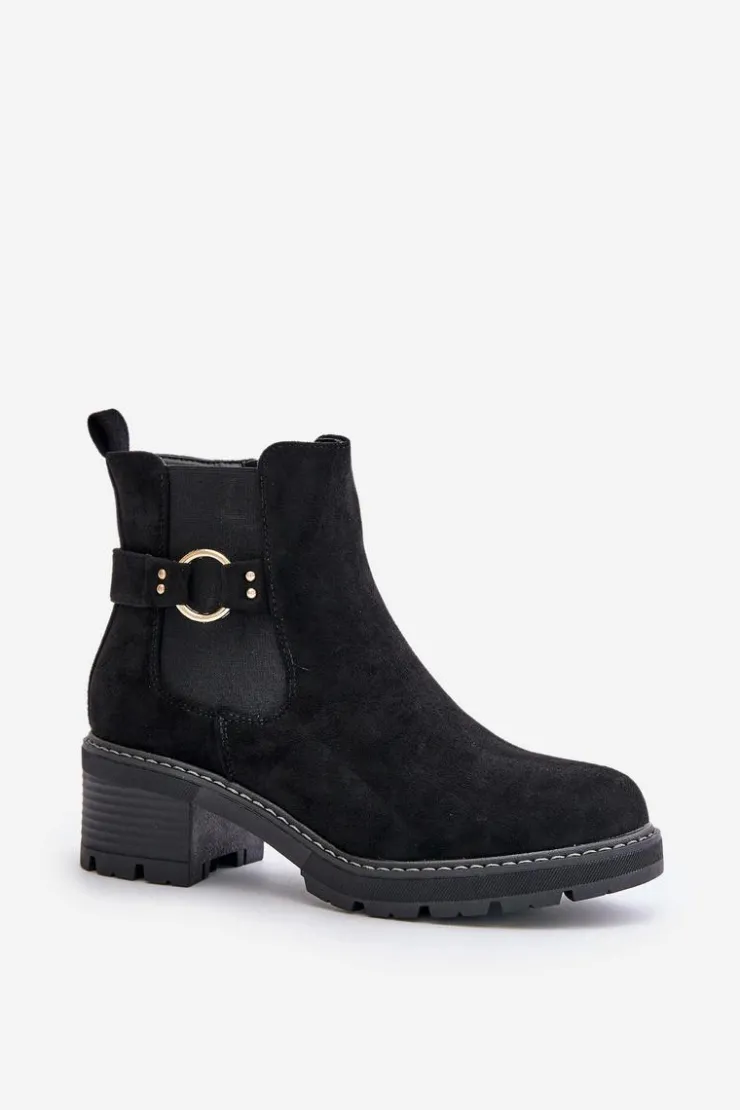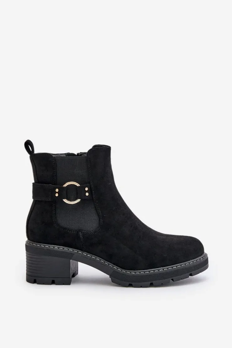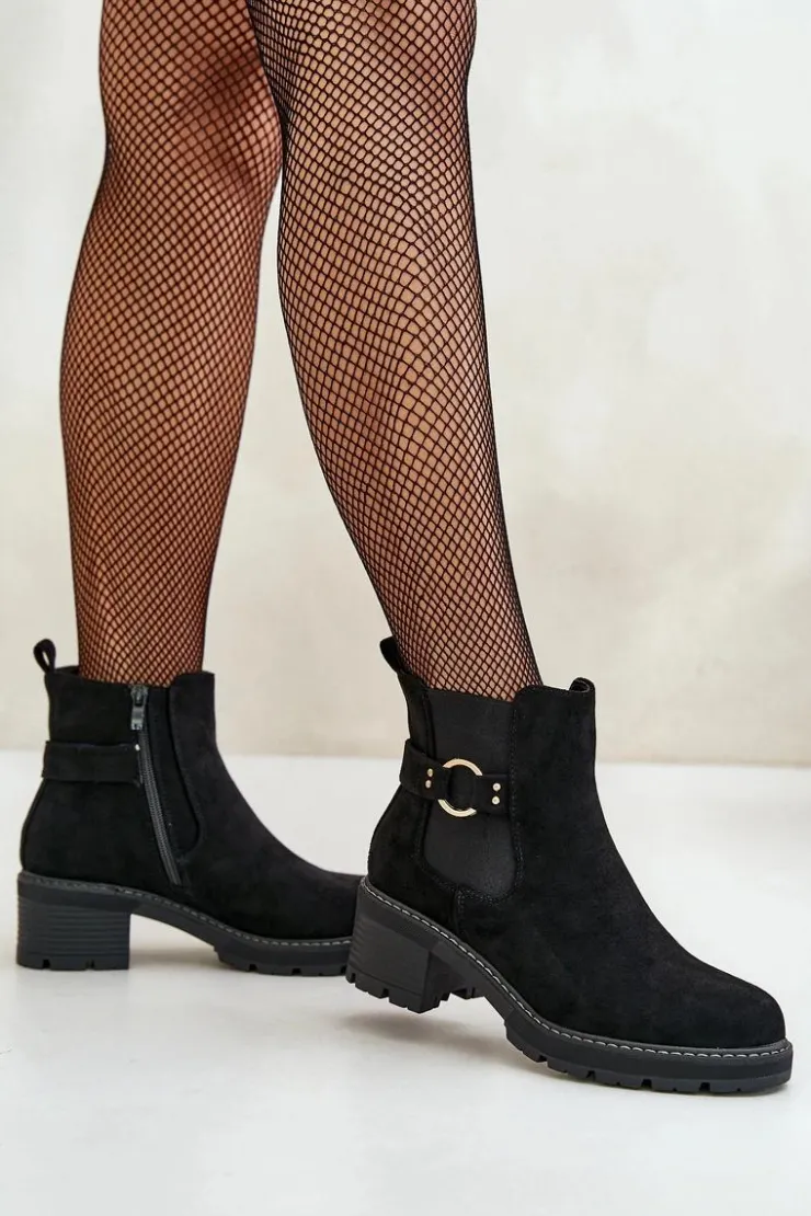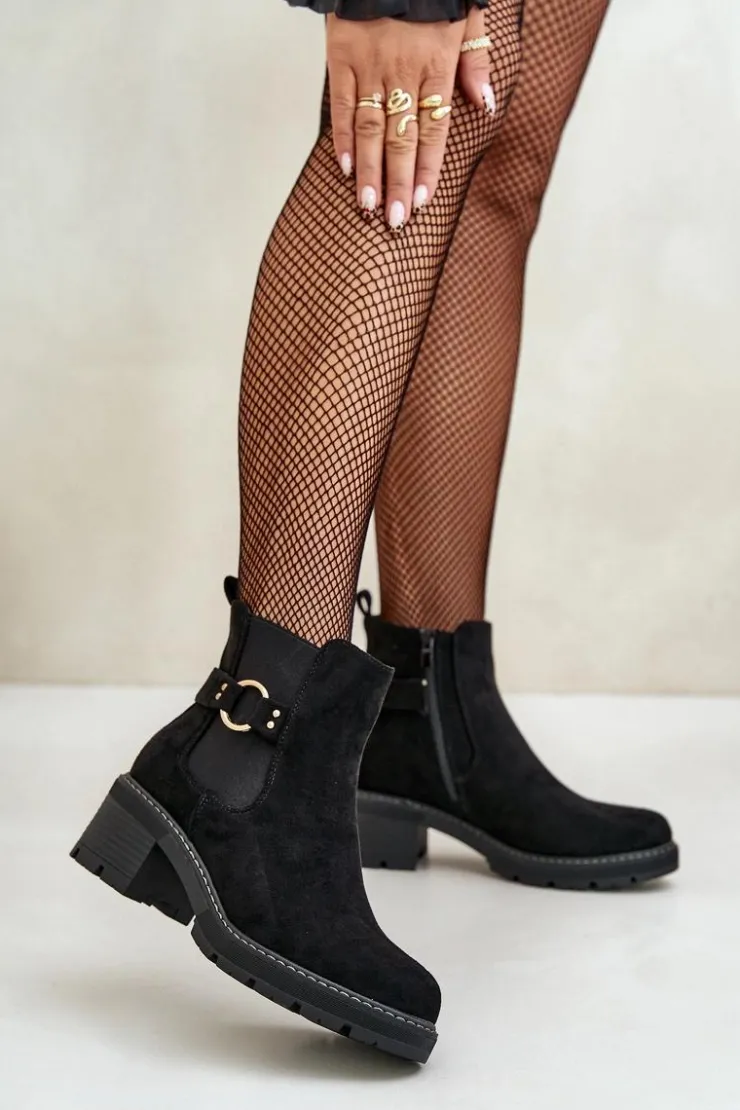 Boto Botki Na Słupku|Botki Zimowe Damskie*Damskie Ocieplane Botki Sztyblety Na Obcasie Ze Złotym Detalem Eko Zamszowe Czarne Mailta