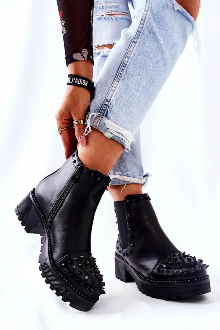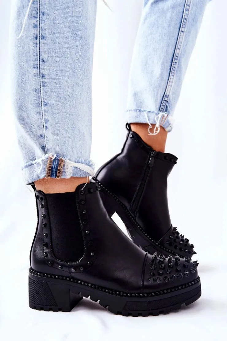 Wyjątkowe botki, które zachwycą niejedną z Was! Zostały wykonane z ekologicznej skóry. Posiadają ozdobne dżety na przodzie, które dodają butom charakteru. Zapinane na suwak. Obcas w postaci masywnego słupka oraz platforma zapewnią stabilność. Nie czekaj aż znikną i kup już dziś! Przy wyborze rozmiaru prosimy sugerować się tabelą rozmiarów.