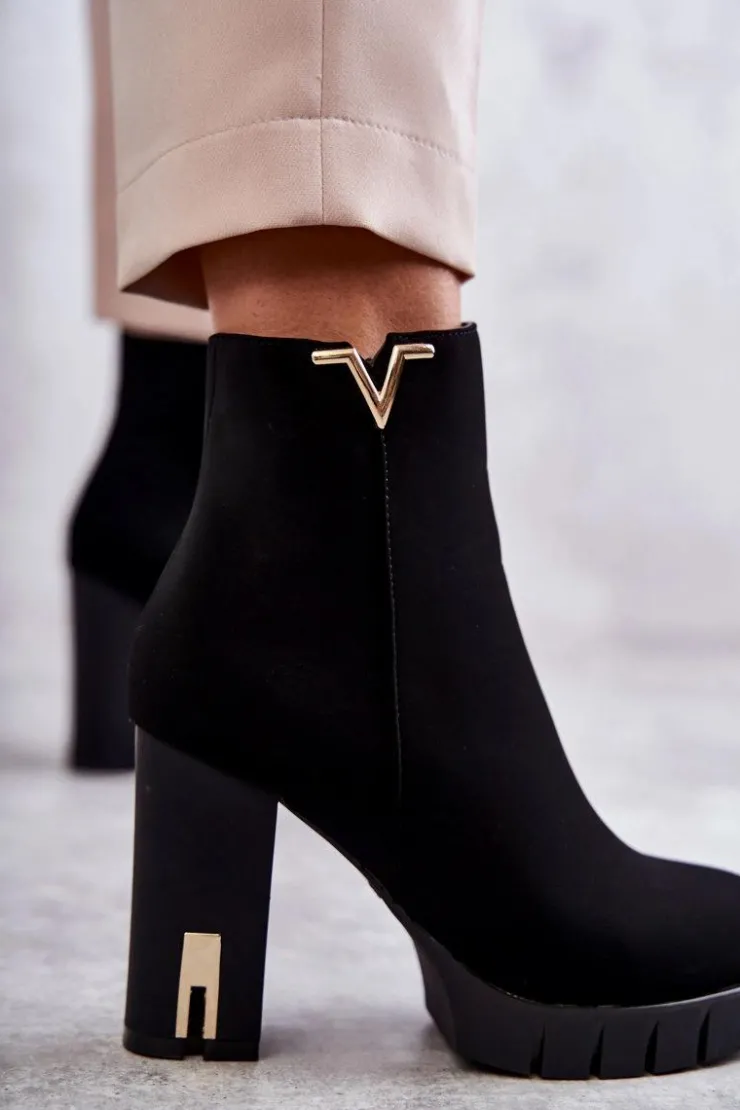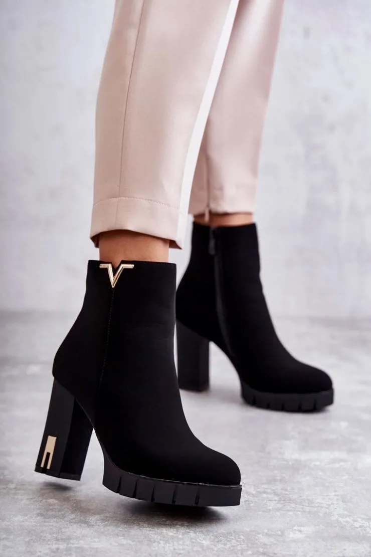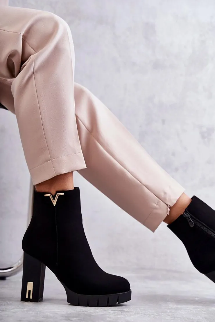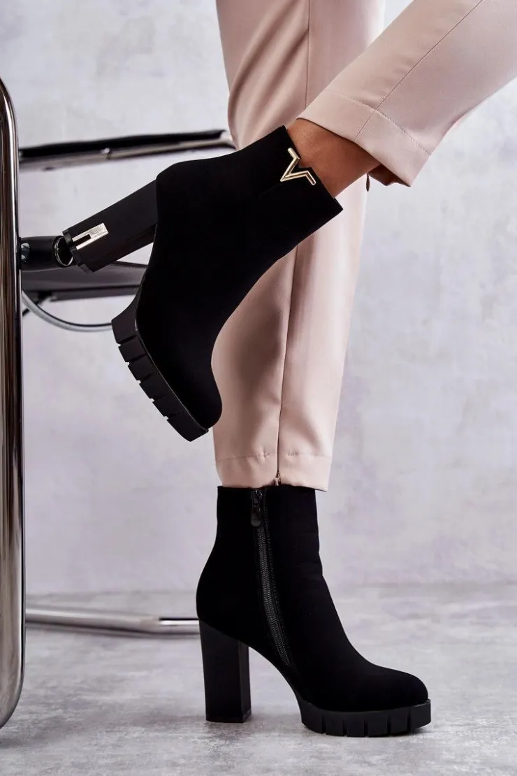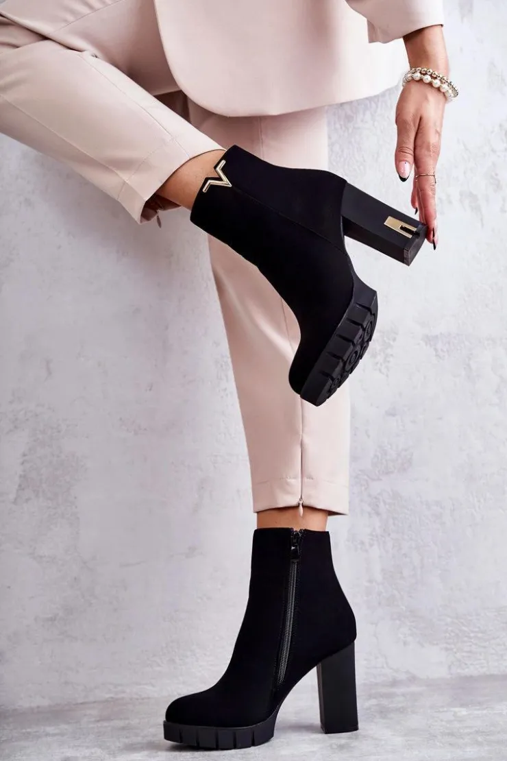 Modne botki wykonane z miłego w dotyku materiału z ozdobą na górze cholewki. Posiadają ocieplenie w postaci koca obuwniczego. Osadzone na obcasie w postaci słupka z lustrzanym elementem oraz delikatnej platformie ze żłobieniami. Idealne do dzianinowej sukienki czy woskowanych spodni. Koniecznie powinnaś mieć ten model w swojej szafie! Przy wyborze rozmiaru prosimy sugerować się tabelą rozmiarów.