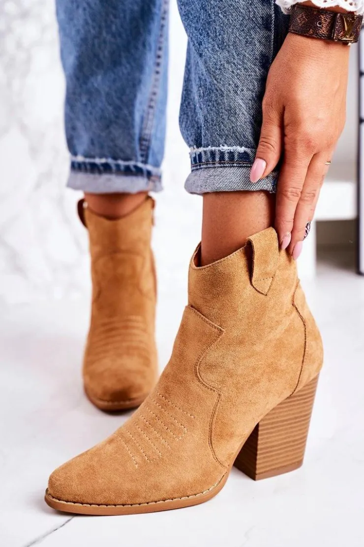 Klasyczne botki w kowbojskim stylu. Wnętrze ocieplone jest kocem obuwniczym. Botki dopełnią wiele Twoich stylizacji. Suwak na boku ułatwi zakładanie. Przy wyborze rozmiaru prosimy sugerować się tabelą rozmiarów.