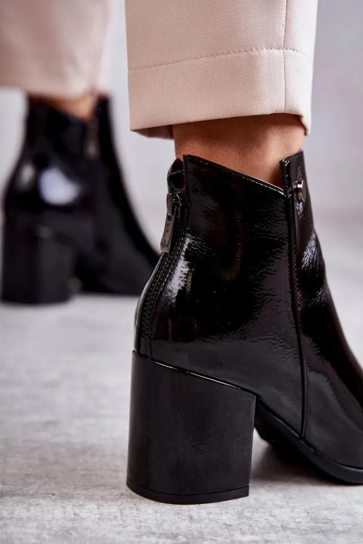 Piękne, damskie botki od marki La.Fi zostały wykonane ze skóry ekologicznej. Przyozdobione suwakiem z tyłu oraz emblematem na boku cholewki. Osadzone na obcasie w postaci słupka. Model z migdałowym noskiem. Botki zostały ocieplone kocem obuwniczym. Zapinane na suwak. Świetny model na chłodniejsze dni! Przy wyborze rozmiaru prosimy sugerować się tabelą rozmiarów.