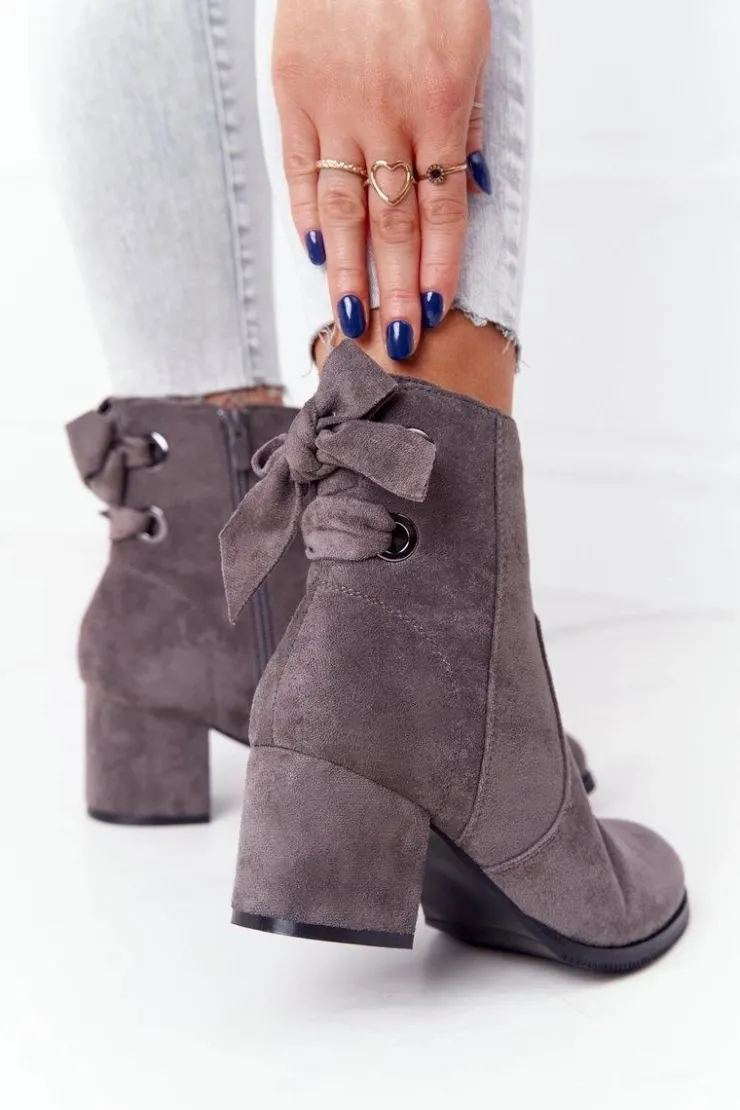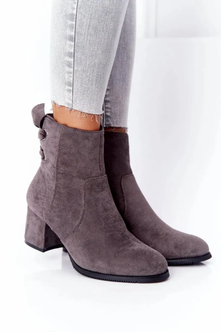 Boto Botki Na Słupku|Czarne Botki*Damskie Ocieplane Botki Na Słupku Szare Kayla