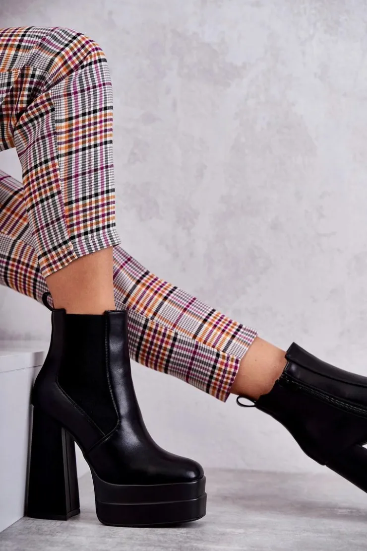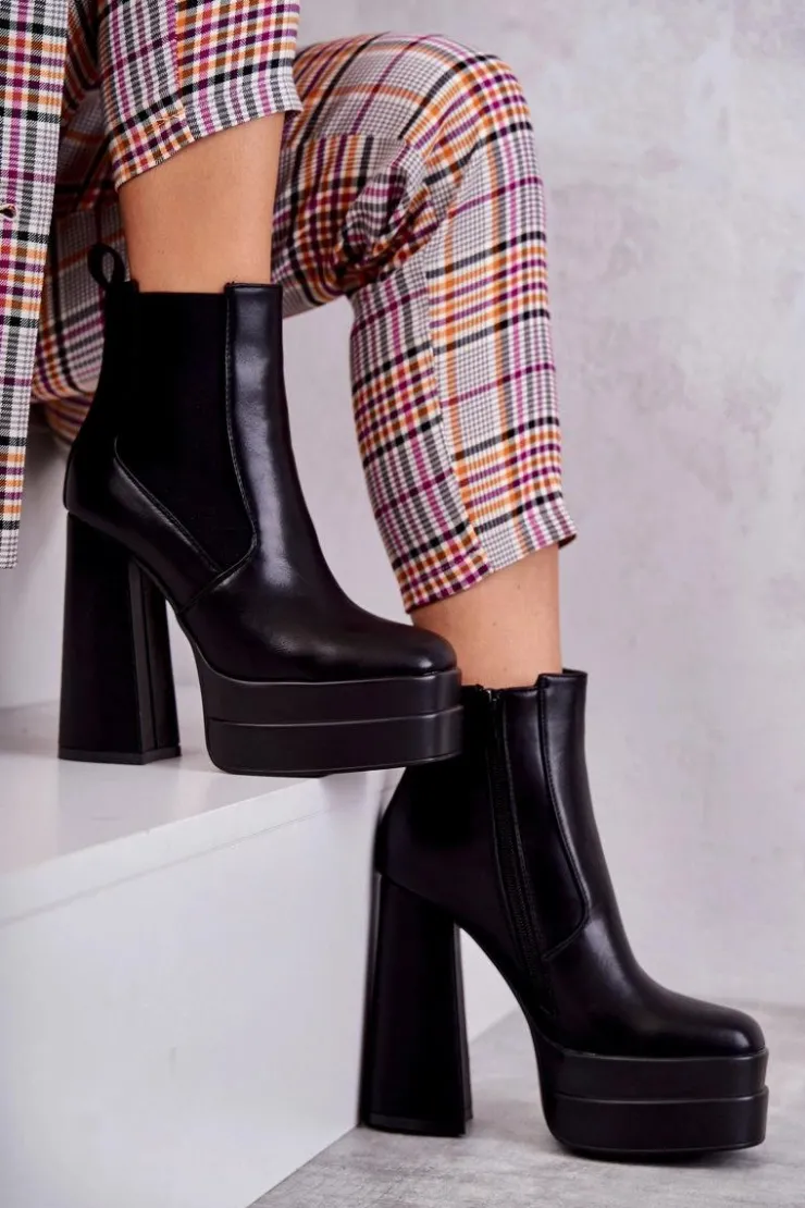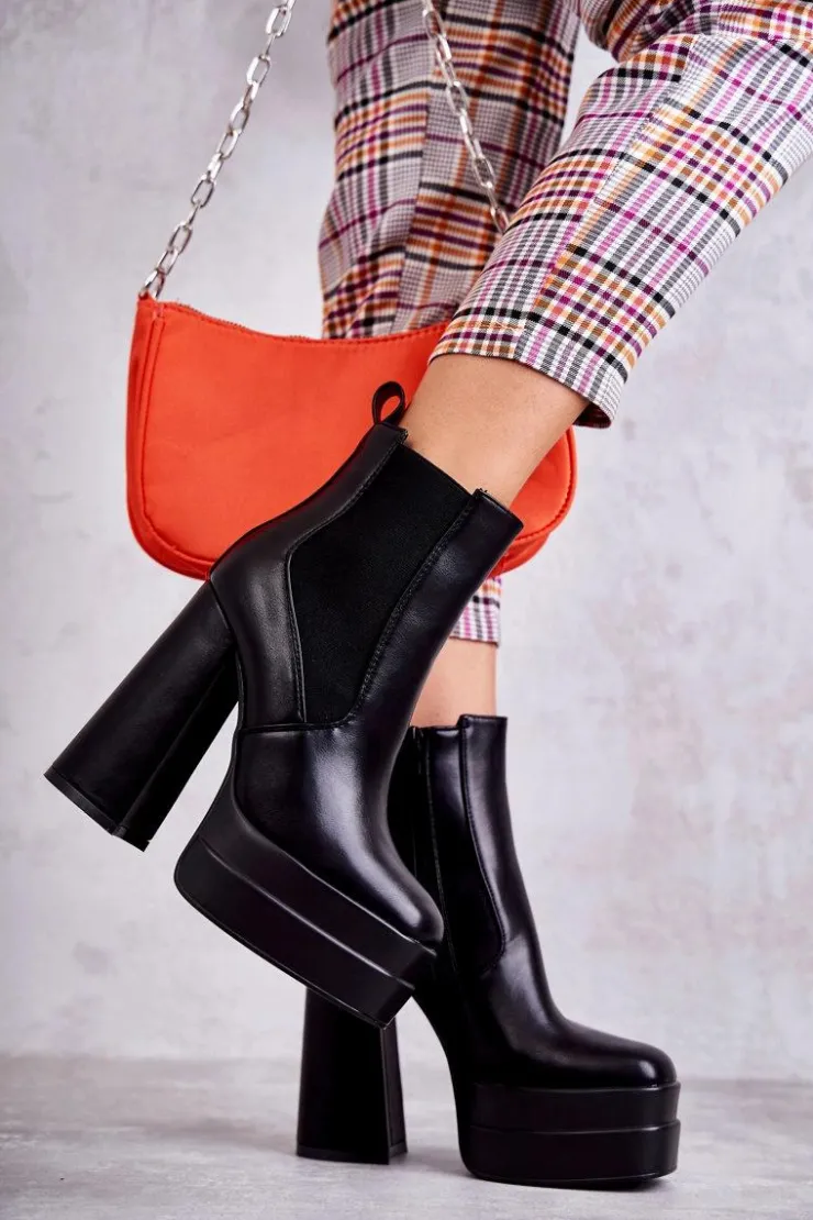 Te botki to prawdziwy HIT! Koniecznie musisz je mieć! Osadzone na modnym, szerokim obcasie w postaci słupka oraz platformie. Wykonane z eko skóry z elastyczną wstawką. Cholewka zapinana na suwak. Nosek kwadratowy. Dodatkowo botki te posiadają usztywniany zapiętek. Nie czekaj dłużej i kup je już teraz! Przy wyborze rozmiaru prosimy sugerować się tabelą rozmiarów.