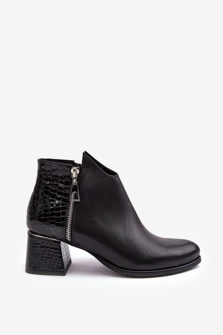 Rewelacyjne, damskie botki na obcasie w postaci niskiego słupka posiadają cholewkę za kostkę. Zostały wykonane z wysokiej jakości skóry naturalnej. Model ten jest zapinany na suwak. Dodatkowo posiada także ozdobny suwak po zewnętrznej stronie. Botki posiadają usztywniany zapiętek. Buty te zostały ocieplone kocem obuwniczym. Ten model świetnie sprawdzi się w wielu stylizacjach! Przy wyborze rozmiaru prosimy kierować się tabelą rozmiarów
