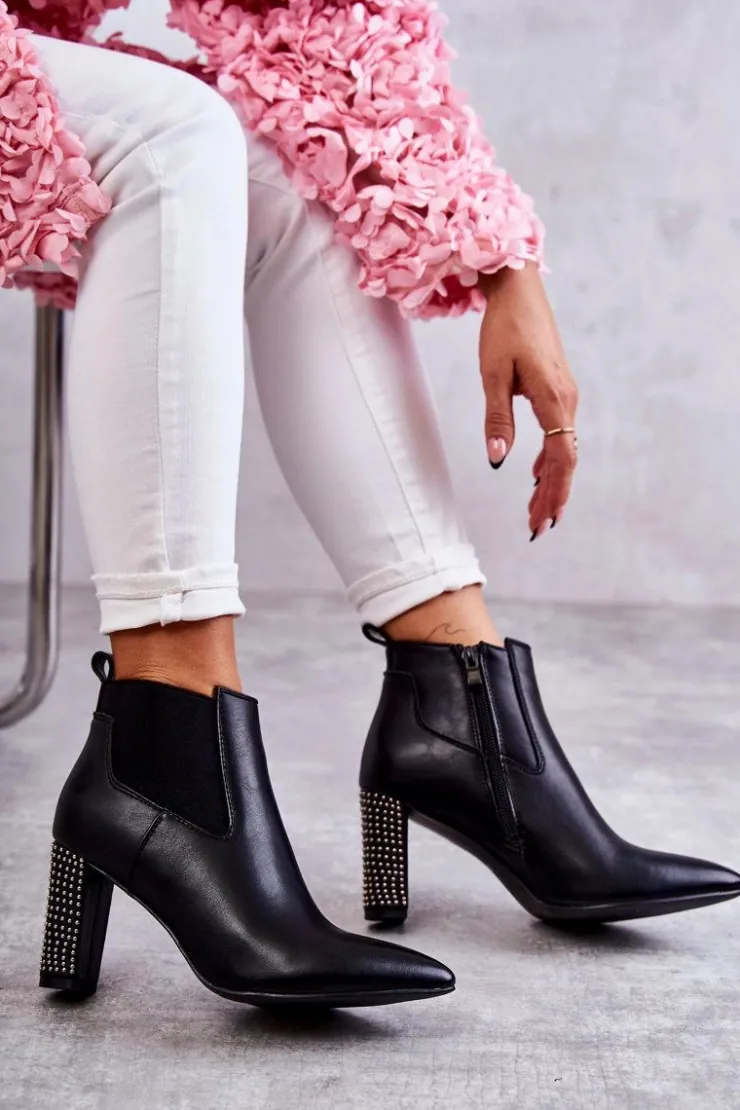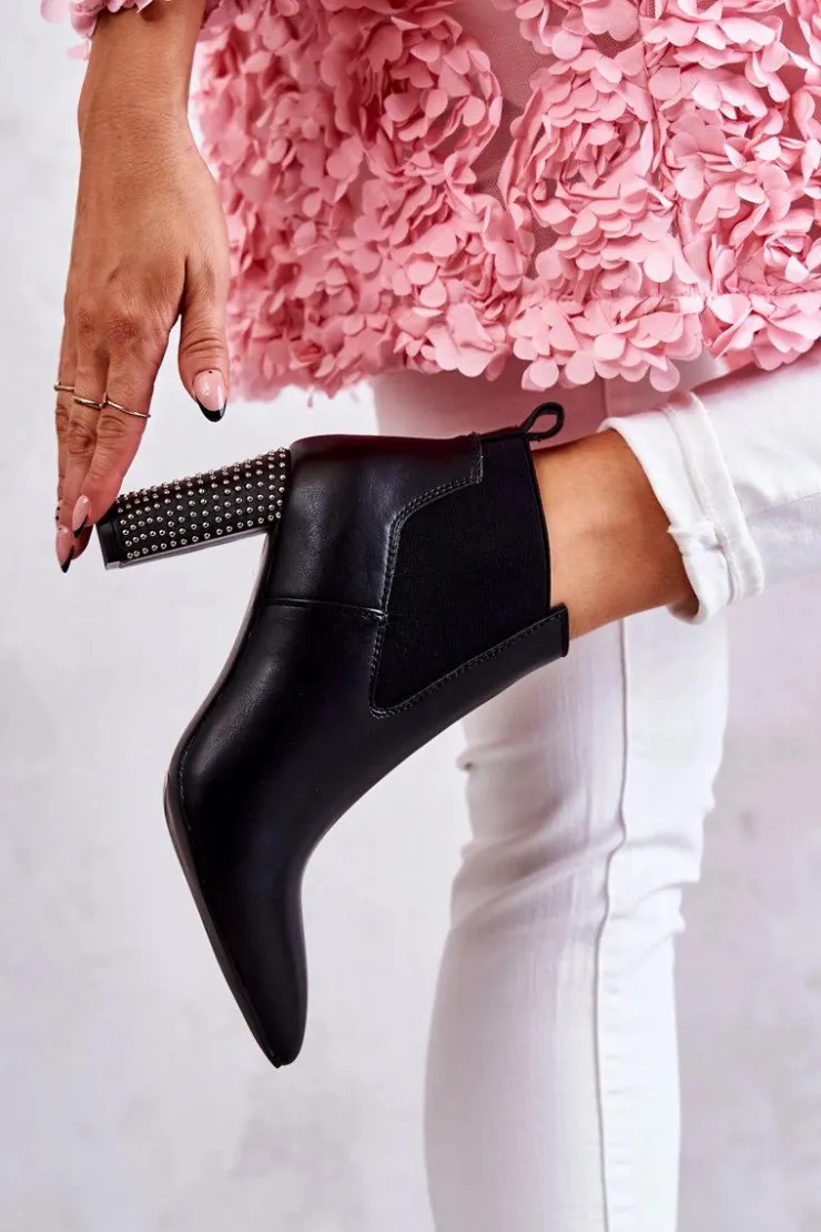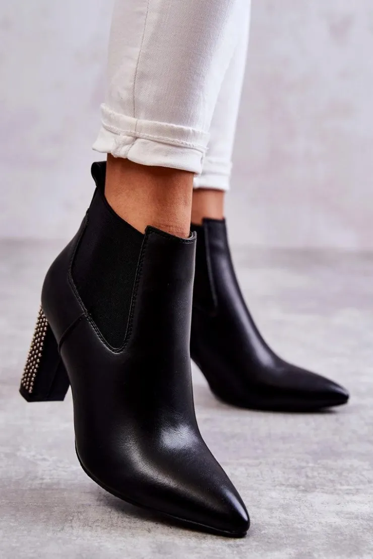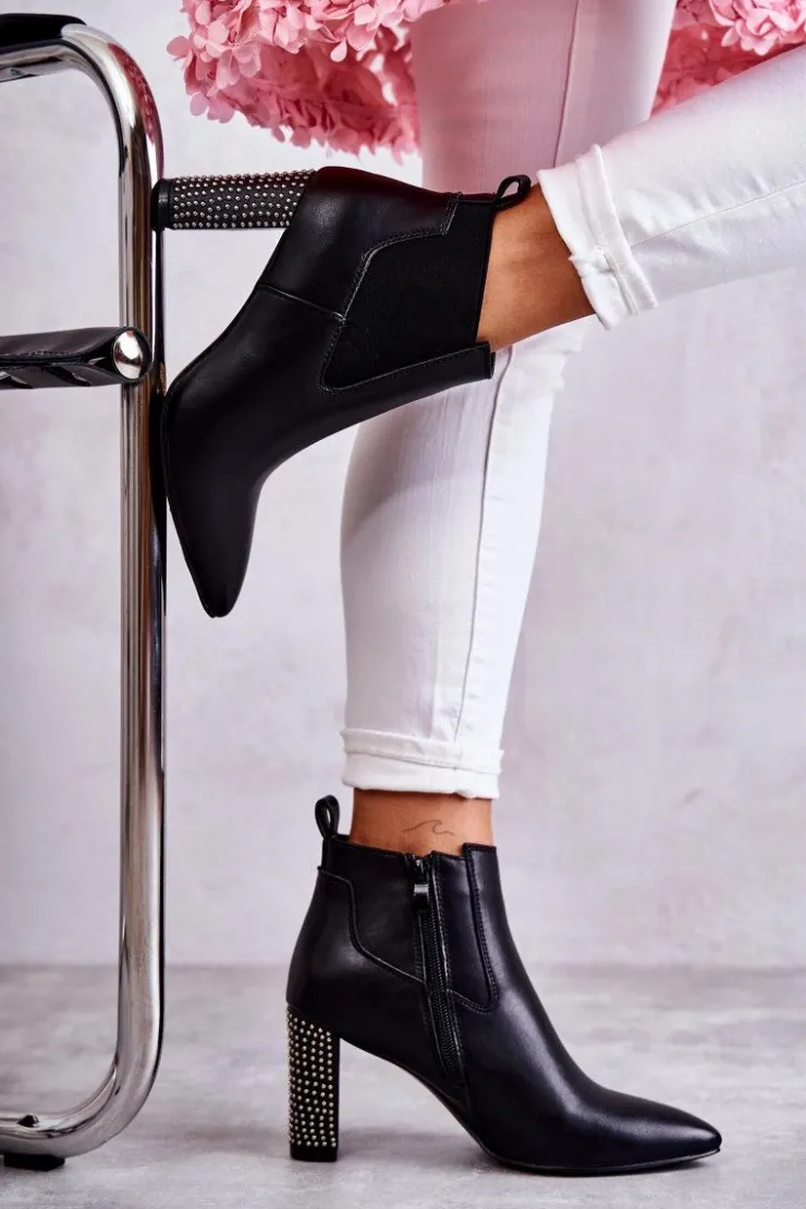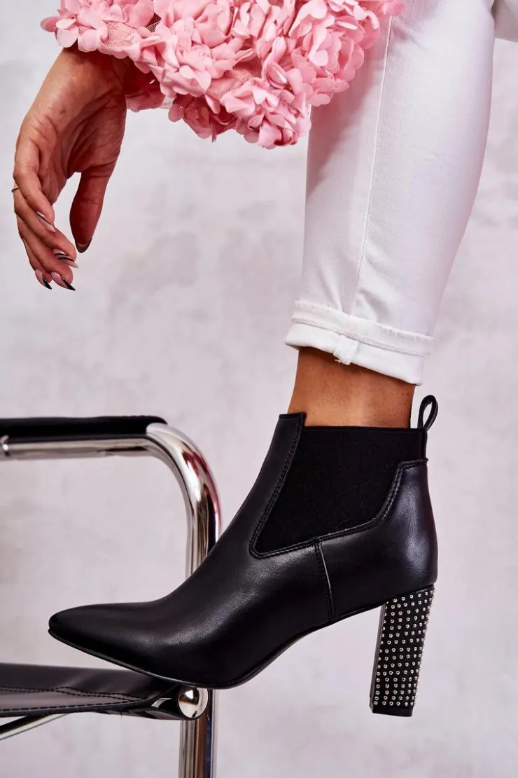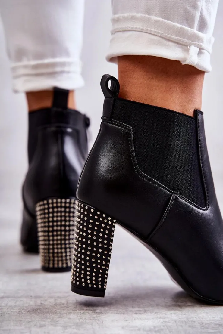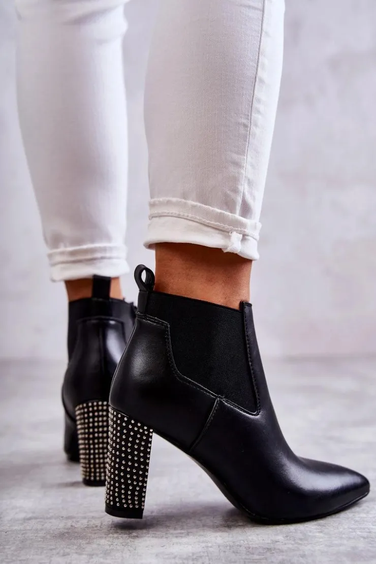 Boto Botki Na Słupku|Czarne Botki*Eleganckie Botki Na Słupku Z Dżetami Czarne Elinor