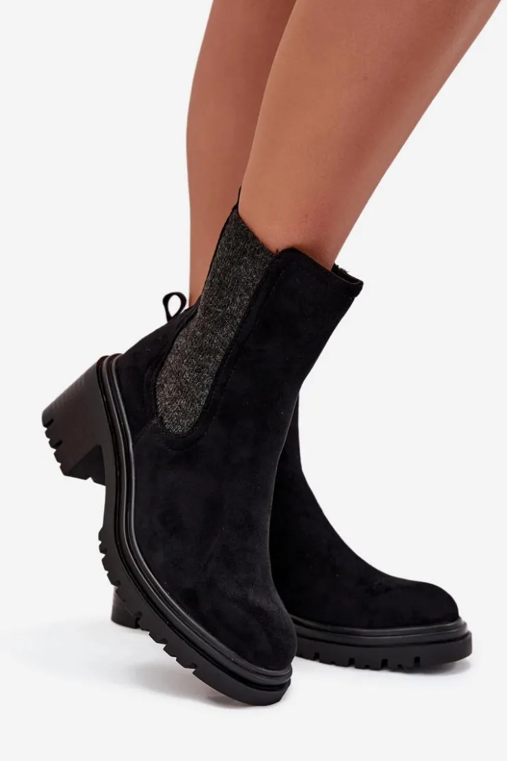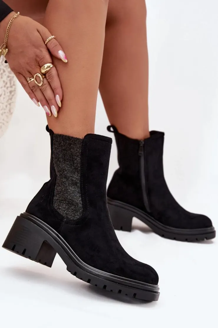 Botki sztyblety damskie wykonane z eko zamszu to klasyczny wybór na chłodniejsze dni. Osadzone na obcasie typu klocek, zapewniają wygodę i stabilność. Zaokrąglone noski dodają subtelnego charakteru, a wnętrze ocieplone kocem obuwniczym gwarantuje ciepło i komfort przez cały dzień. Zapinane na zamek, umożliwiają szybkie zakładanie i zdejmowanie. Idealne do codziennych stylizacji. Przy wyborze rozmiaru prosimy sugerować się tabelą rozmiarów.