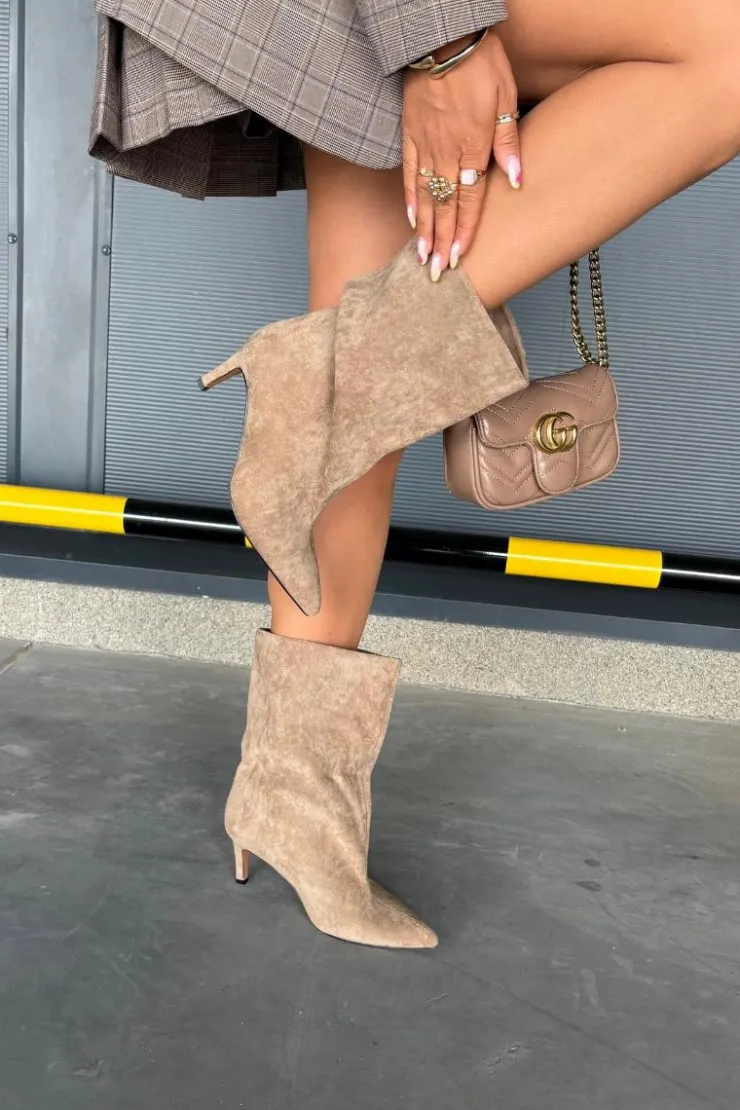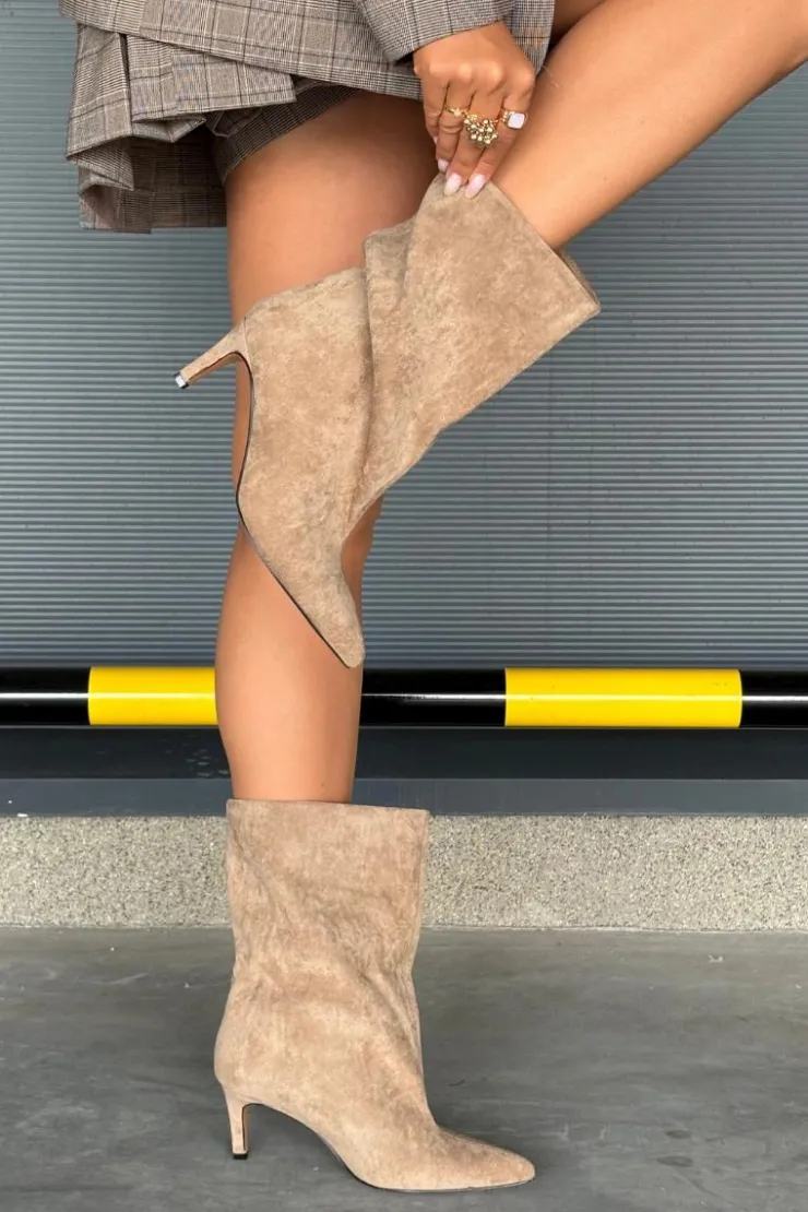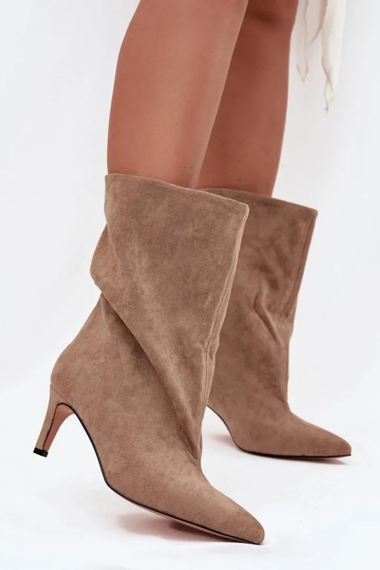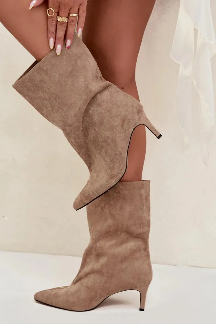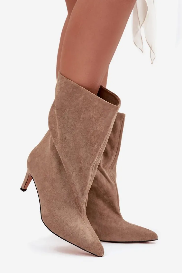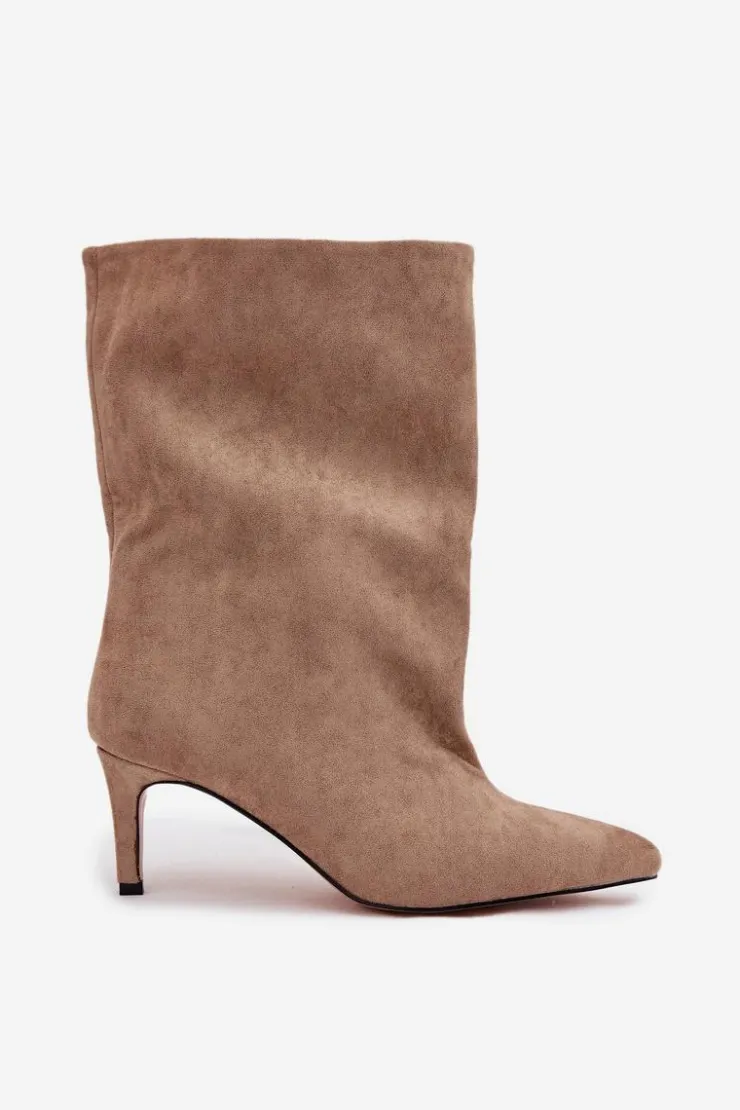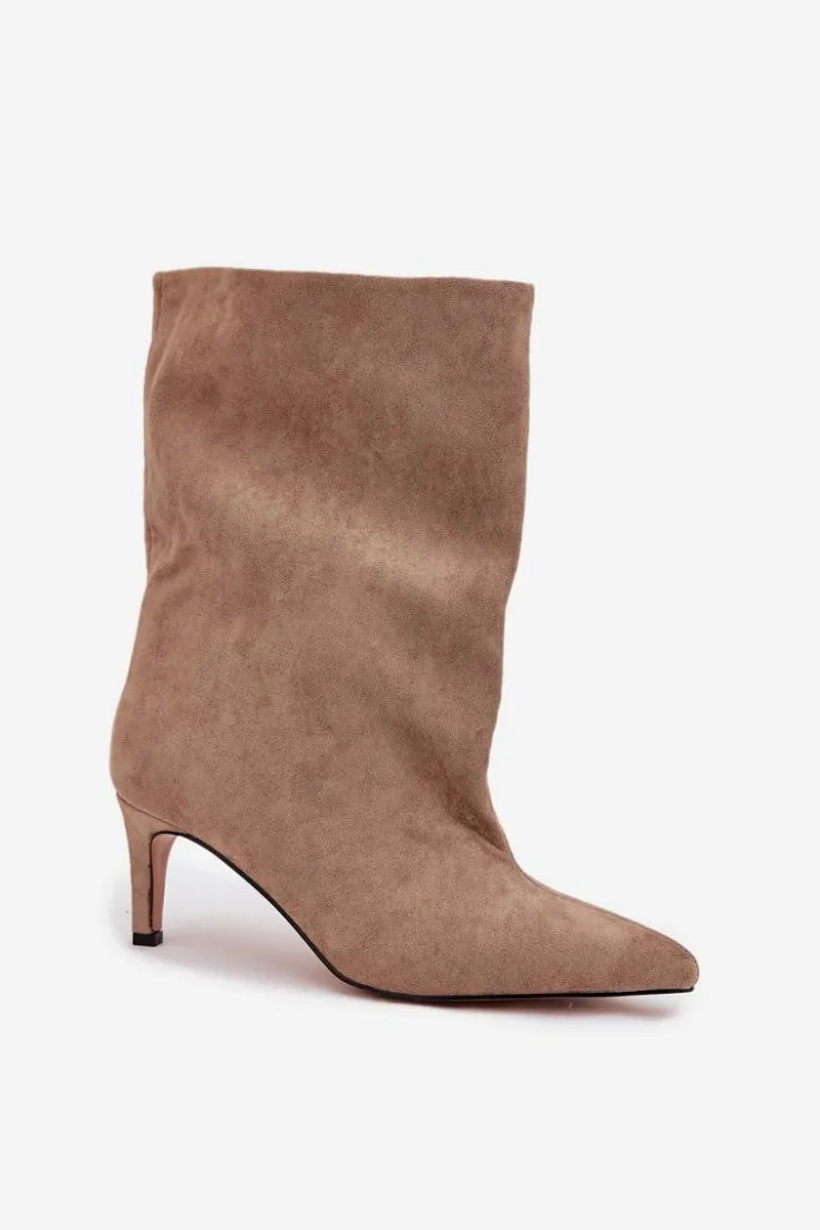 Boto Botki Ocieplane|Botki Na Obcasie*Wsuwane Botki Damskie Na Szpilce Beżowe Solvienne Beżowy