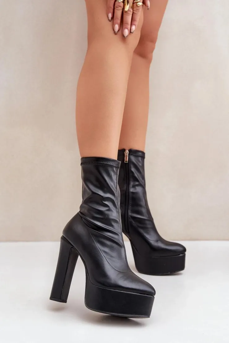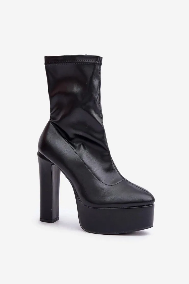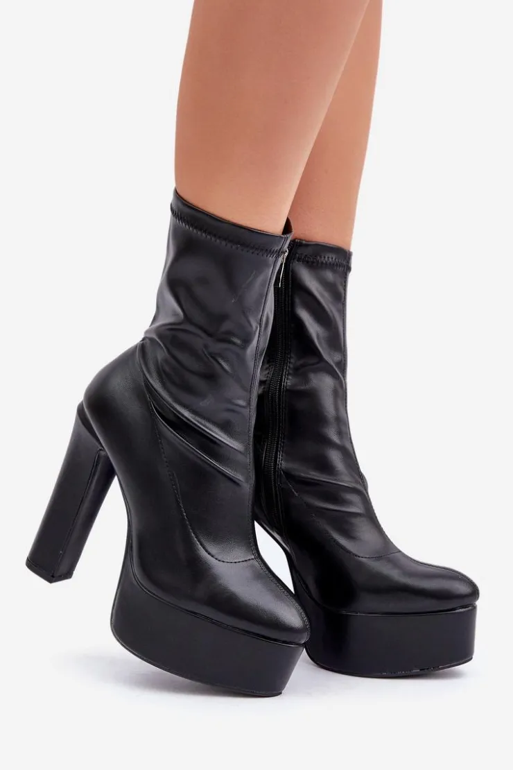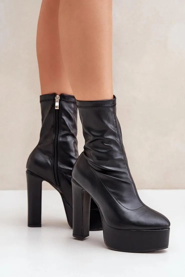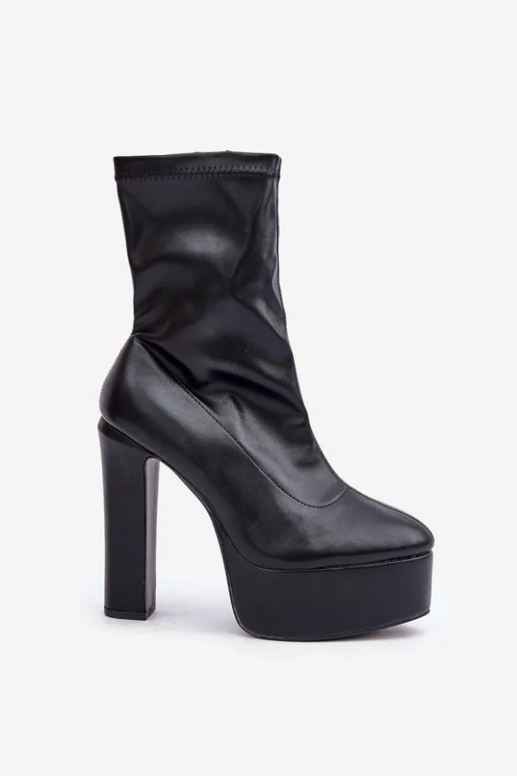 Boto Botki Ocieplane|Botki Na Słupku*Botki Na Wysokim Obcasie Słupku I Platformie Czarne Tennira Czarny