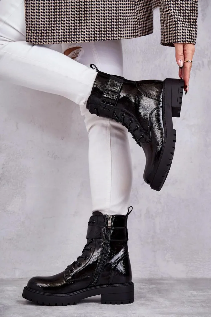 Modne botki damskie zostały wykonane z eko skóry. Posiadają suwak na boku cholewki, sznurowanie oraz klamrę z regulowanym paskiem. W środku znajduje się ocieplenie w postaci koca obuwniczego. Buty dodatkowo posiadają usztywniany zapiętek. Świetny model na jesienne, chłodne dni! Koniecznie sprawdź także pozostałe modele botków dostępne na naszej stronie! Przy wyborze rozmiaru prosimy sugerować się tabelą rozmiarów.