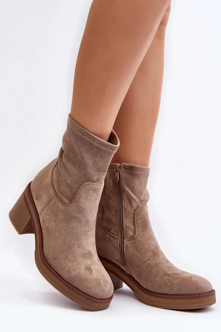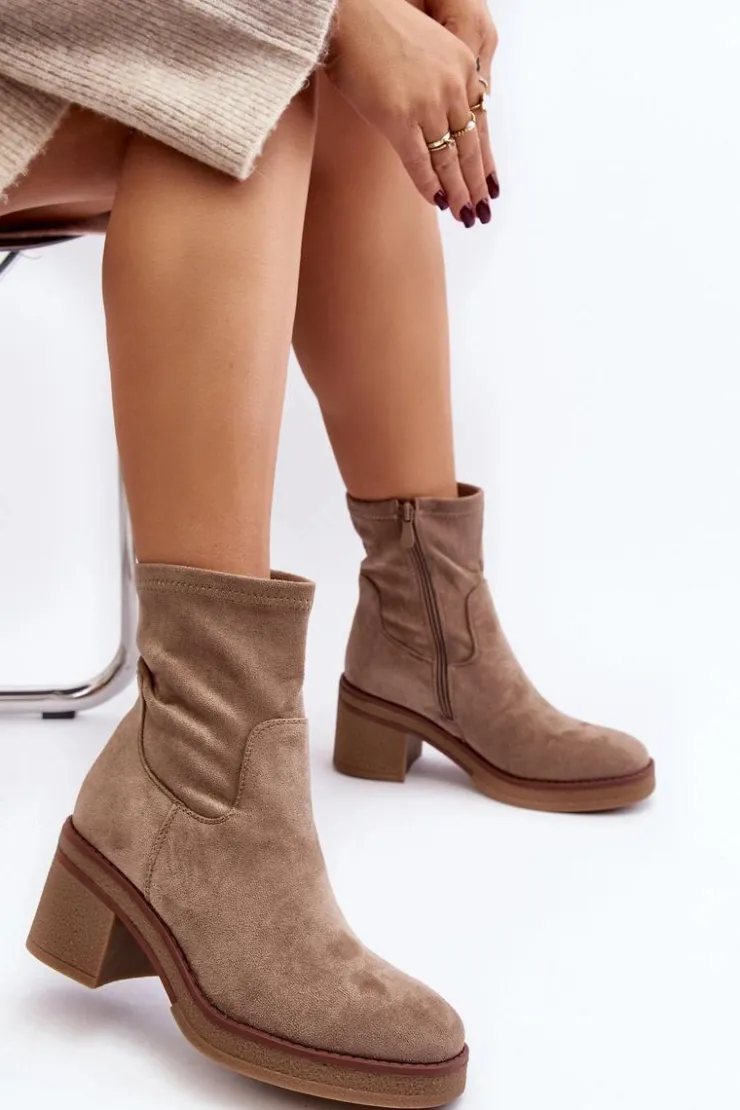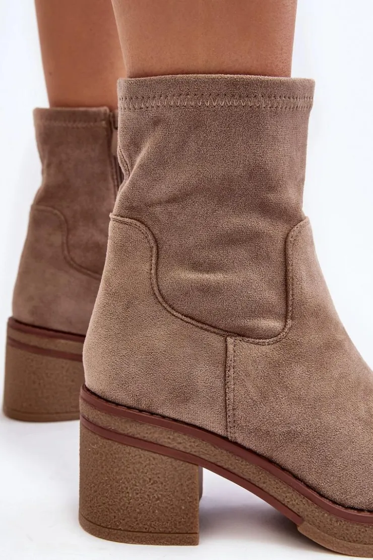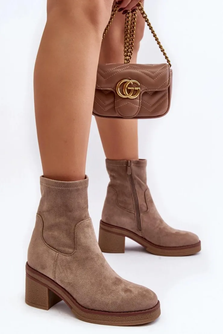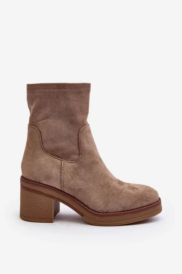 Klasyczne botki damskie, które dopasujesz do wielu jesienno-zimowych stylizacji! Wykonane z eko zamszu. Osadzone na obcasie w postaci słupka. Noski zaokrąglone. Środek częściowo ocieplony kocem obuwniczym. Koniecznie musisz je mieć! Przy wyborze rozmiaru prosimy sugerować się tabelą rozmiarów.