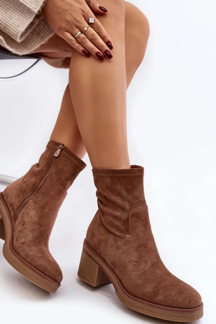 Klasyczne botki damskie, które dopasujesz do wielu jesienno-zimowych stylizacji! Wykonane z eko zamszu. Osadzone na obcasie w postaci słupka. Noski zaokrąglone. Środek częściowo ocieplony kocem obuwniczym. Koniecznie musisz je mieć! Przy wyborze rozmiaru prosimy sugerować się tabelą rozmiarów.