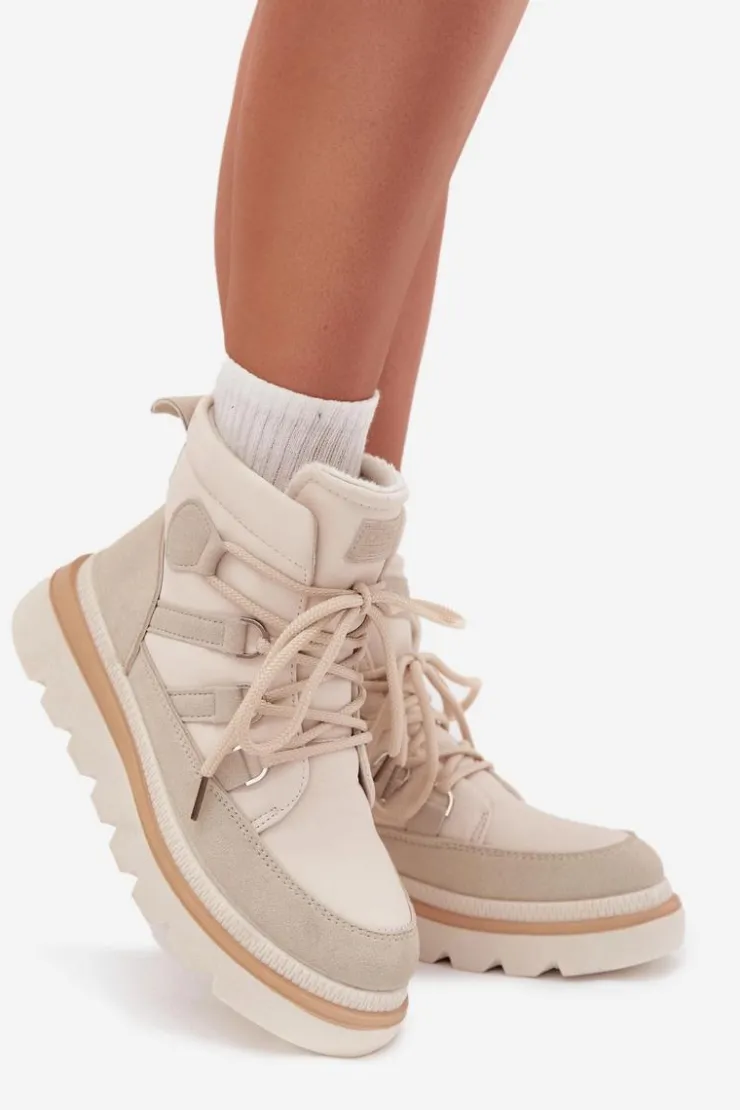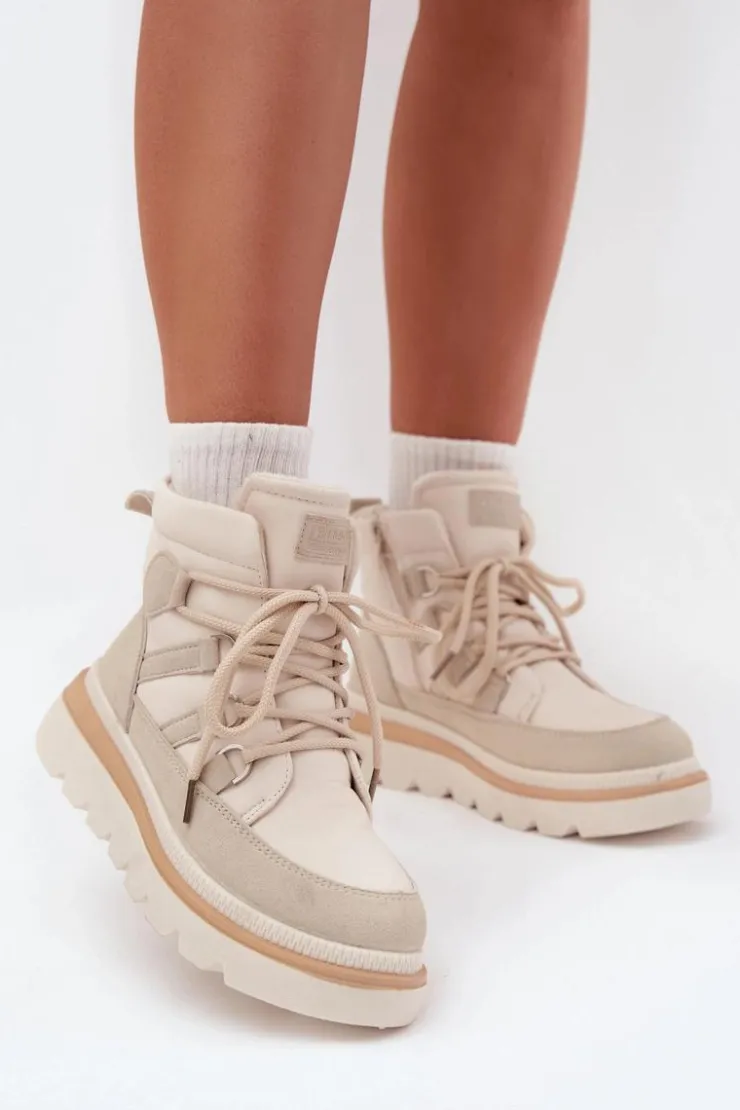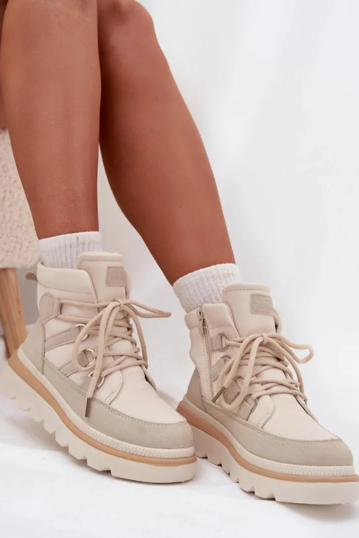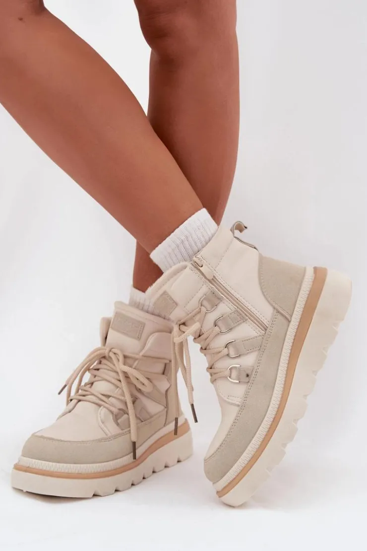Botki damskie ocieplane to doskonały wybór na zimowe dni. Osadzone na platformie, zapewniają komfort i stabilność podczas chodzenia. Model ten wyposażony jest w sznurowanie oraz dodatkowe zapięcie na zamek, co ułatwia zakładanie i dopasowanie do stopy. Ocieplenie wewnątrz buta gwarantuje ciepło nawet w mroźne dni. Stylowy fason sprawia, że te botki będą świetnym uzupełnieniem każdej zimowej stylizacji. Przy wyborze rozmiaru prosimy sugerować się tabelą rozmiarów.