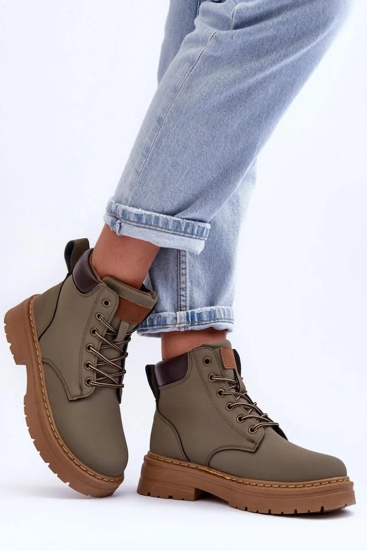 Buty zostały wykonane z miękkiej eko skóry. Osadzone na platformie i płaskim obcasie. Środek został ocieplony kocem obuwniczym. Trapery posiadają przeszycia na cholewce. Wiązanie sprawia, że można je dopasować do własnych potrzeb. Ten model traperów zachwyci każdego! Przy wyborze rozmiaru prosimy sugerować się tabelą rozmiarów.