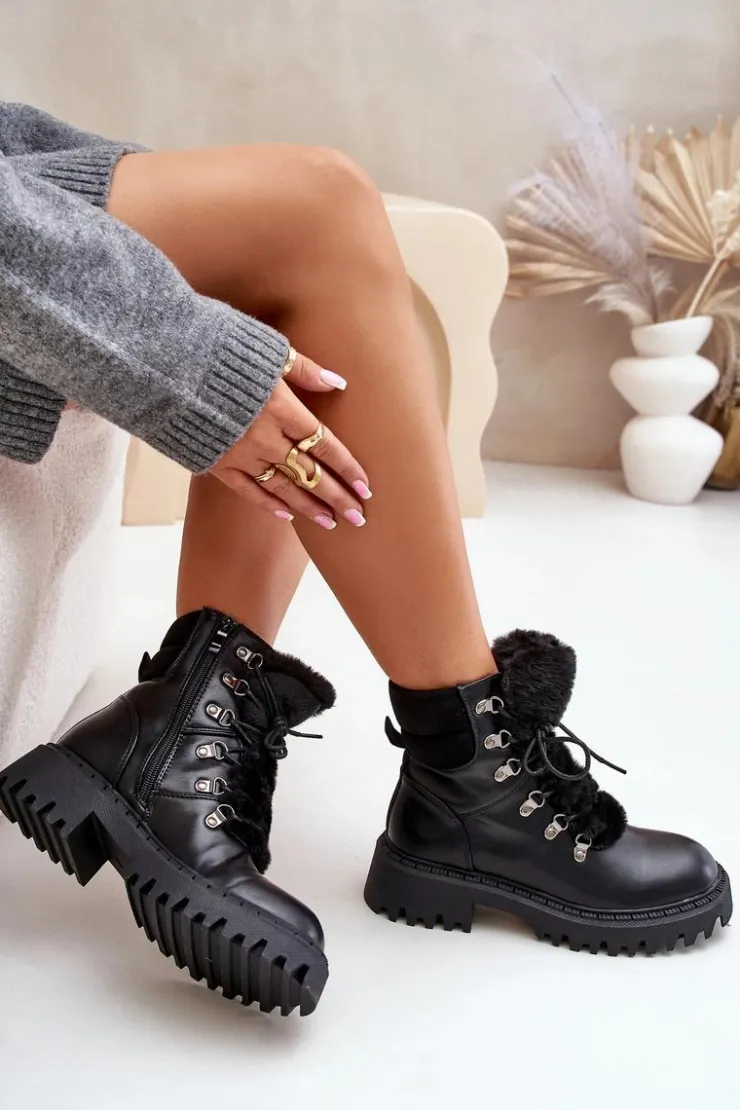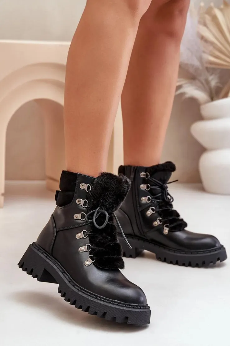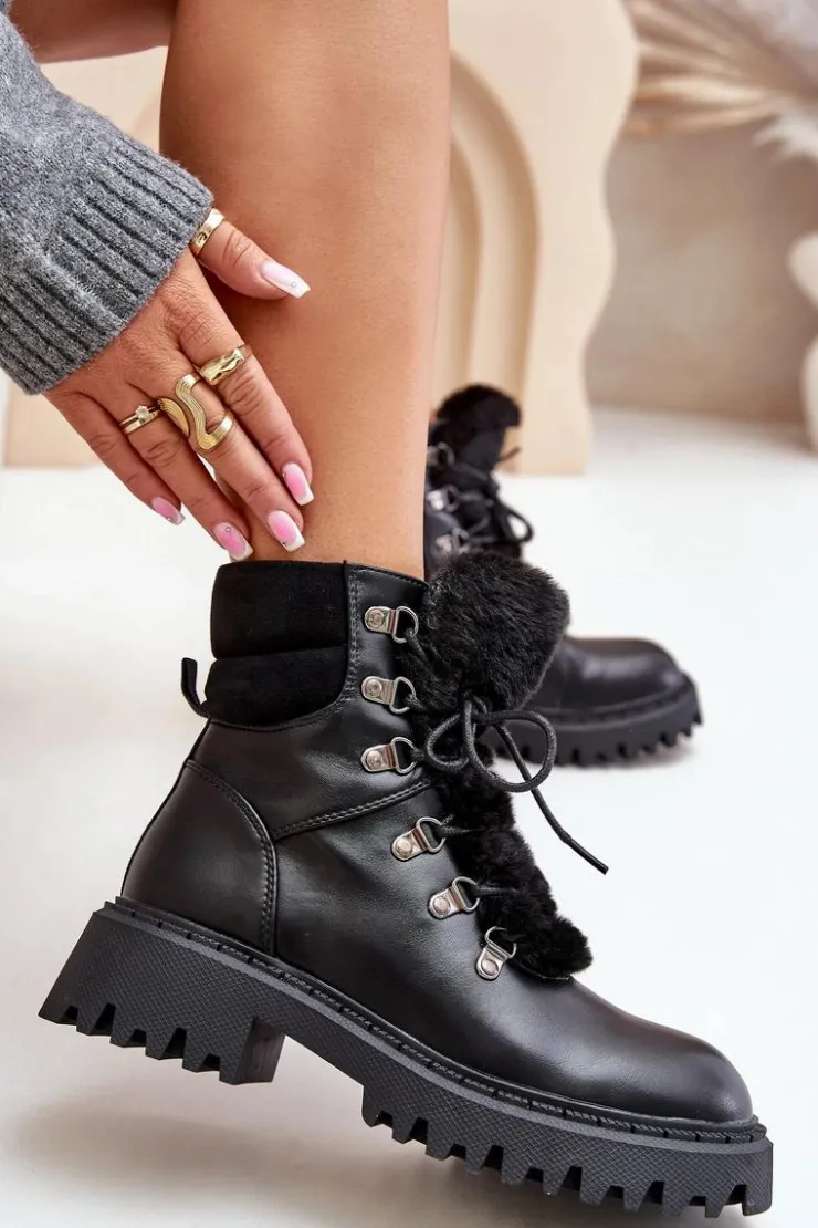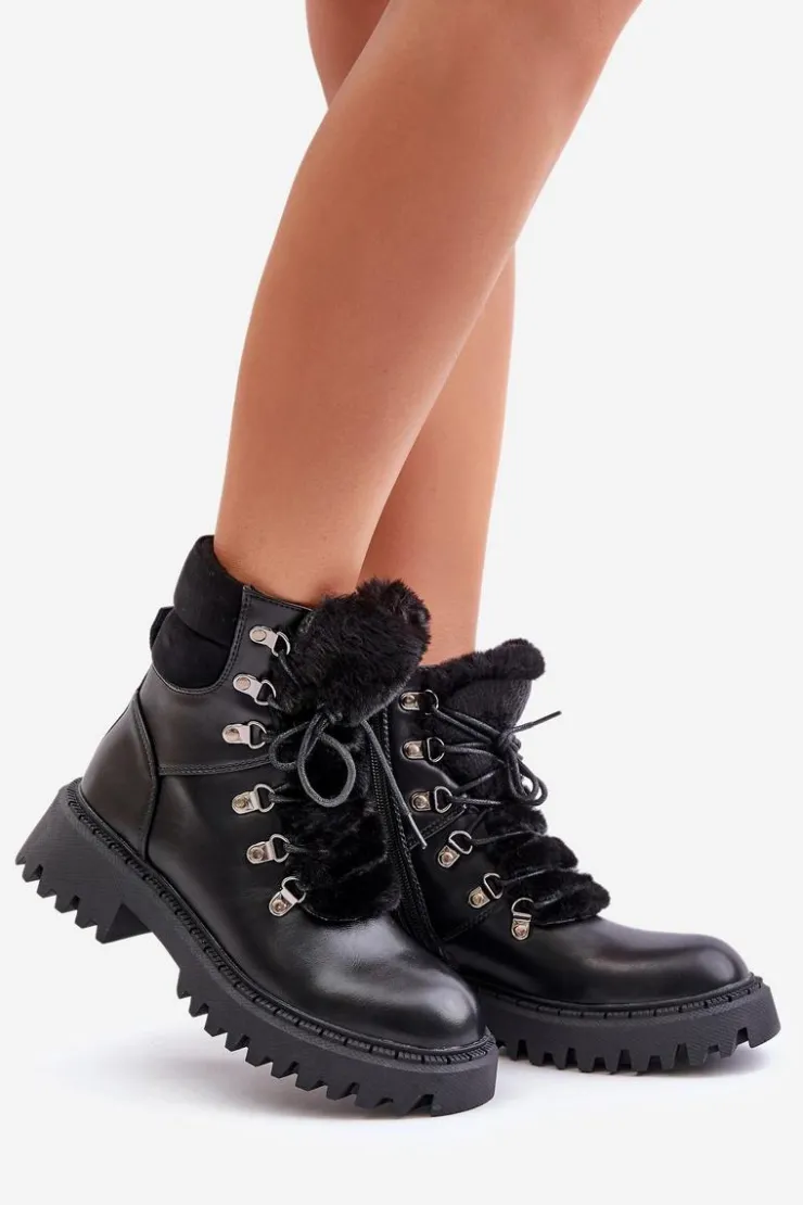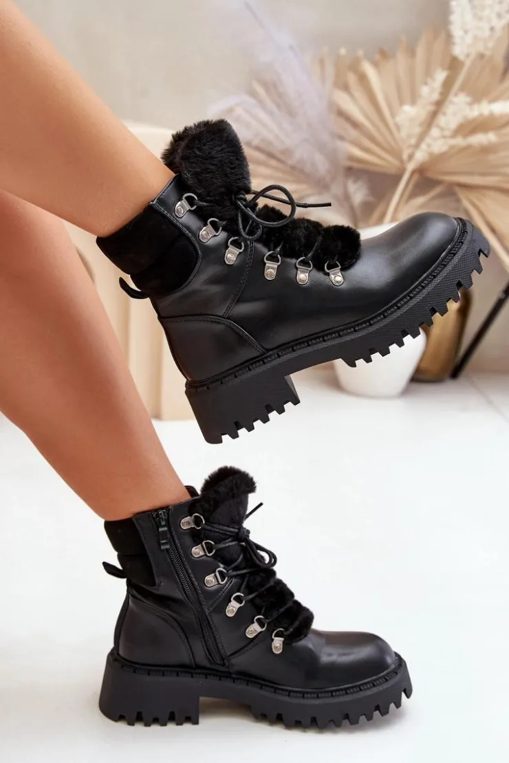 Damskie trapery wykonane z eko skóry to doskonały wybór na chłodniejsze dni. Model sznurowany oraz zapinany na zamek, co ułatwia szybkie zakładanie i zapewnia idealne dopasowanie. Język buta ozdobiony jest miękkim futerkiem, które dodaje uroku oraz chroni przed zimnem. Wnętrze ocieplane gwarantuje ciepło i wygodę podczas noszenia, dzięki czemu trapery świetnie sprawdzą się zarówno na co dzień, jak i w bardziej wymagających warunkach pogodowych. Przy wyborze rozmiaru prosimy sugerować się tabelą rozmiarów.