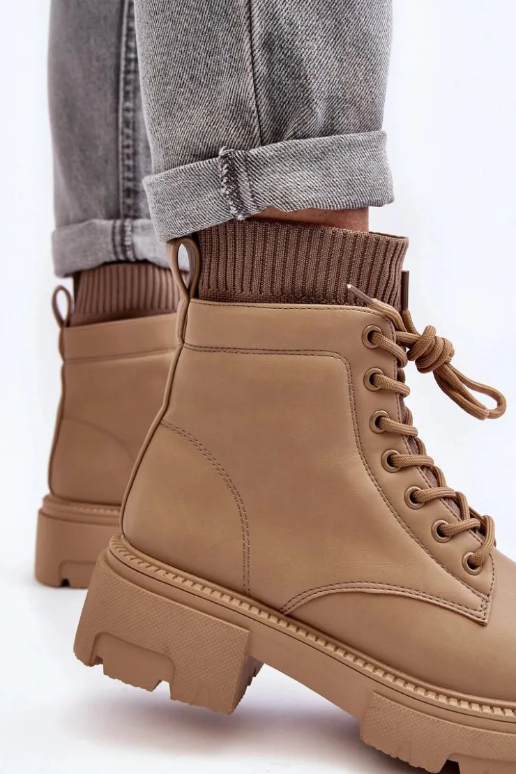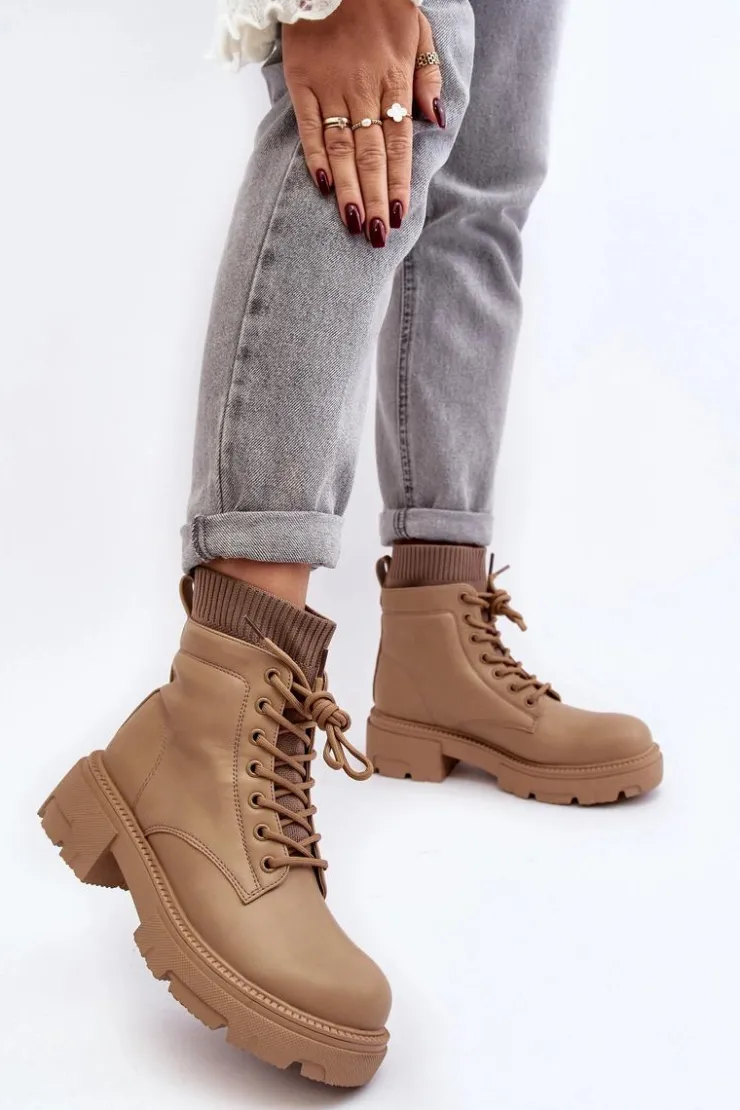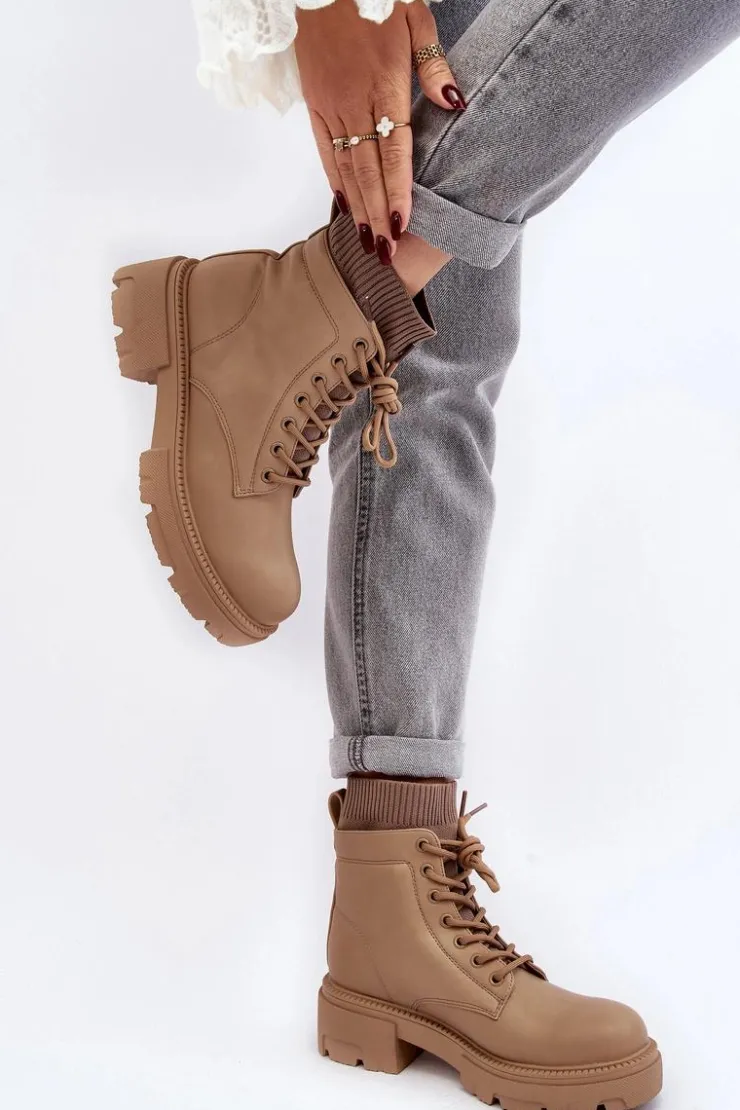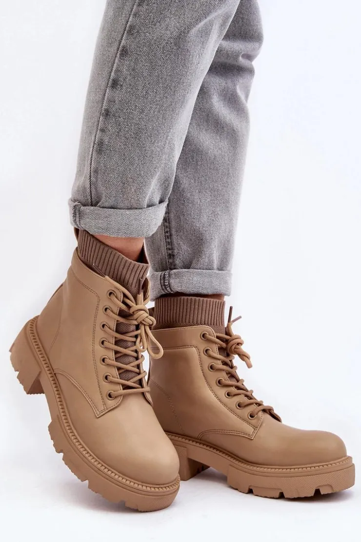 Damskie trapery wykonane z eko skóry. Osadzone na masywnym, płaskim obcasie oraz platformie. Model wsuwany z cholewką za kostkę. Z przodu sznurowanie. Noski zaokrąglone. Usztywniony zapiętek. Ten klasyczny model wykorzystasz do wielu jesienno-zimowych stylizacji! Przy wyborze rozmiaru prosimy sugerować się tabelą rozmiarów.