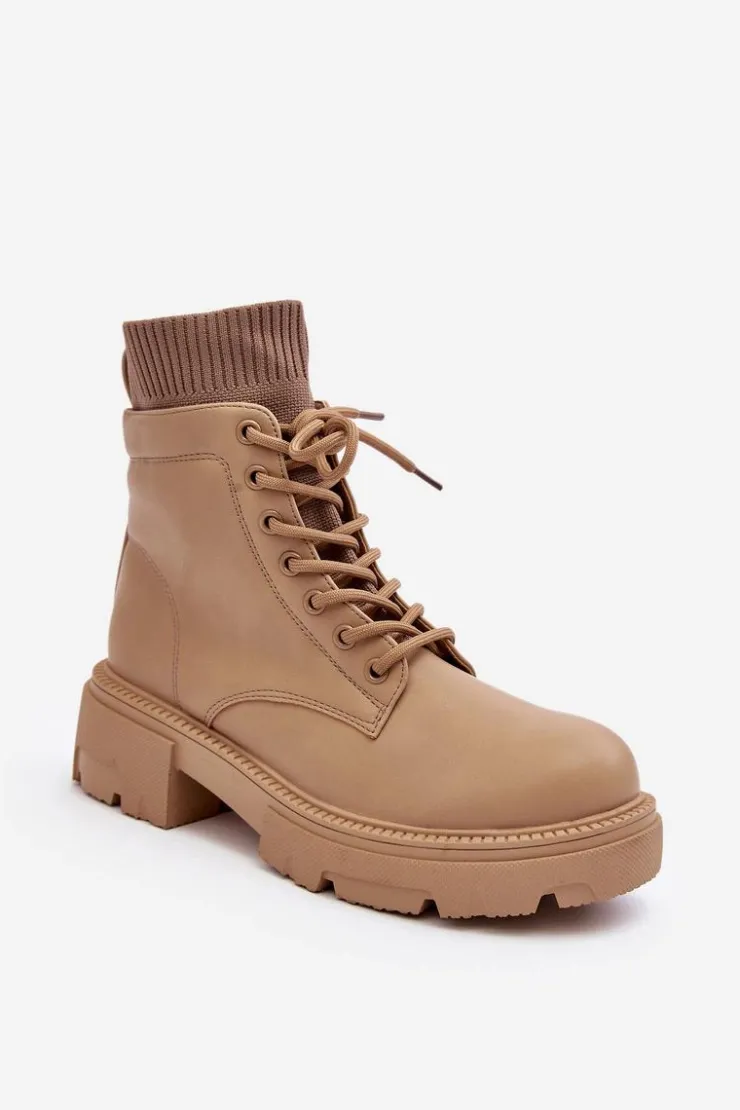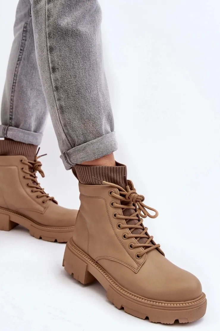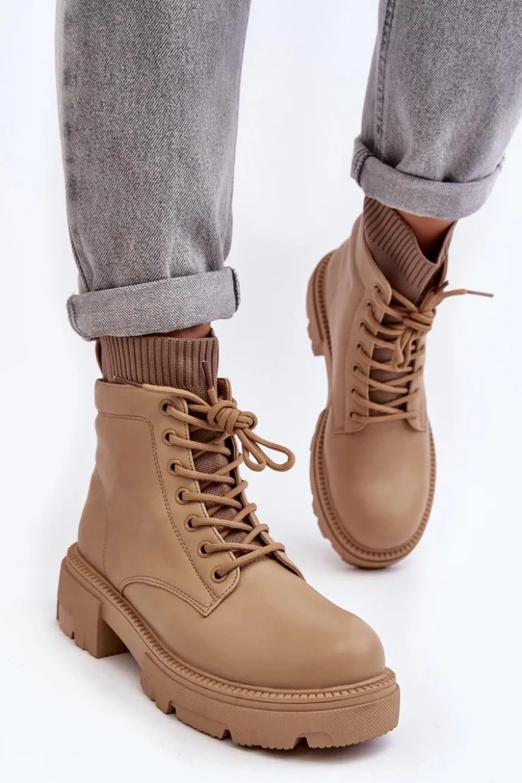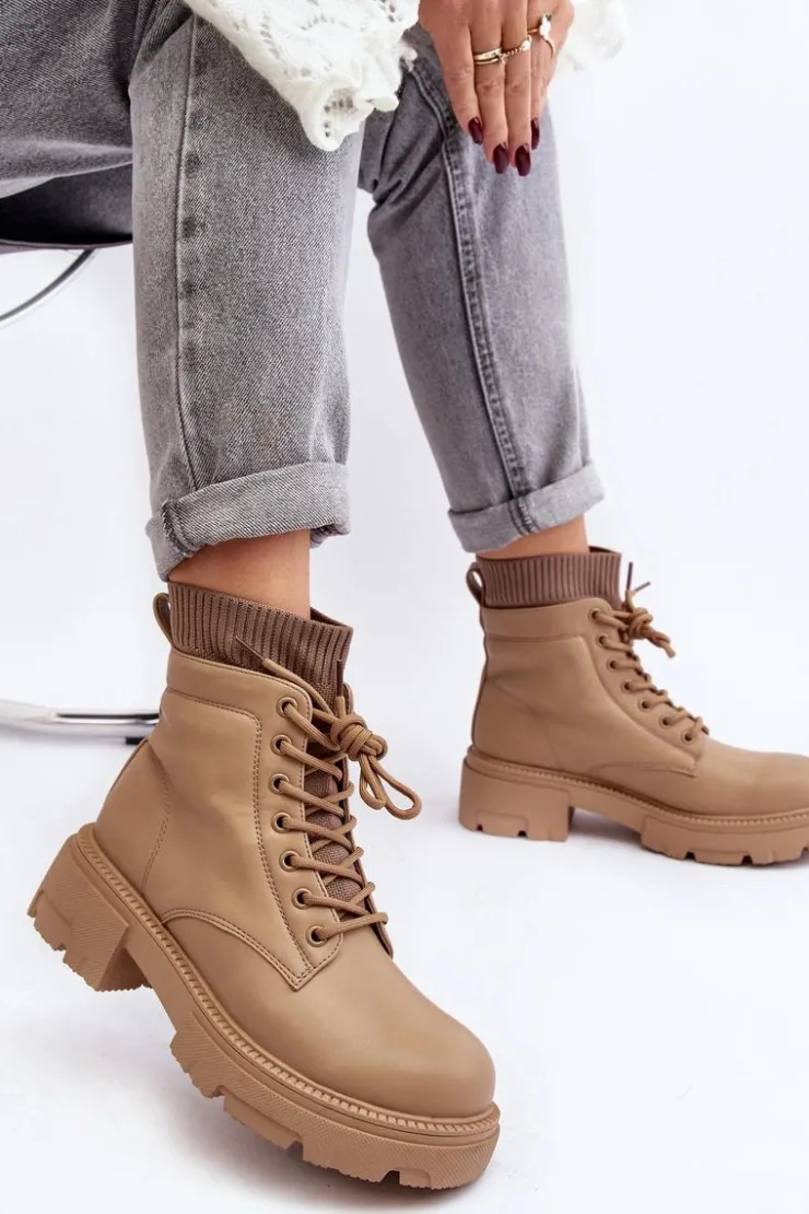 Damskie trapery wykonane z eko skóry. Osadzone na masywnym, płaskim obcasie oraz platformie. Model wsuwany z cholewką za kostkę. Z przodu sznurowanie. Noski zaokrąglone. Usztywniony zapiętek. Ten klasyczny model wykorzystasz do wielu jesienno-zimowych stylizacji! Przy wyborze rozmiaru prosimy sugerować się tabelą rozmiarów.