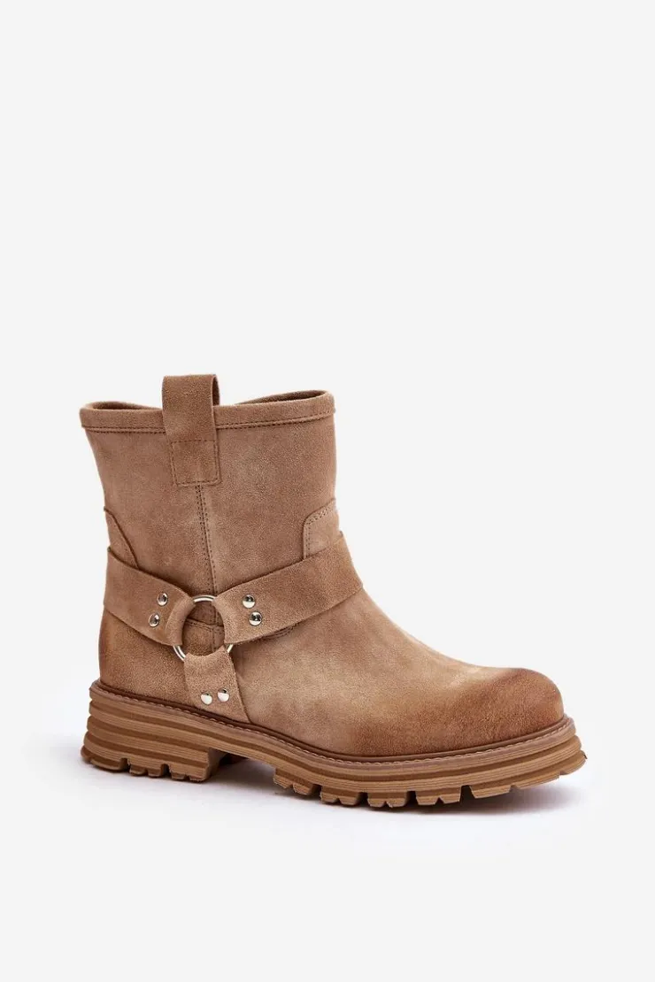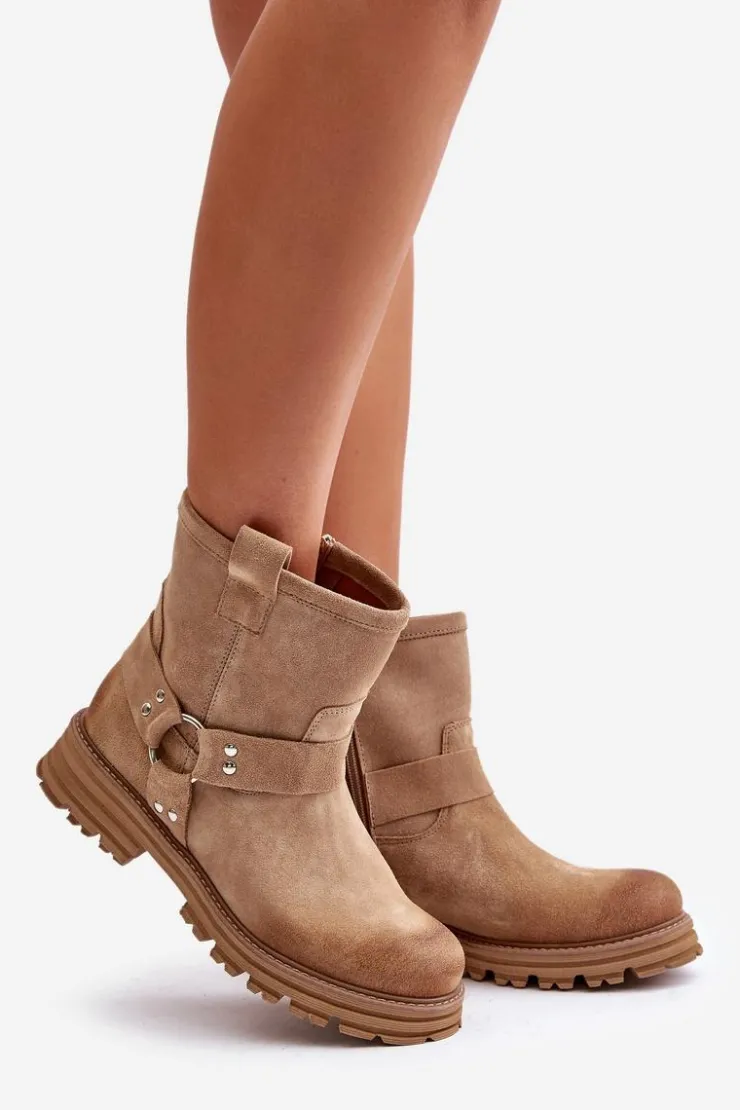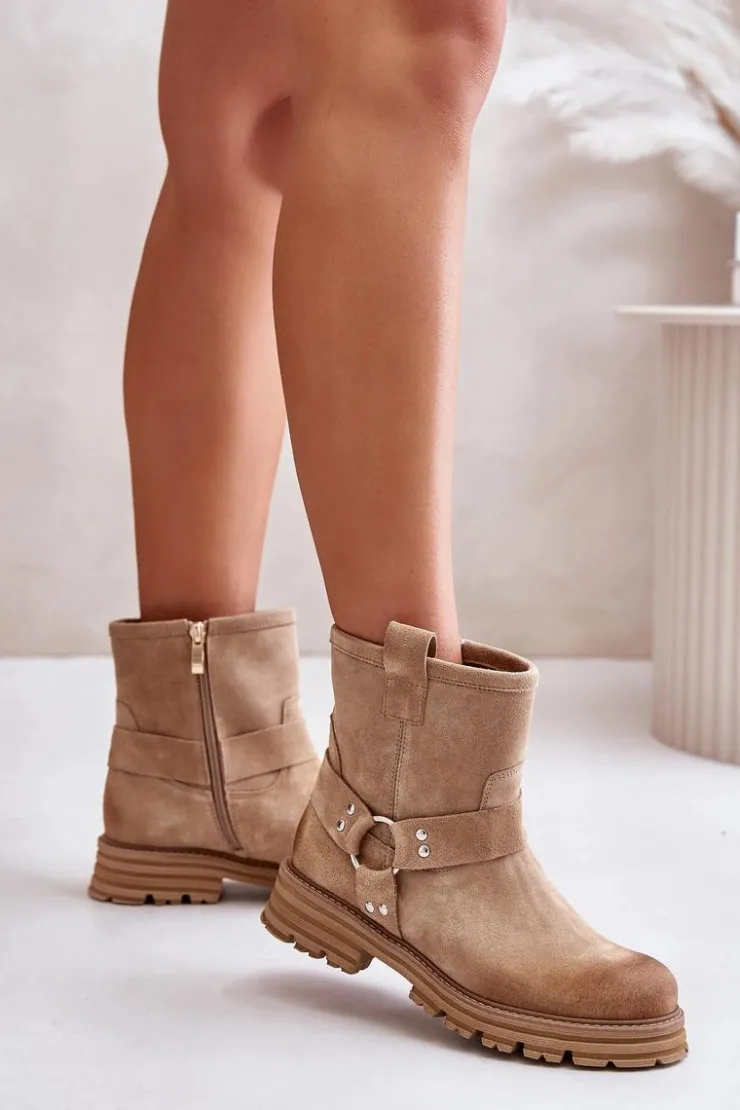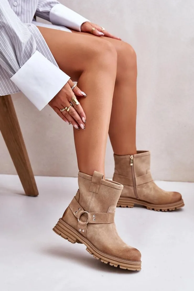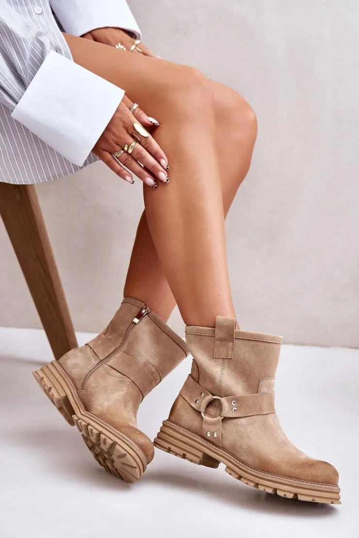Botki wykonane z naturalnego zamszu to idealny wybór na każdą okazję. Osadzone na płaskim obcasie, zapewniają komfort i stabilność podczas chodzenia. Zaokrąglone noski dodają subtelnego charakteru. Model zapinany na zamek, co ułatwia zakładanie. Cholewka ozdobiona efektownym połączeniem pasków, które dodają stylowego akcentu. Te botki świetnie sprawdzą się w codziennych stylizacjach, łącząc elegancję z wygodą. Przy wyborze rozmiaru prosimy sugerować się tabelą rozmiarów.
