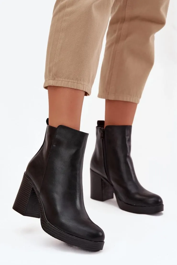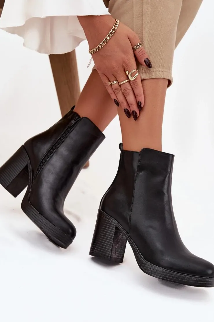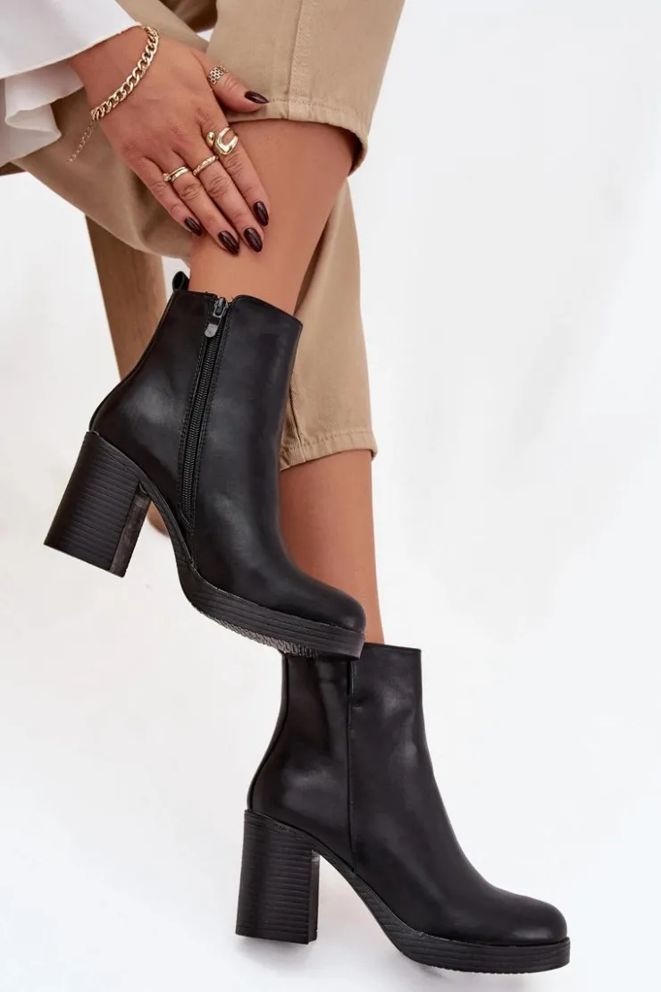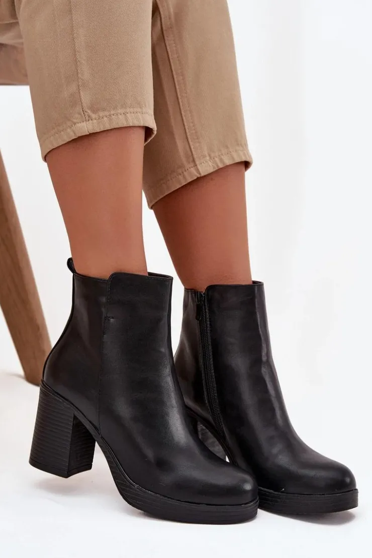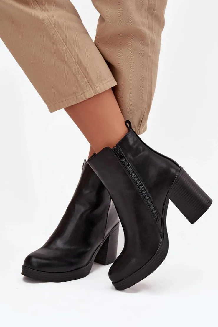 Botki damskie wykonane z eko skóry. Osadzone na stabilnym obcasie typu słupek, zapewniają komfort noszenia i dodają sylwetce subtelnej lekkości. Klasyczny fason sprawia, że doskonale pasują do wielu stylizacji – od codziennych po bardziej eleganckie. Zamek z boku ułatwia zakładanie i zdejmowanie butów. To uniwersalne botki, które sprawdzą się w każdej garderobie. Przy wyborze rozmiaru prosimy sugerować się tabelą rozmiarów.