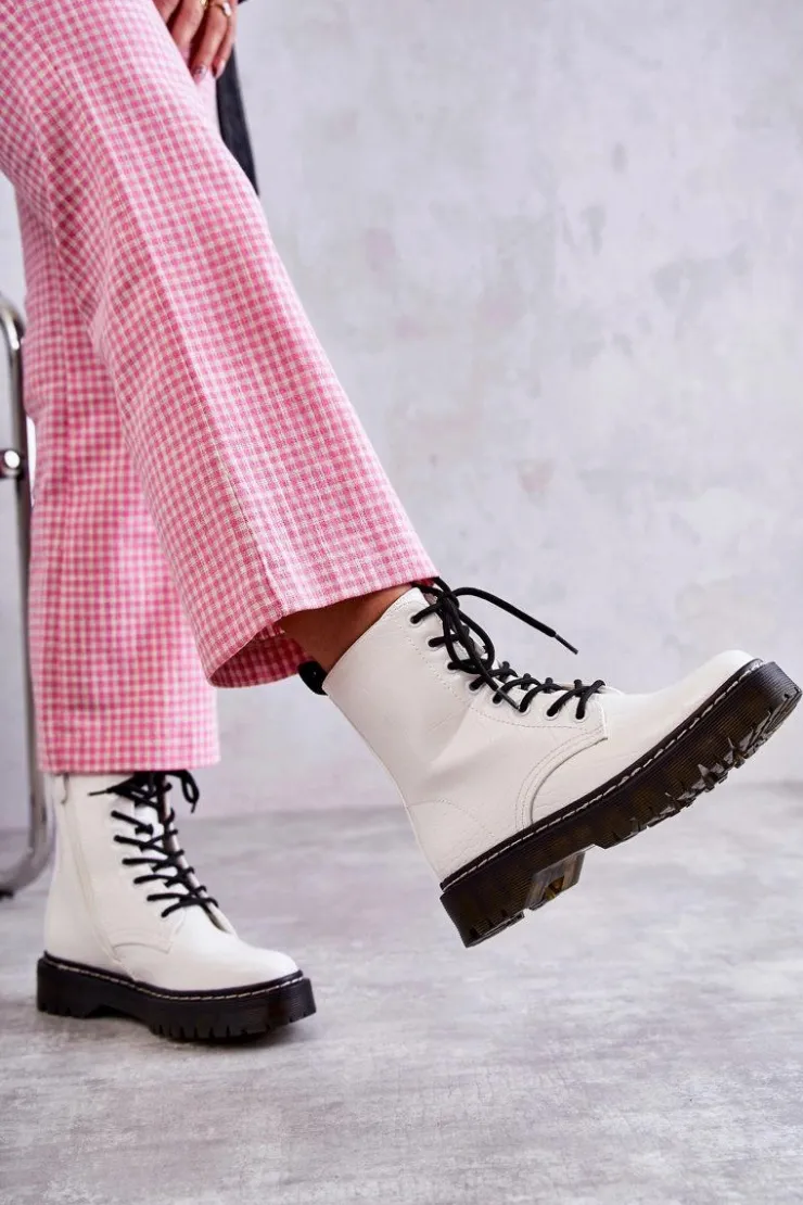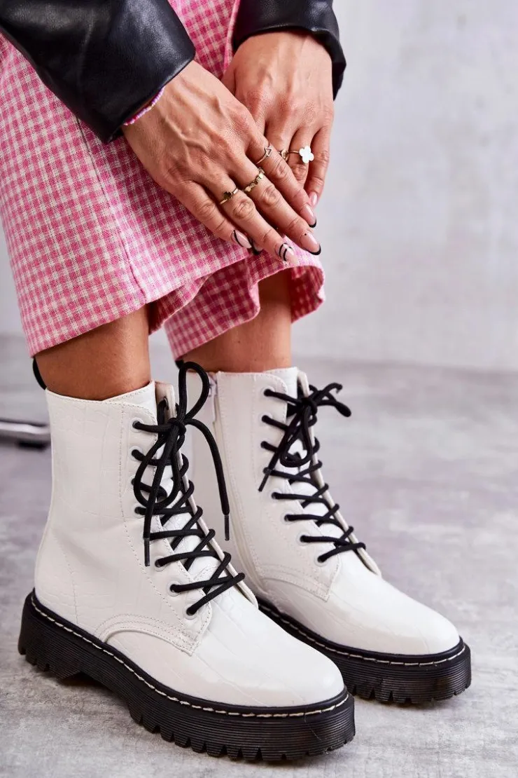 Damskie botki zostały wykonane z eko skóry. Buty te posiadają suwak z boku cholewki oraz sznurowanie. Model ten posiada usztywniany zapiętek. W środku zostały ocieplone kocem obuwniczym. Traperowa podeszwa świetnie ochroni przed zimnem. Dodatkowo jest obszyta nicią. Koniecznie sprawdź także pozostałe modele botków dostępnych w naszej ofercie! Przy wyborze rozmiaru prosimy sugerować się tabelą rozmiarów.