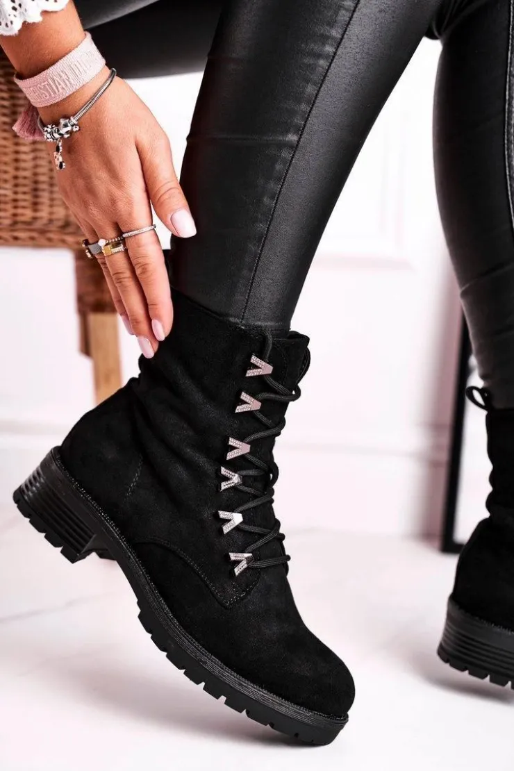 Boto Botki Sznurowane|Czarne Botki*Botki Damskie Workery Livy Czarne