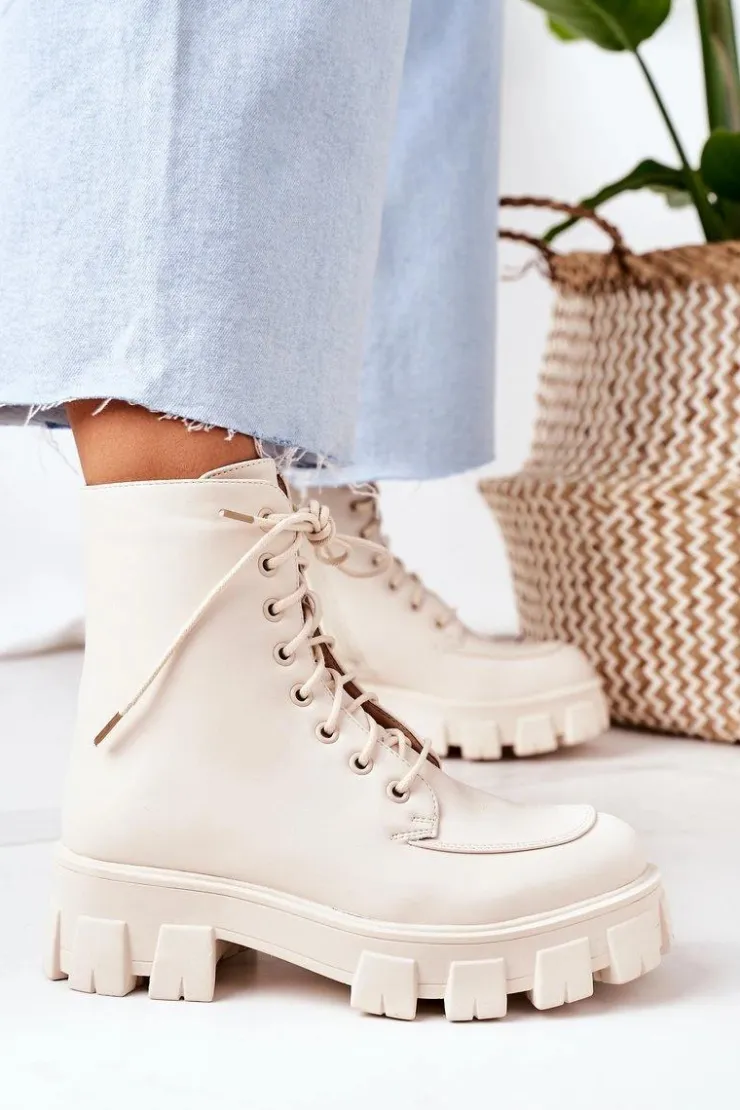 Wyjątkowe botki damskie wykonane ze skóry ekologicznej. Workery są ocieplone miłym w dotyku kocem obuwniczym. Przy wyborze rozmiaru prosimy sugerować się tabelą rozmiarów.
